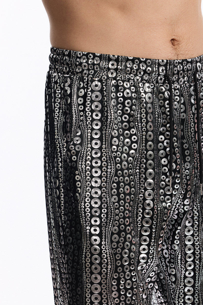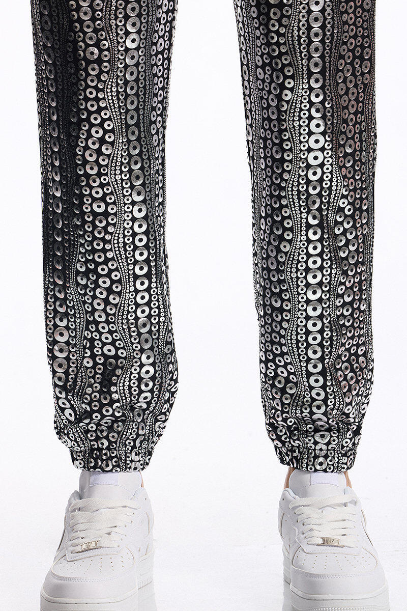 Verano 2025 Nuevo Pantalón Jogger para Hombre con Ola Redonda y Adorno Dorado Talla Europea Talla Grande para Hombre Pantalón Casual Holgado
