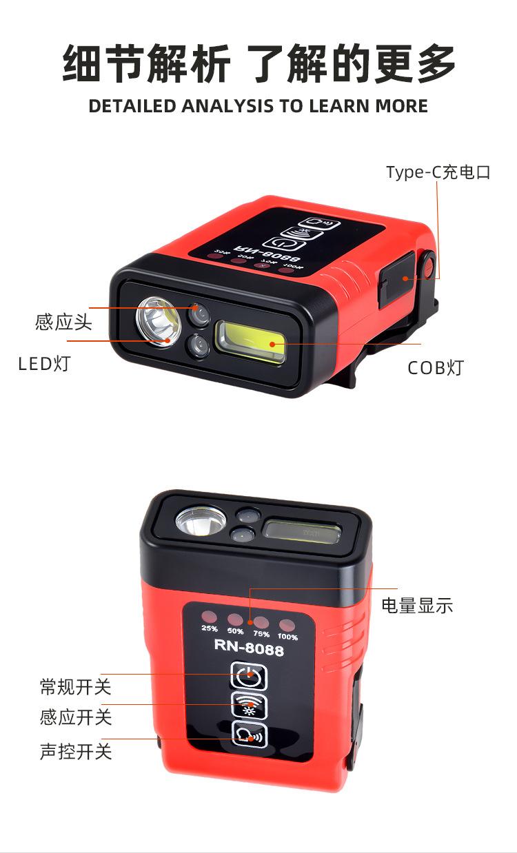 Luz Delantera Pesca Inducción por Voz Lámpara Clip para Gorra Exterior Luz Fuerte Súper Brillante Recargable Clip de Larga Duración Lámpara Pesca Nocturna