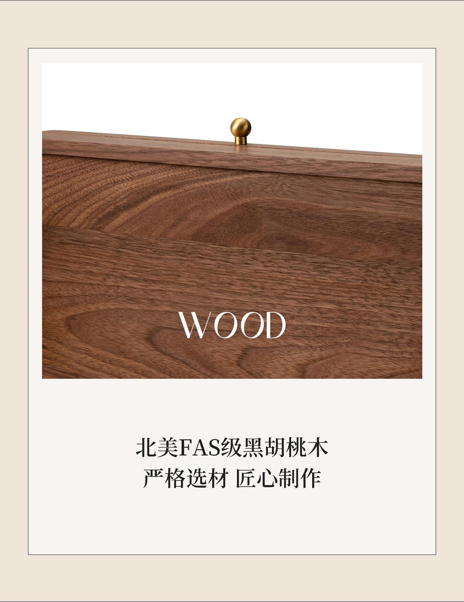 Fas north american black walnut + silver corrugated tempered glass + brass handle