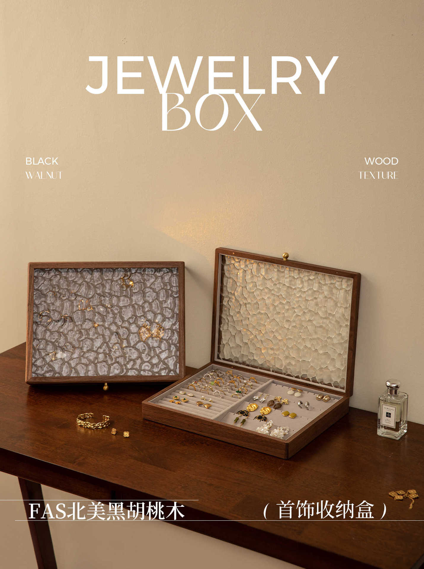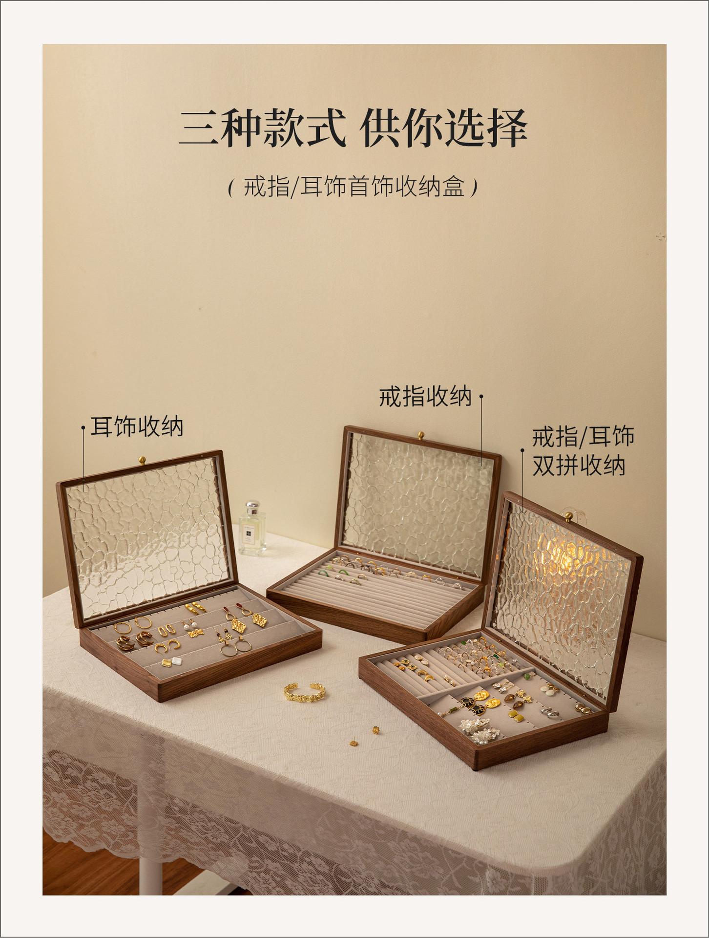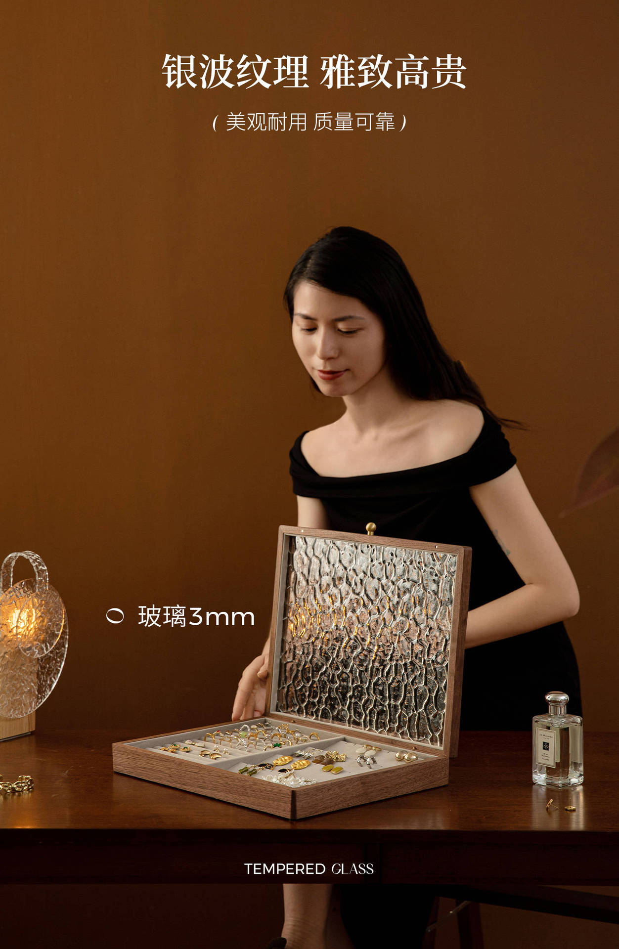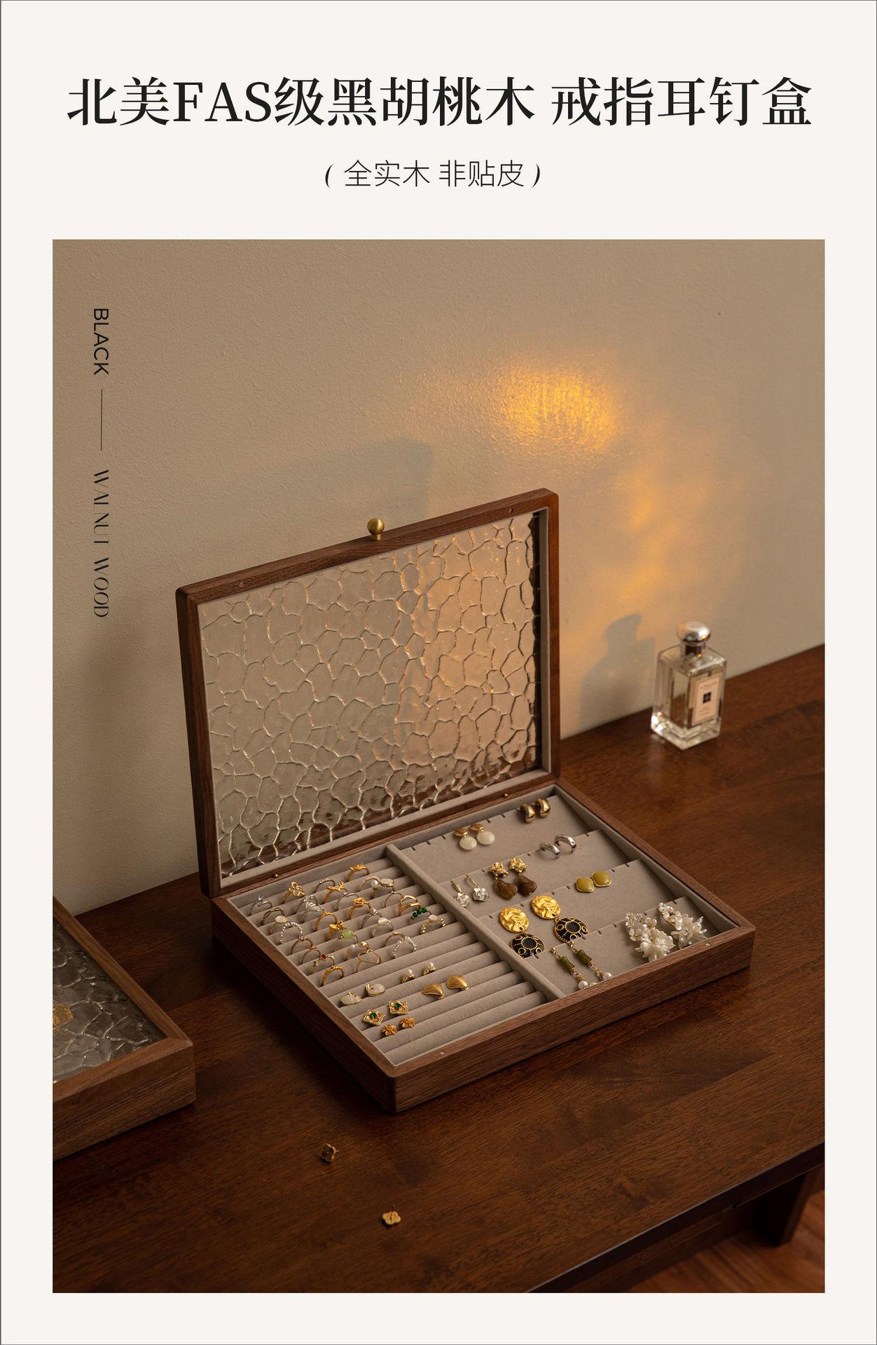 North american black walnut-ring earrings jewelry box, Walnut+silver corrugated glass-solid wood necklace box,...