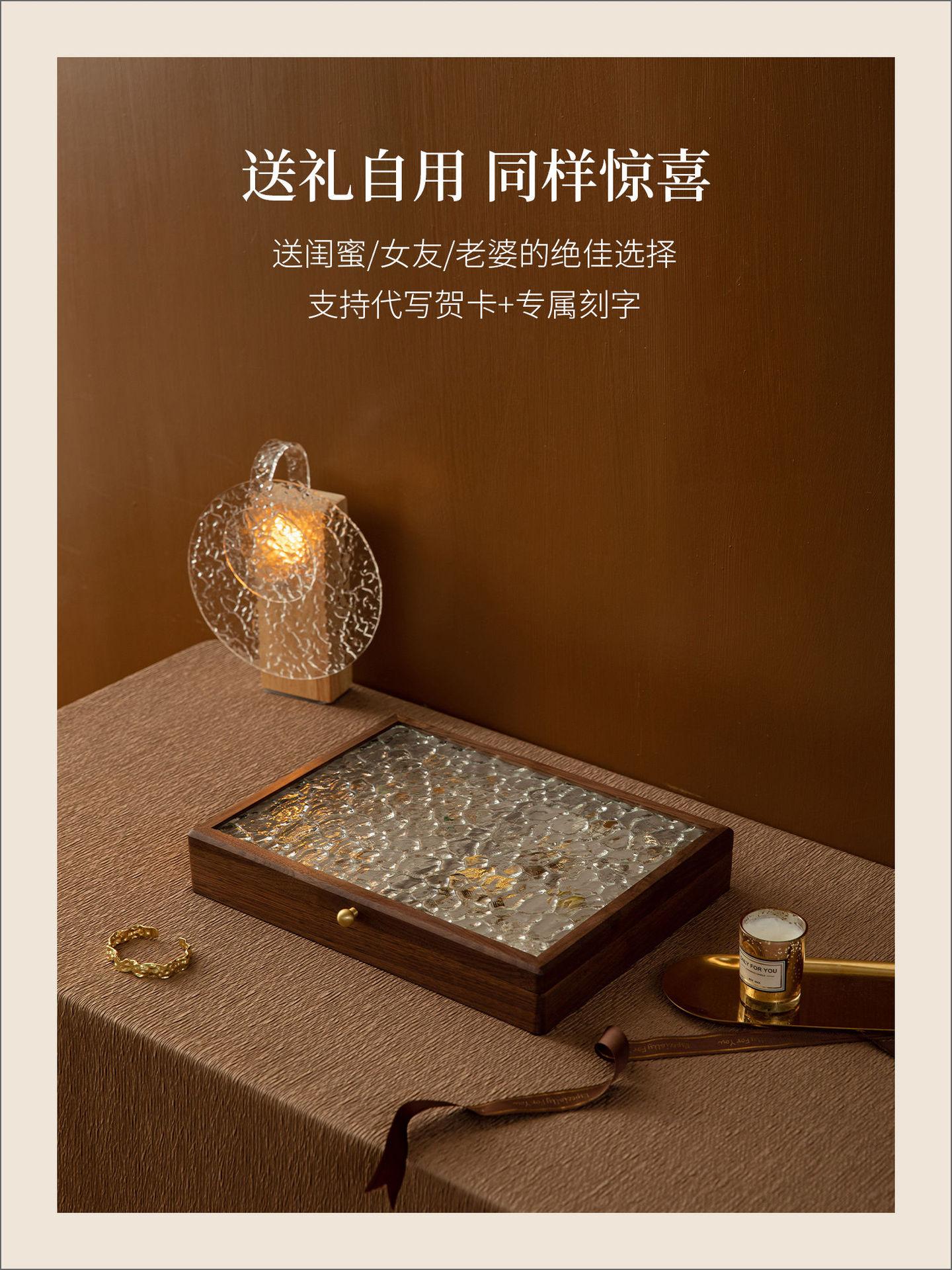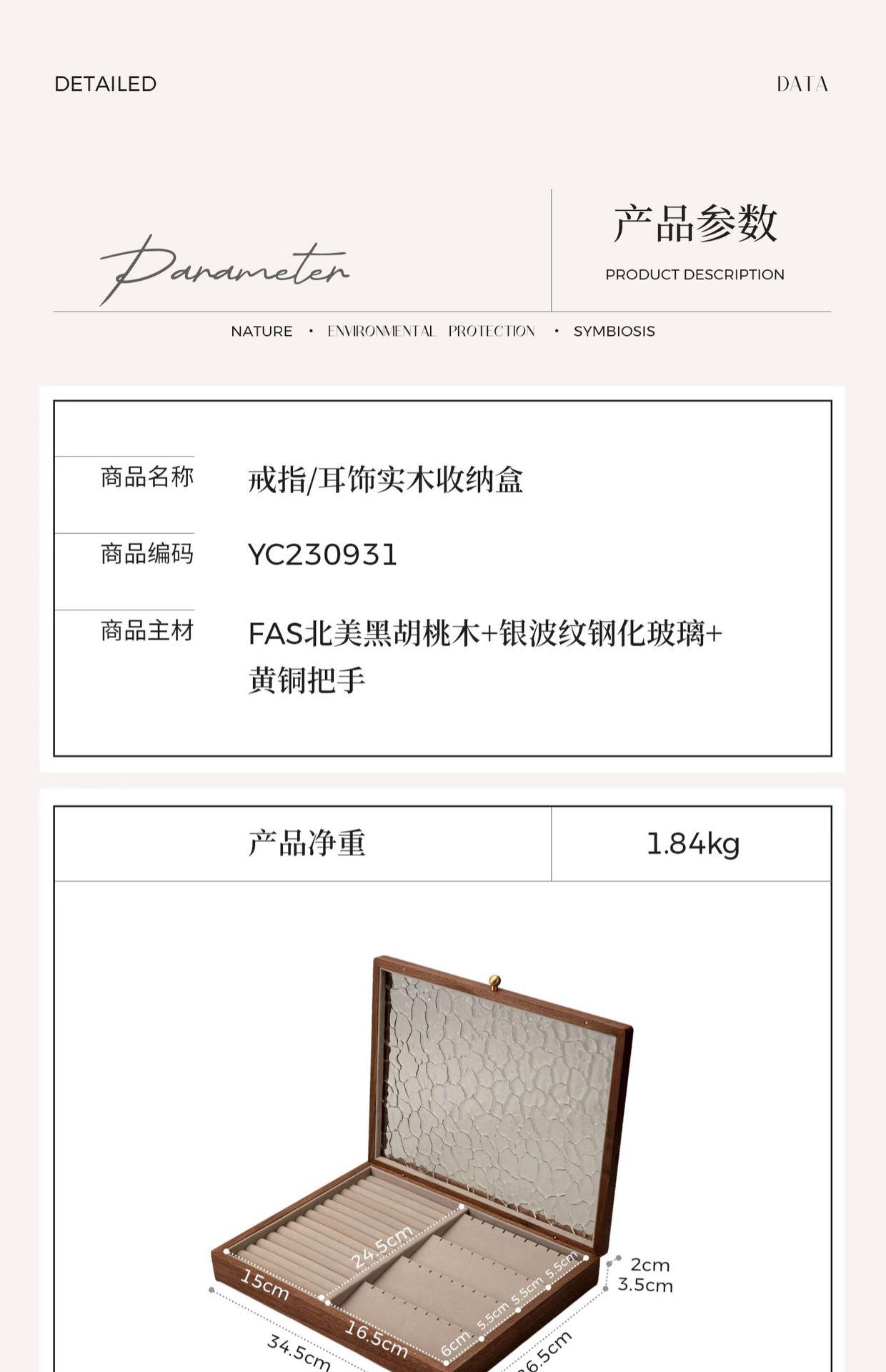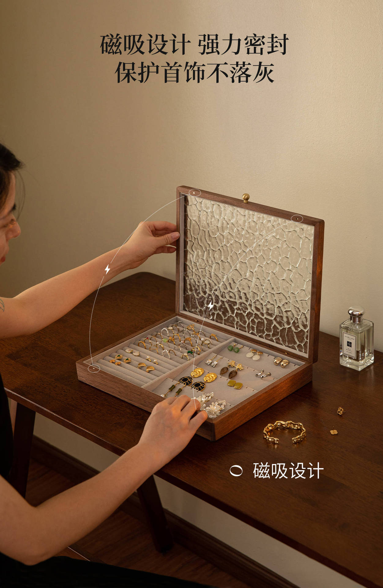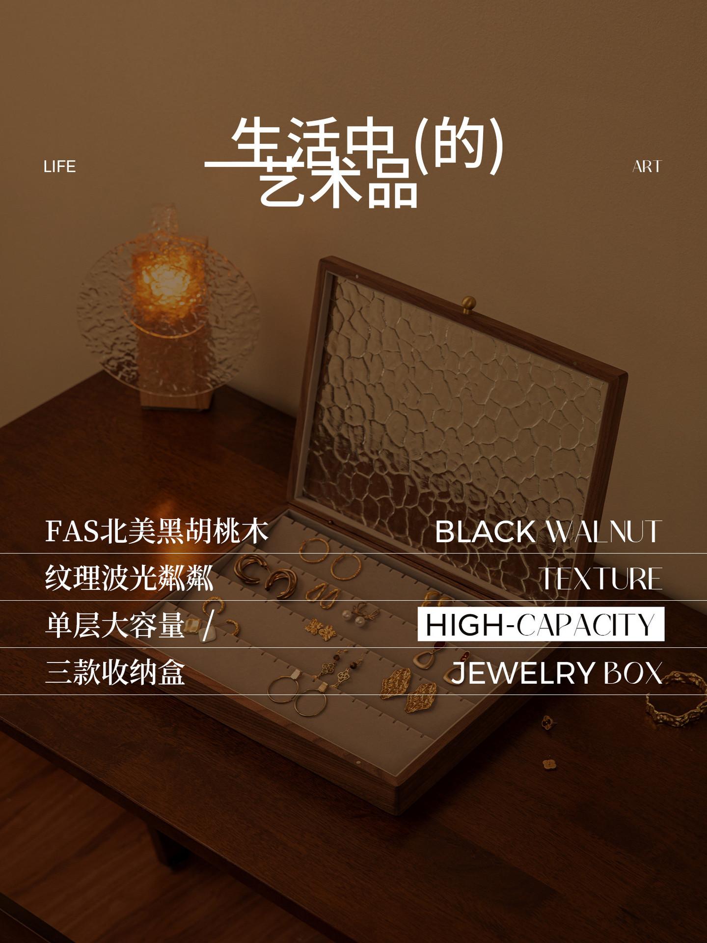 North american black walnut-ring earrings jewelry box, Walnut+silver corrugated glass-solid wood necklace box,...