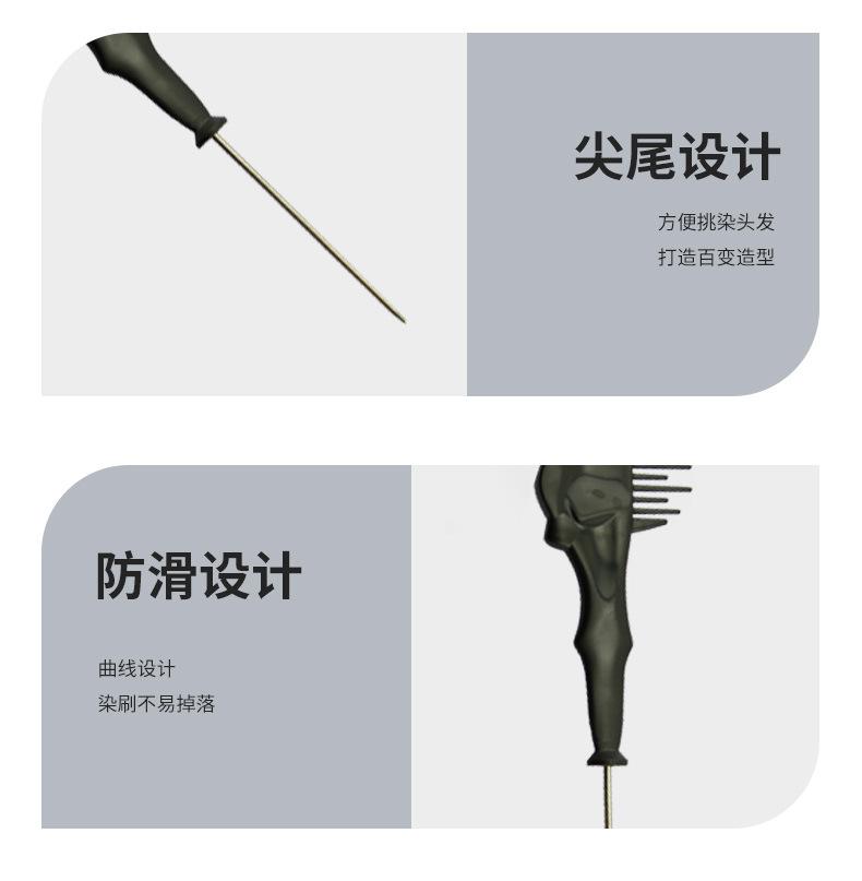 Cepillo de doble cara con aguja de acero para teñir el cabello, cepillo para teñir el cabello con aceite, cepillo para teñir el cabello blanco con fibra inversa, cepillo para teñir el cabello con cola puntiaguda.
