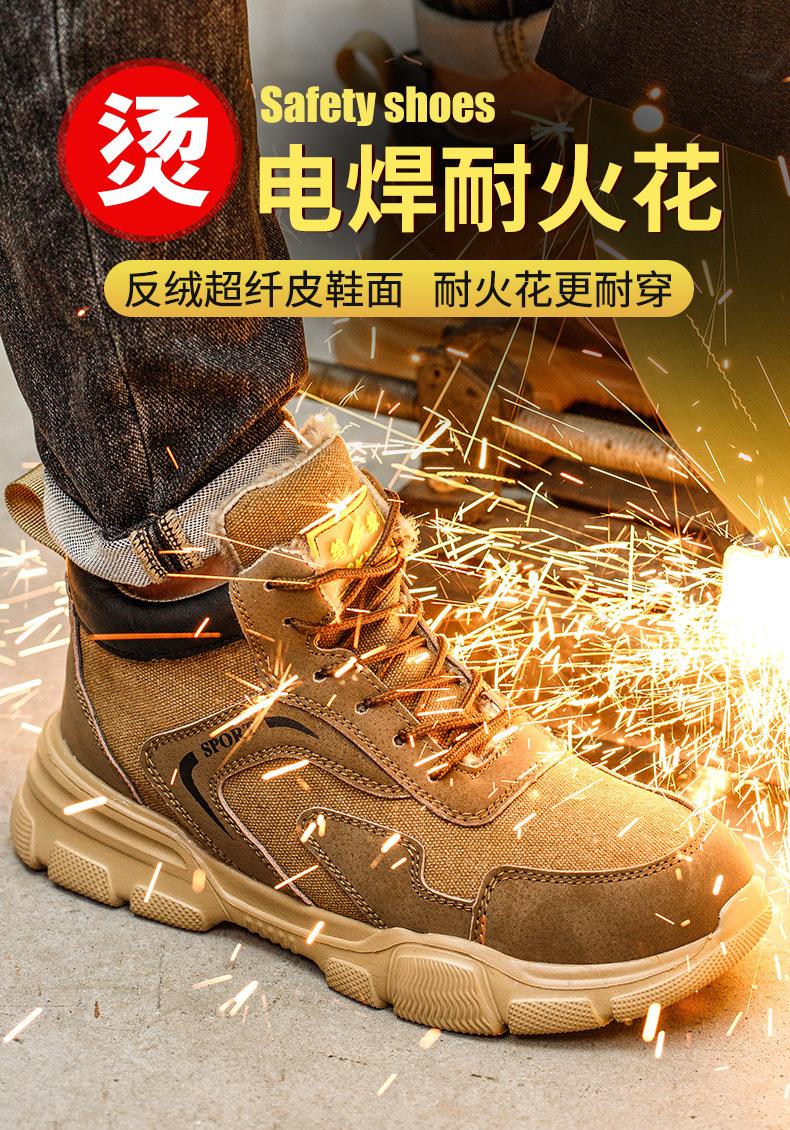 Zapatos de trabajo para hombre anti-aplastamiento anti-perforación invierno más terciopelo zapatos de algodón resistentes al calor y al desgaste ligeros soldador suela blanda zapatos de trabajo