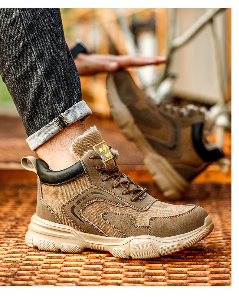 Zapatos de protección laboral para hombre, de caña alta, de invierno, forrados con vellón, antiaplastamiento, antipuñaladas, aislantes para electricistas, ligeros, de suela suave, resistentes al desgaste, para trabajos de seguridad en el sitio.