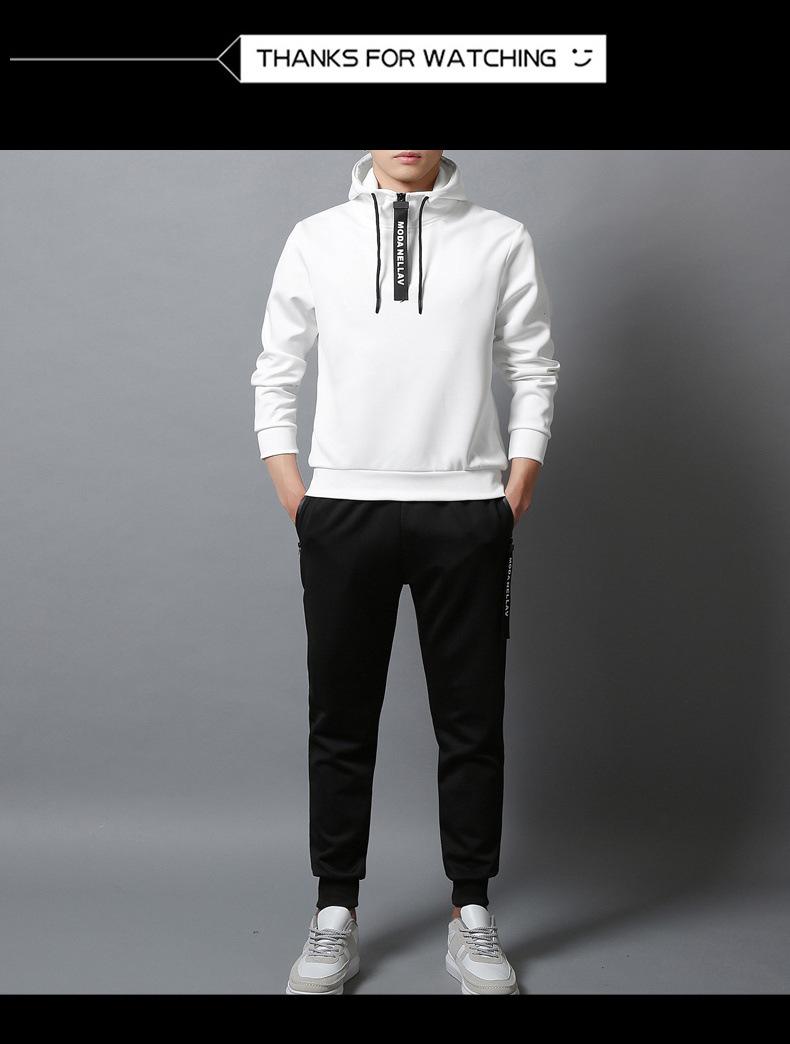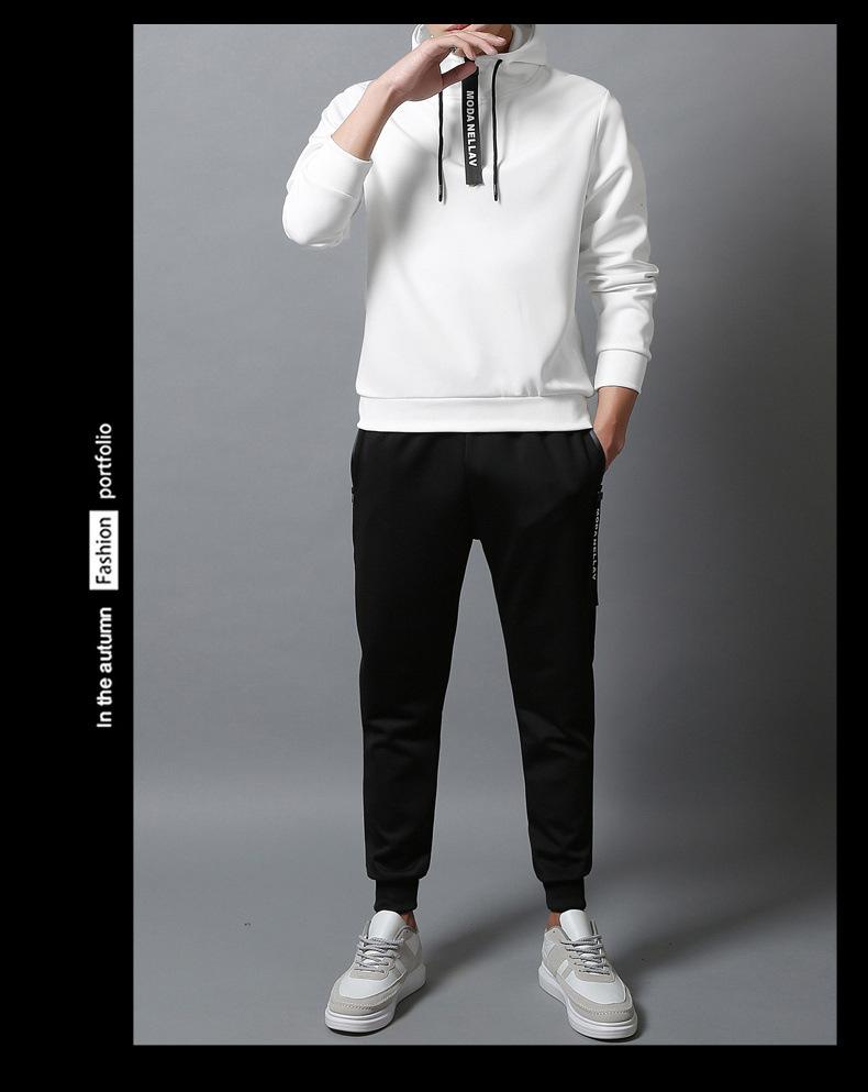 Suéter Nuevo de Primavera y Otoño Blanco para Hombre con Capucha Jersey Estilo Coreano Casual Traje Deportivo para Hombre Traje 736 Transfronterizo