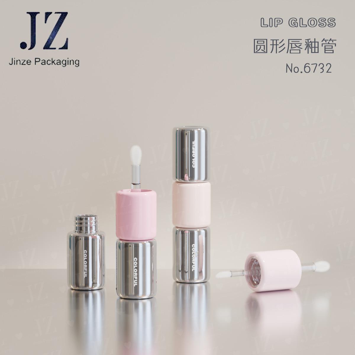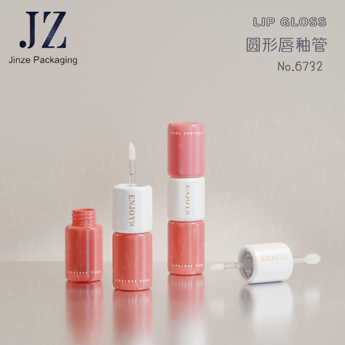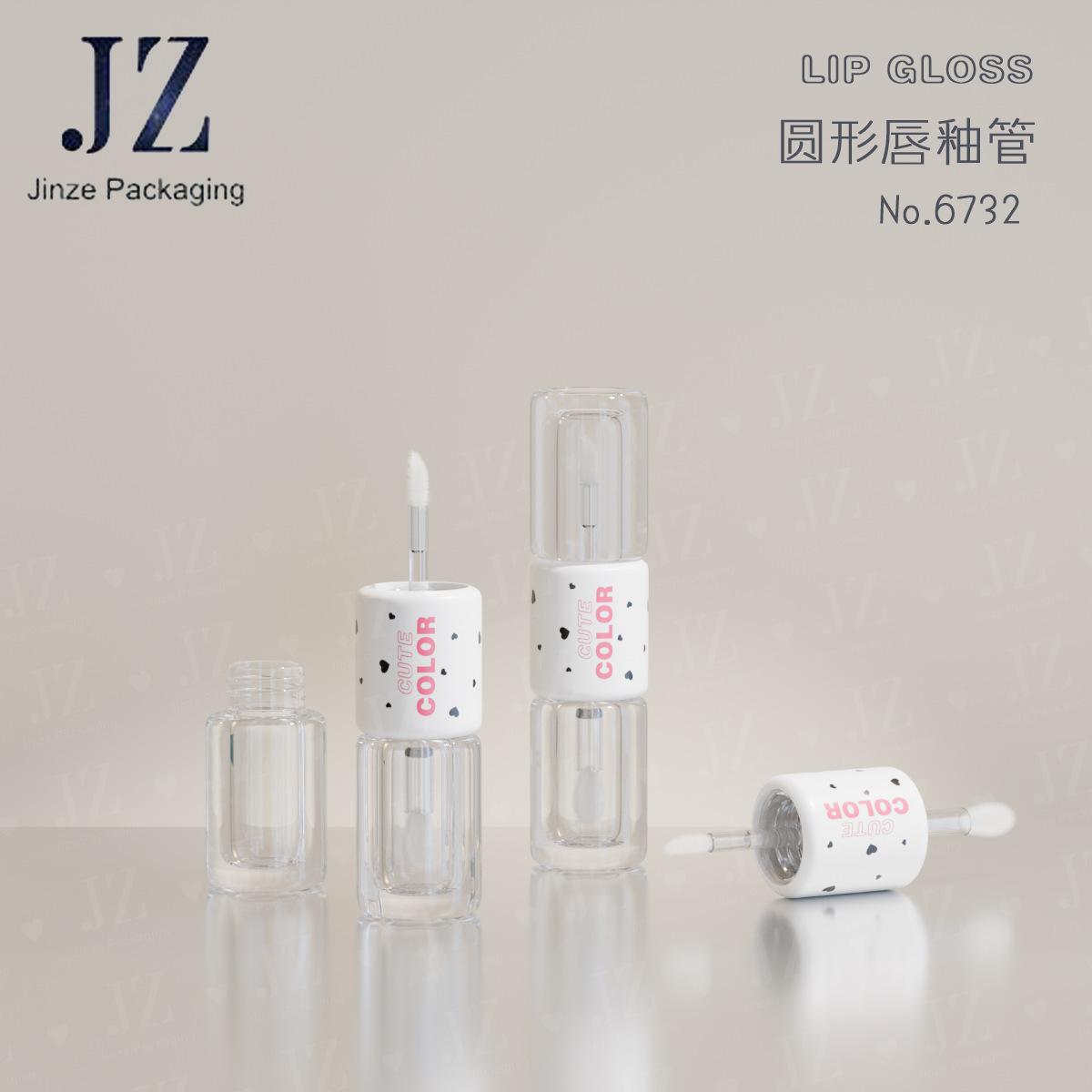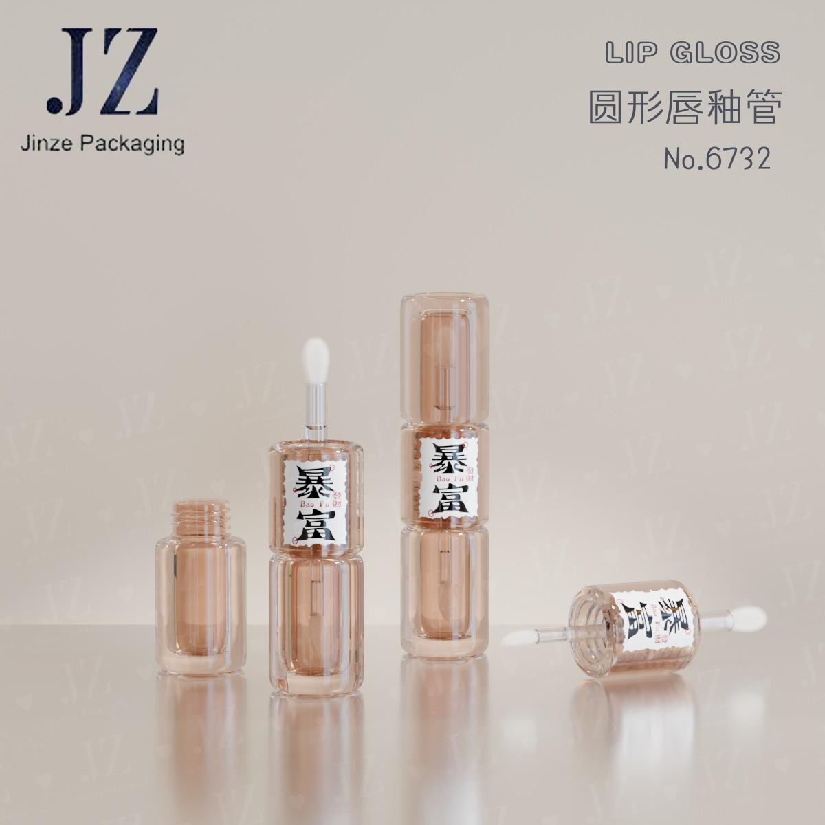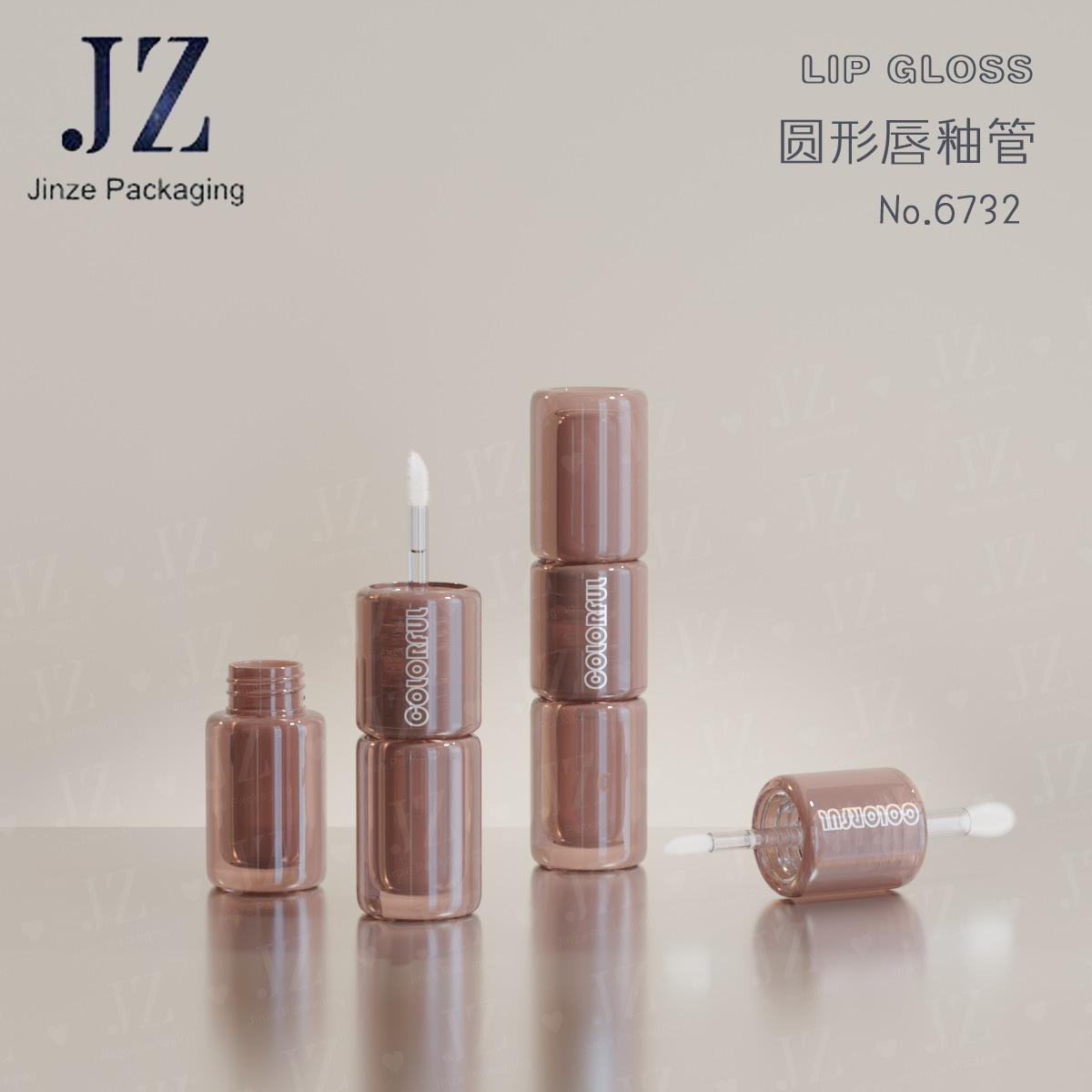 Tubo redondo Jinze para pedido, tubo de brillo labial de doble cabezal, tubo de brillo labial, dos tipos de varilla de cepillo opcionales, 7 ml, material de embalaje de tubo vacío de plástico