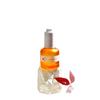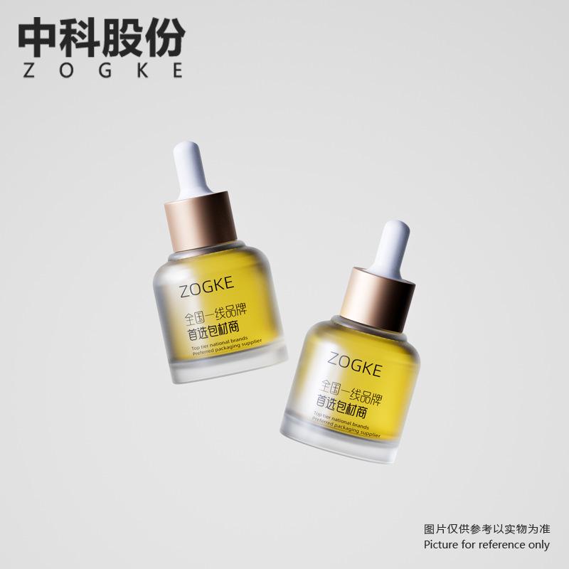 20ml frosted orange cake bottle with matte gold ring frosted white plastic head; glass; transparent