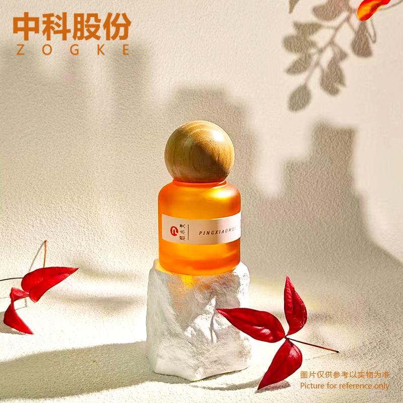 20ml frosted orange cake bottle with round wood ball cap; glass; transparent