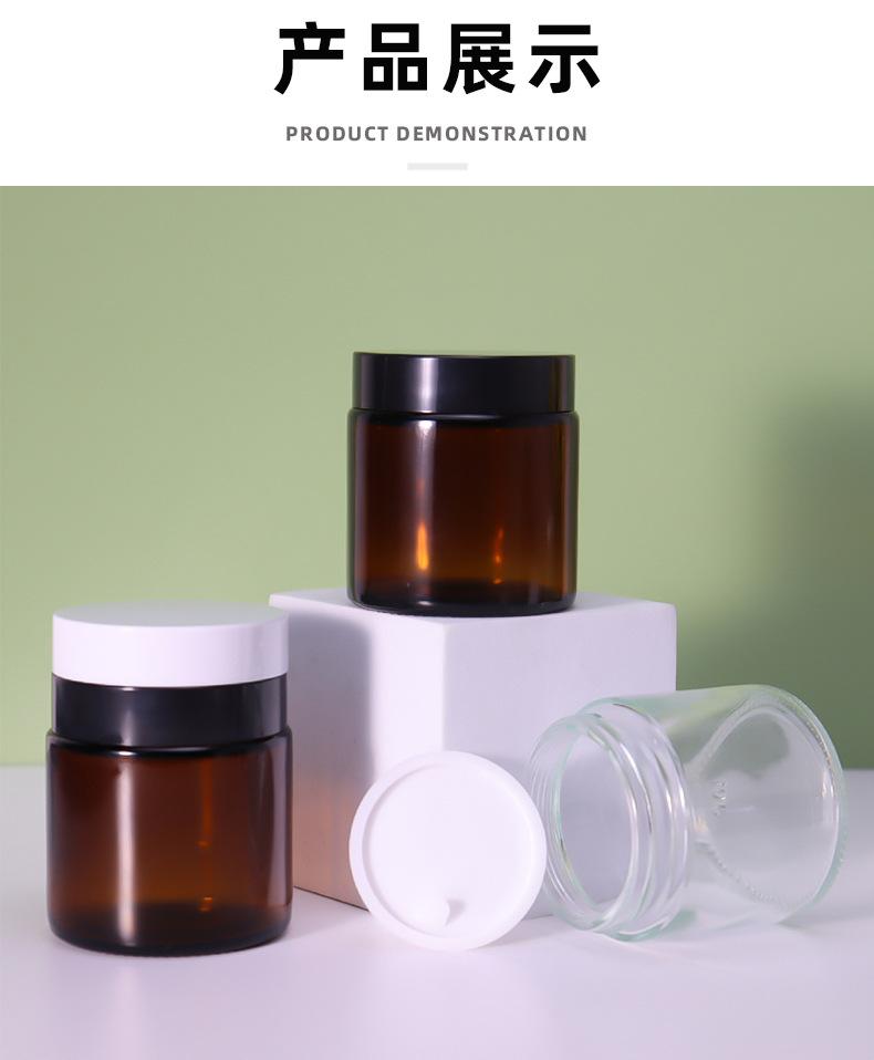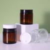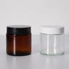 Frasco vacío de vidrio transparente marrón para crema, 120 g. Envase de viaje de vidrio oscuro para crema. Envase para cosméticos.
