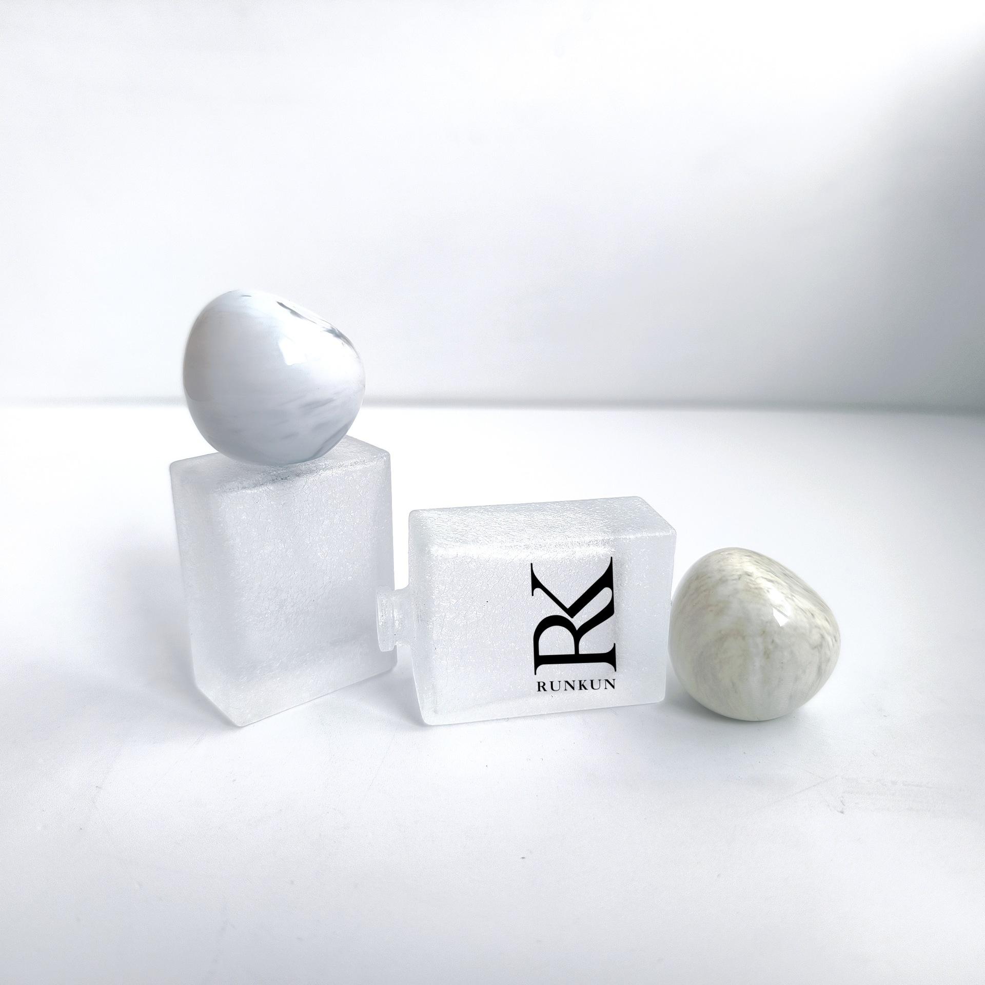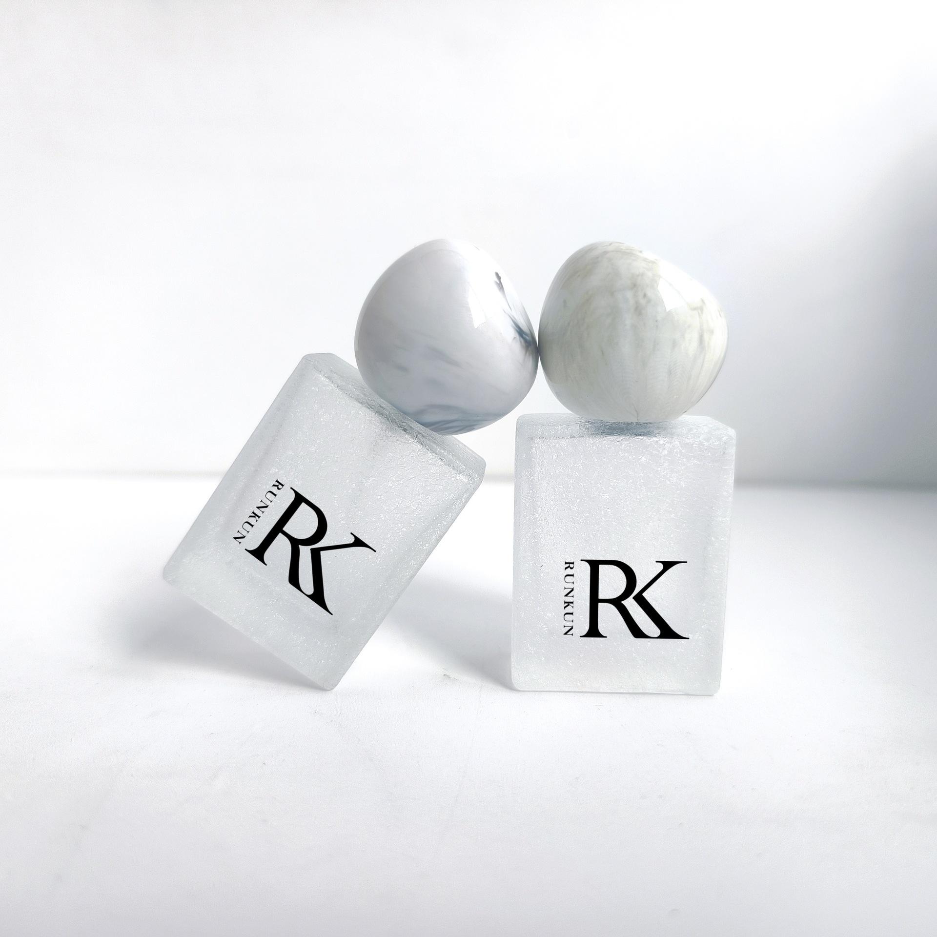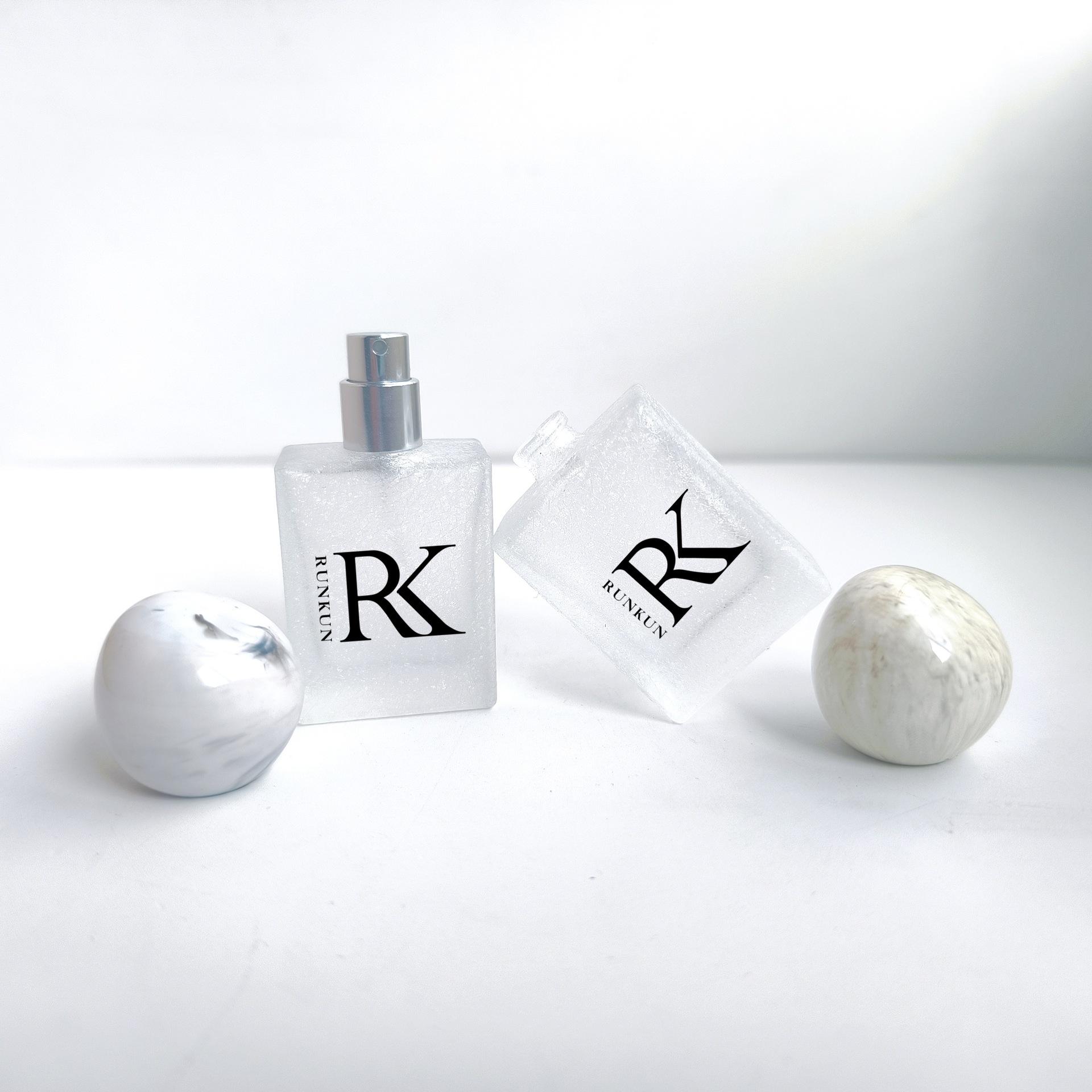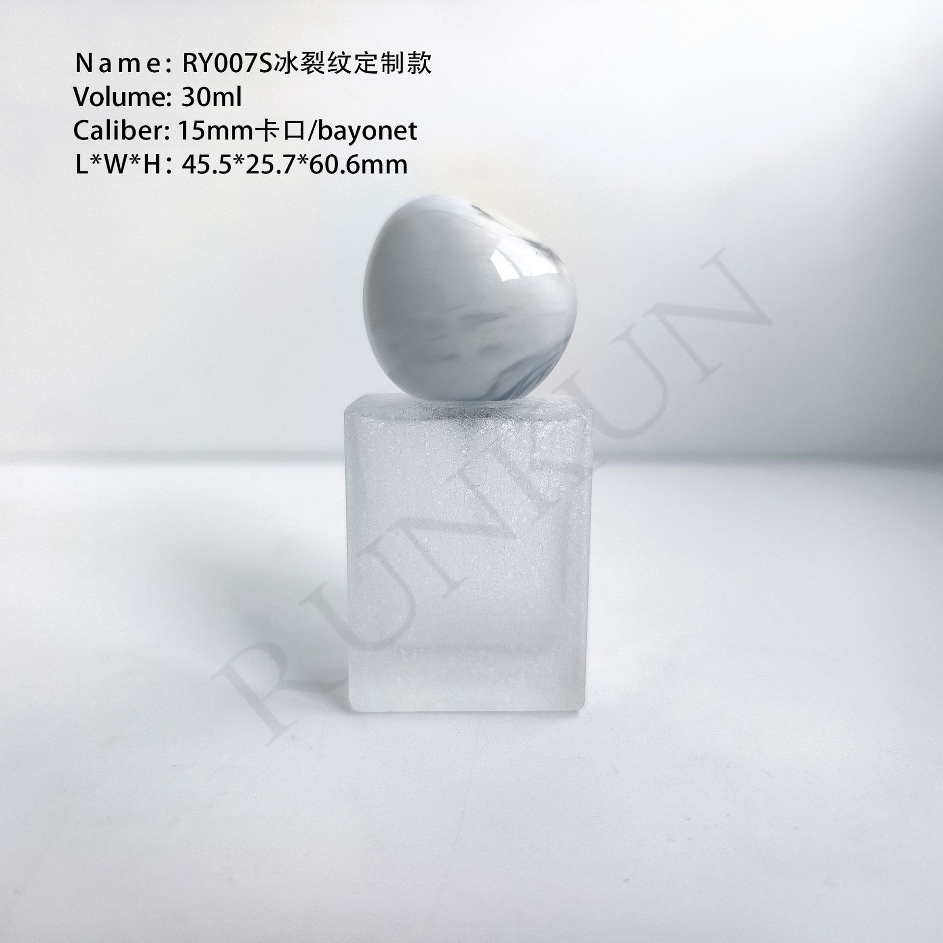Botella de perfume de 30 ml al por mayor, plana, cuadrada, con forma de hielo, para interiores, con pulverizador.