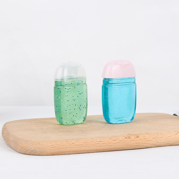 Botella de plástico tipo cabeza de tarjeta PET creativa 30ML botella cosmética desmaquillante portátil botella de desinfectante de manos para niños