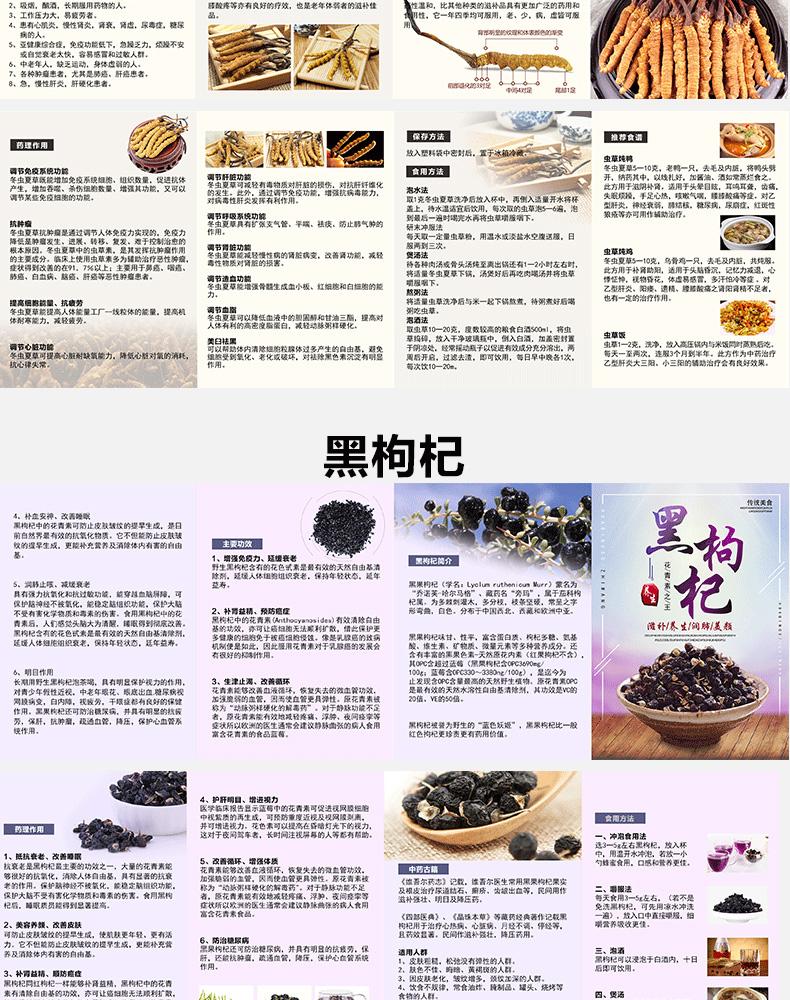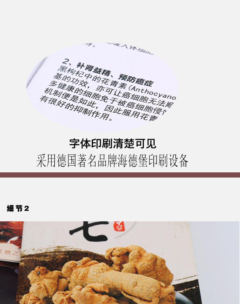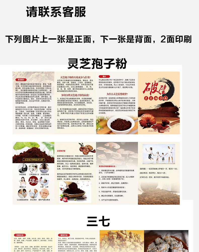 Manual de instrucciones de baya de goji negra polvo de panax notoginseng instrucción Dendrobium Ganoderma lucidum Ganoderma lucidum tarjeta de instrucciones de ginseng americano 30% cuatro páginas