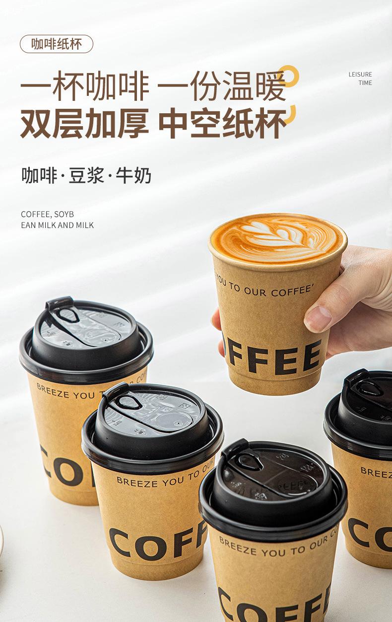 Vaso de papel kraft de doble capa, vaso de papel para café, vaso desechable para leche, té con tapa, envase para bebida caliente, vaso en blanco para llevar, antiescaldamiento