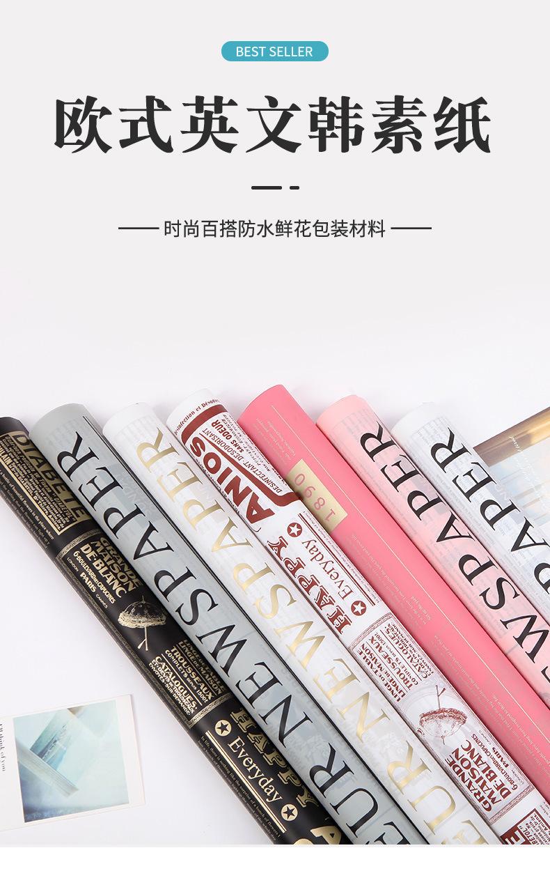 Compra Punto de Fabricante Venta al por Mayor Nuevo Papel de Envoltura de Flores Impermeable Estilo Europeo Inglés Coreano Papel Liso Florería Ramo Materiales de Empaque al por mayor en Joom.pro