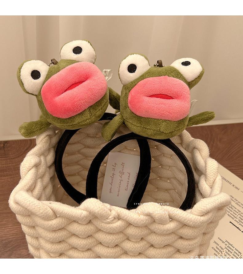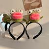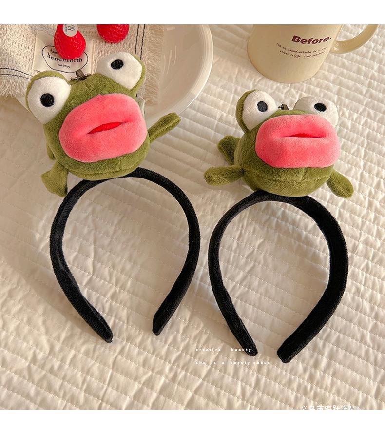 Diadema de ciervo blanco con divertida y linda rana de boca grande con joyas Haiyue, diadema de maquillaje facial de dibujos animados de otoño e invierno