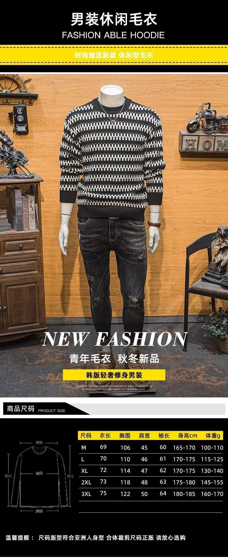 Suéter a rayas para hombre, marca de moda de otoño e invierno, Pu Shuai, camisa informal de cuello redondo, suéter interior para hombre nuevo 2024