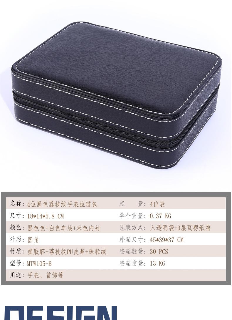 Caja de Exhibición para Relojes de Cuarzo Multipack en Stock, 4 Ranuras a Prueba de Golpes Estilo Nórdico Cierre de Cremallera Embalaje Inteligente Caja de Joyería