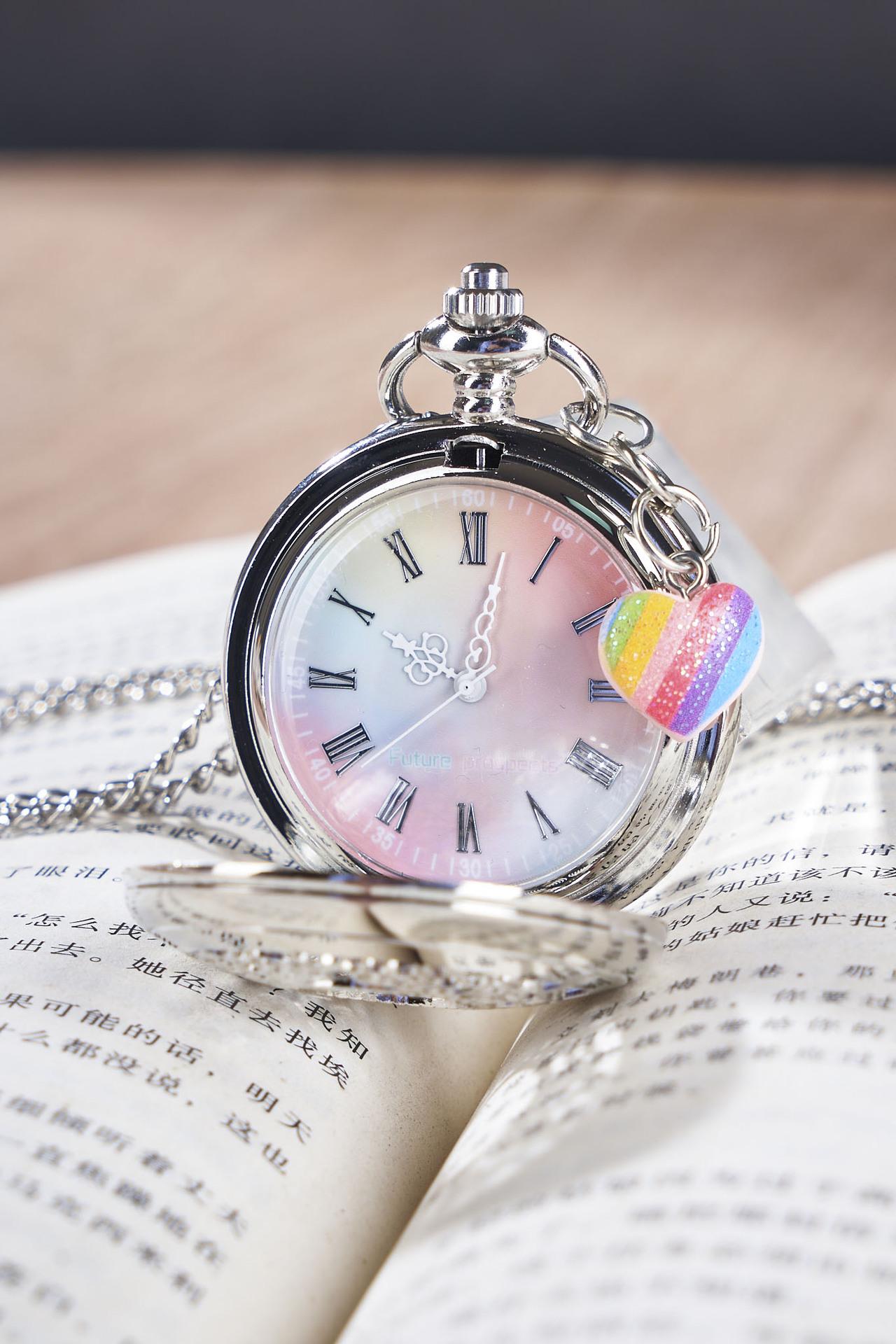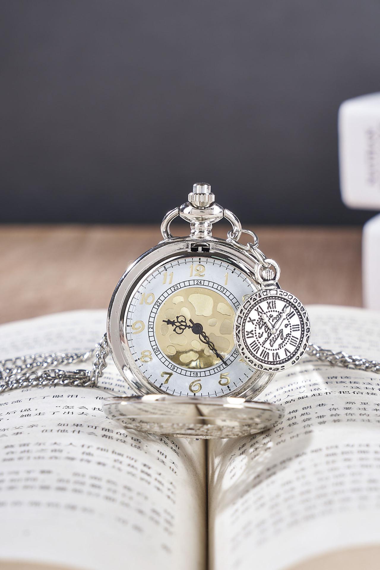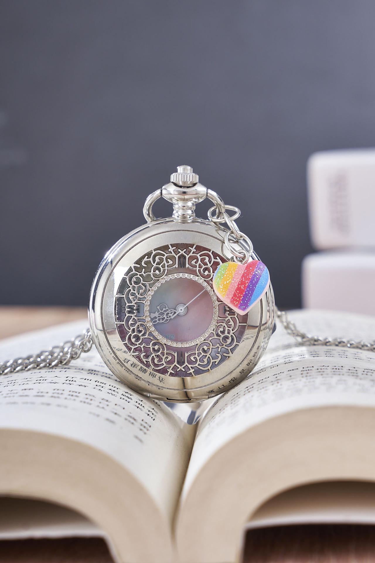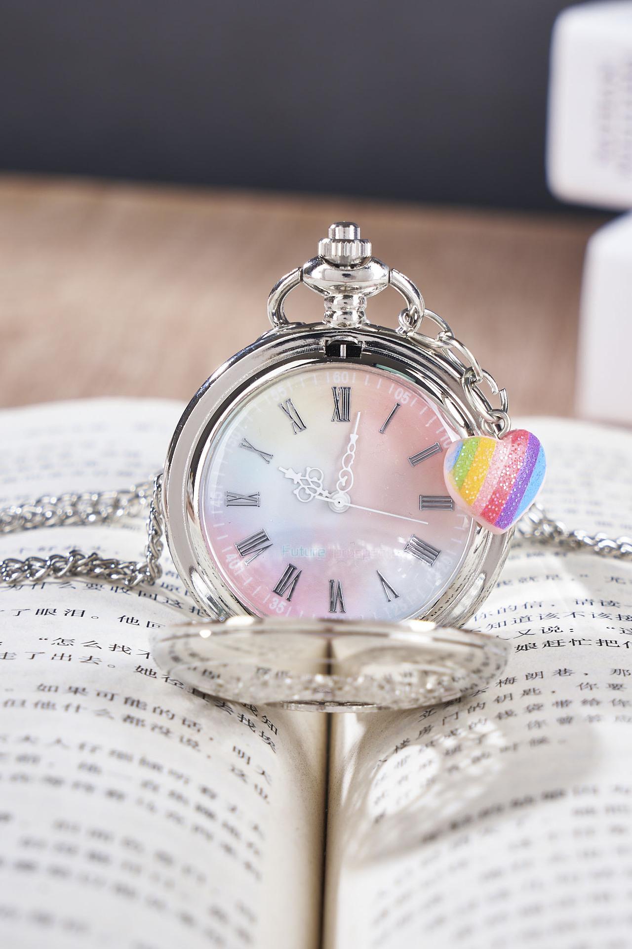 Reloj de Cuarzo Nuevo de Venta Caliente de Comercio Exterior Patrón Recortado Plateado Creativo Colorido Números Romanos Reloj de Bolsillo