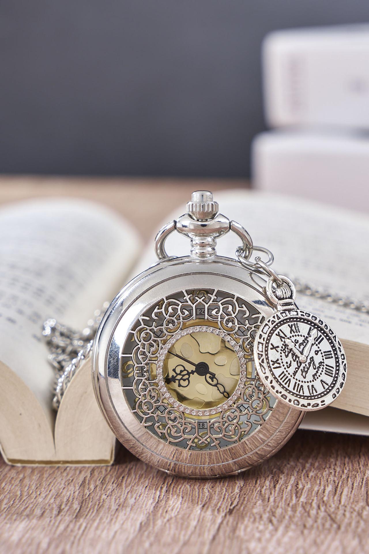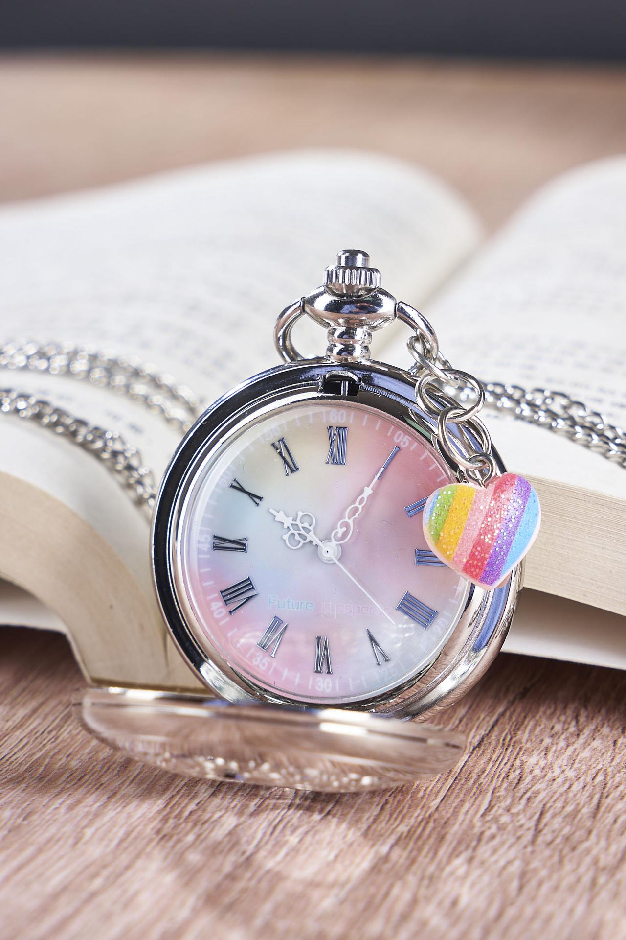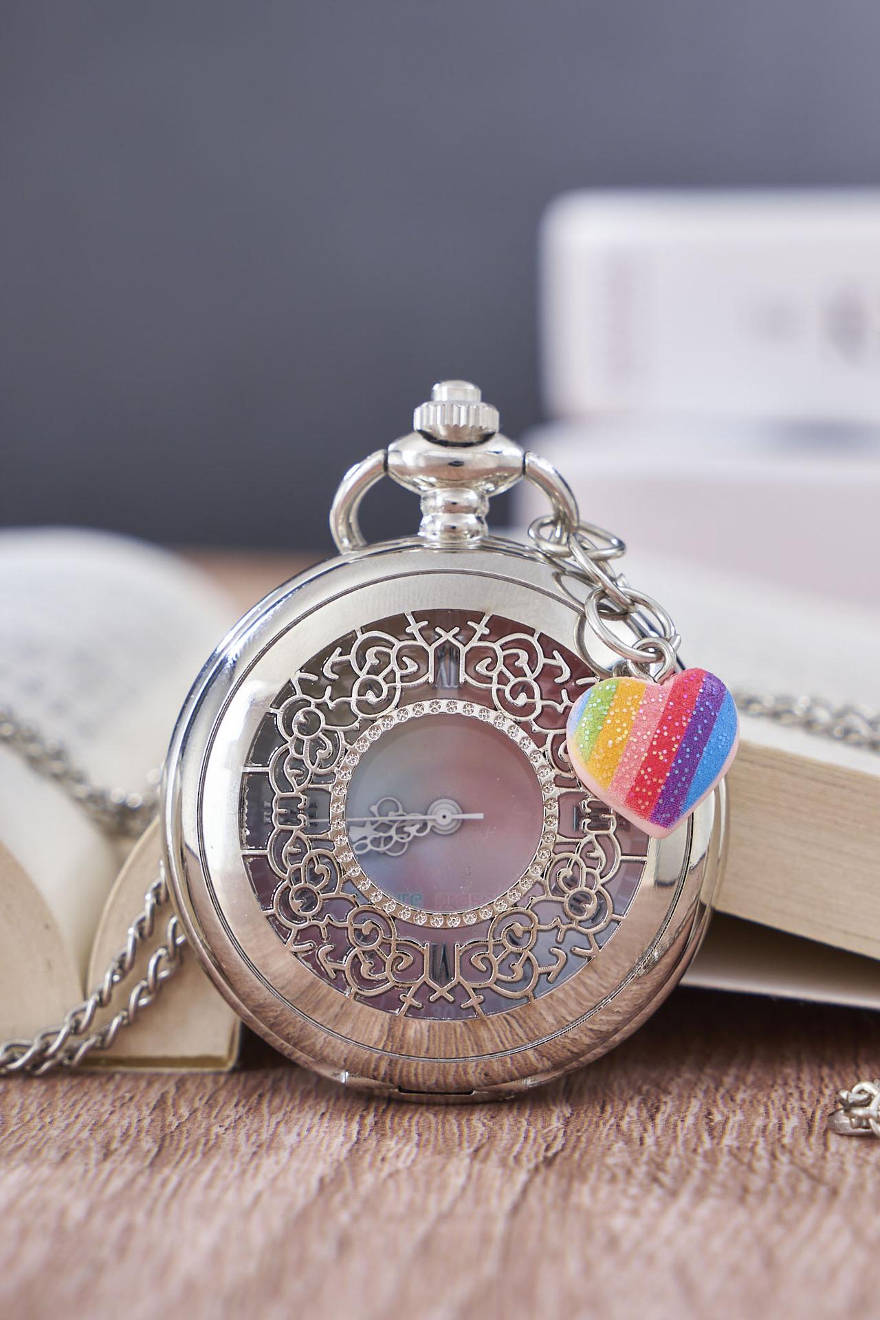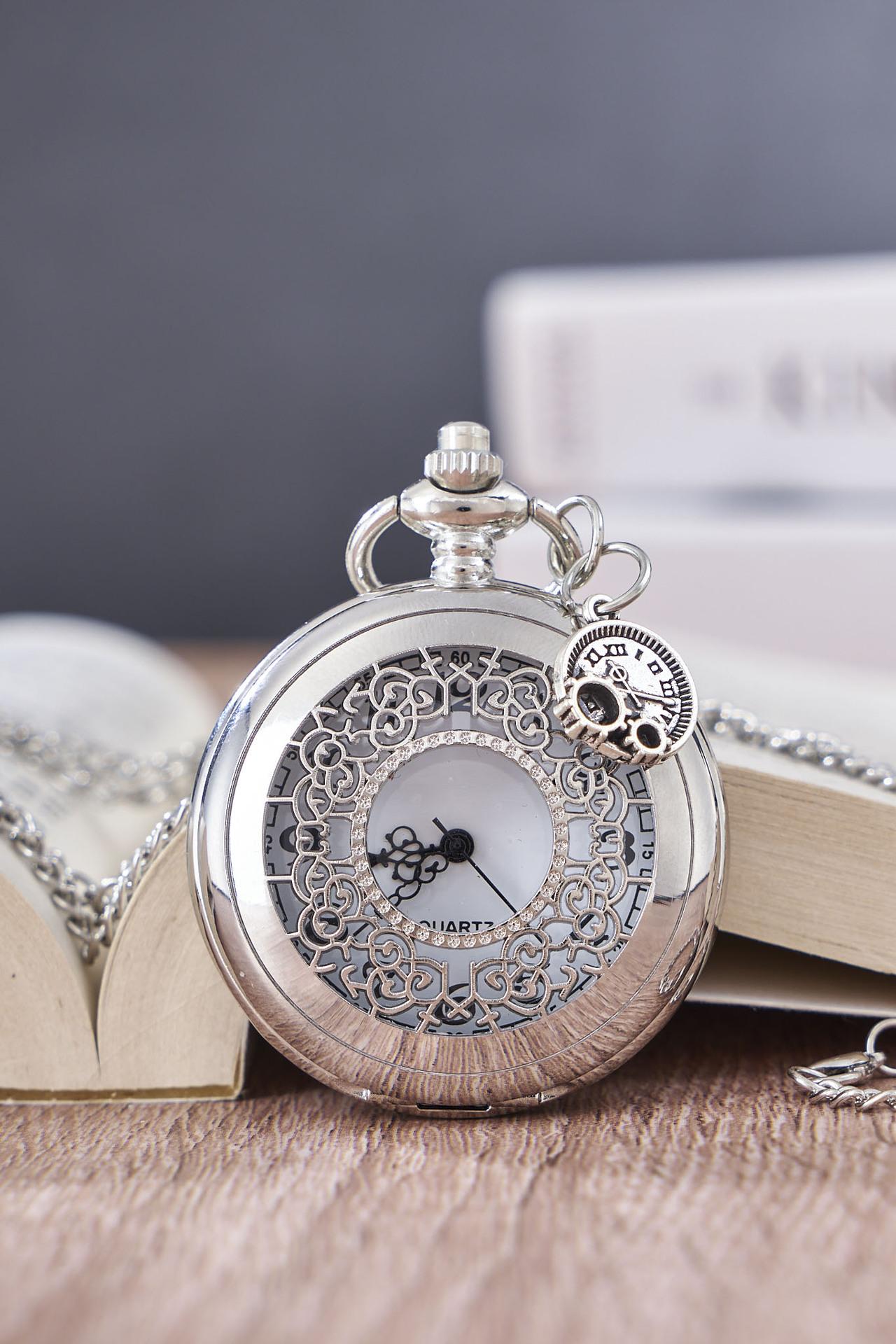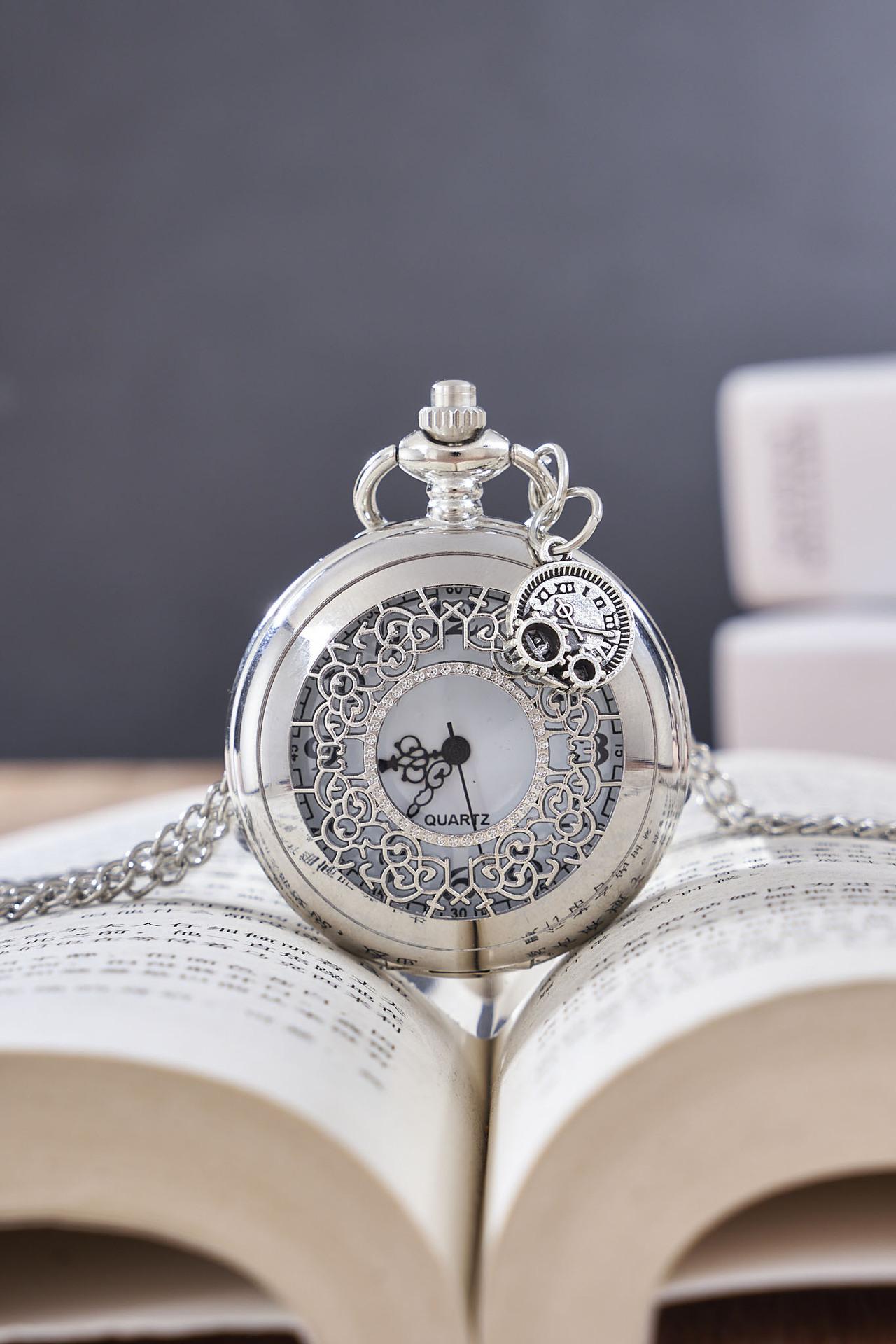 Reloj de Cuarzo Nuevo de Venta Caliente de Comercio Exterior Patrón Recortado Plateado Creativo Colorido Números Romanos Reloj de Bolsillo