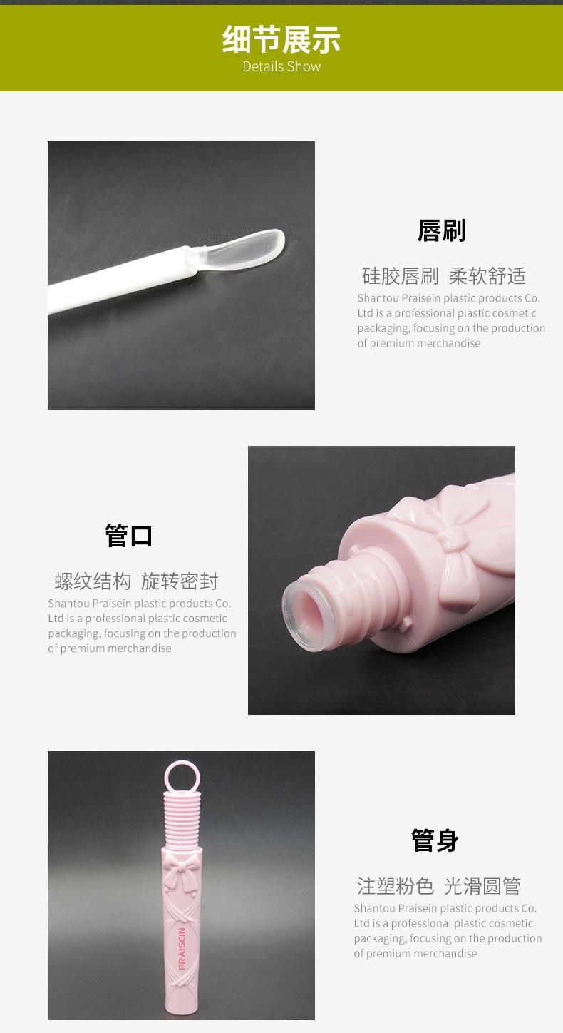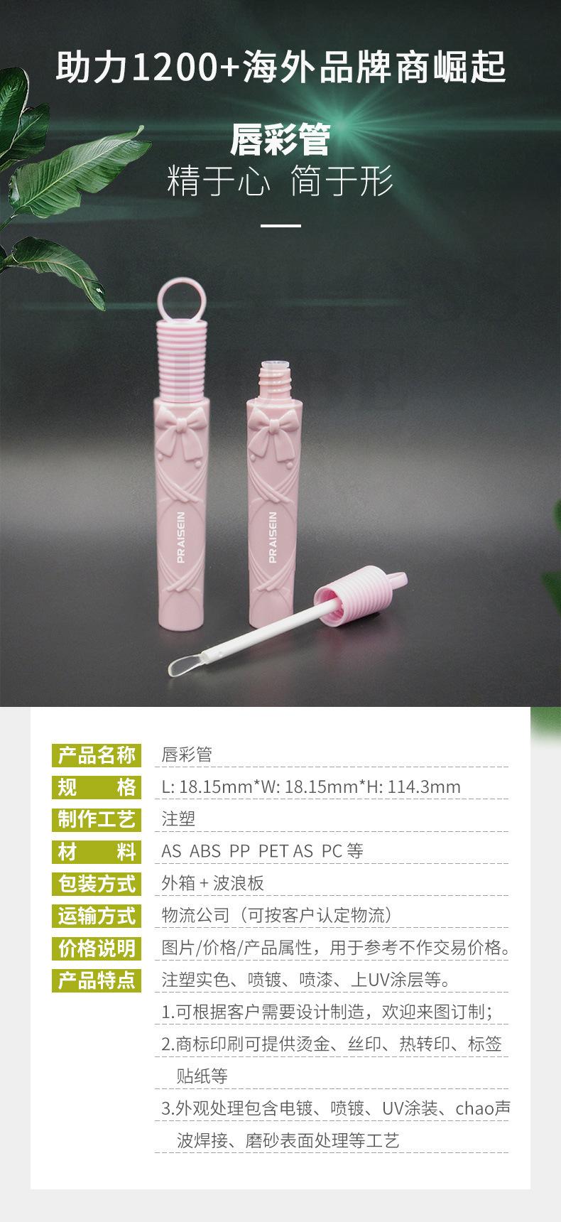 Tubo de color para labios rosa con lazo nuevo de fábrica 1.5g tubo redondo inyectado para color de labios con cepillo de silicona
