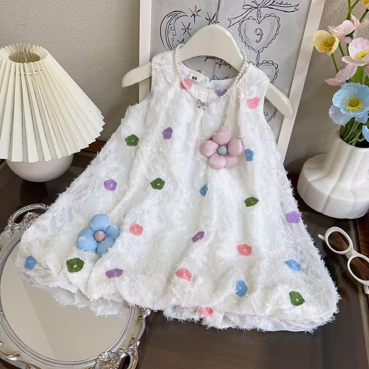 Vestido de verano 2025 para niñas, nuevo, de princesa, sin mangas, con flores, estilo occidental