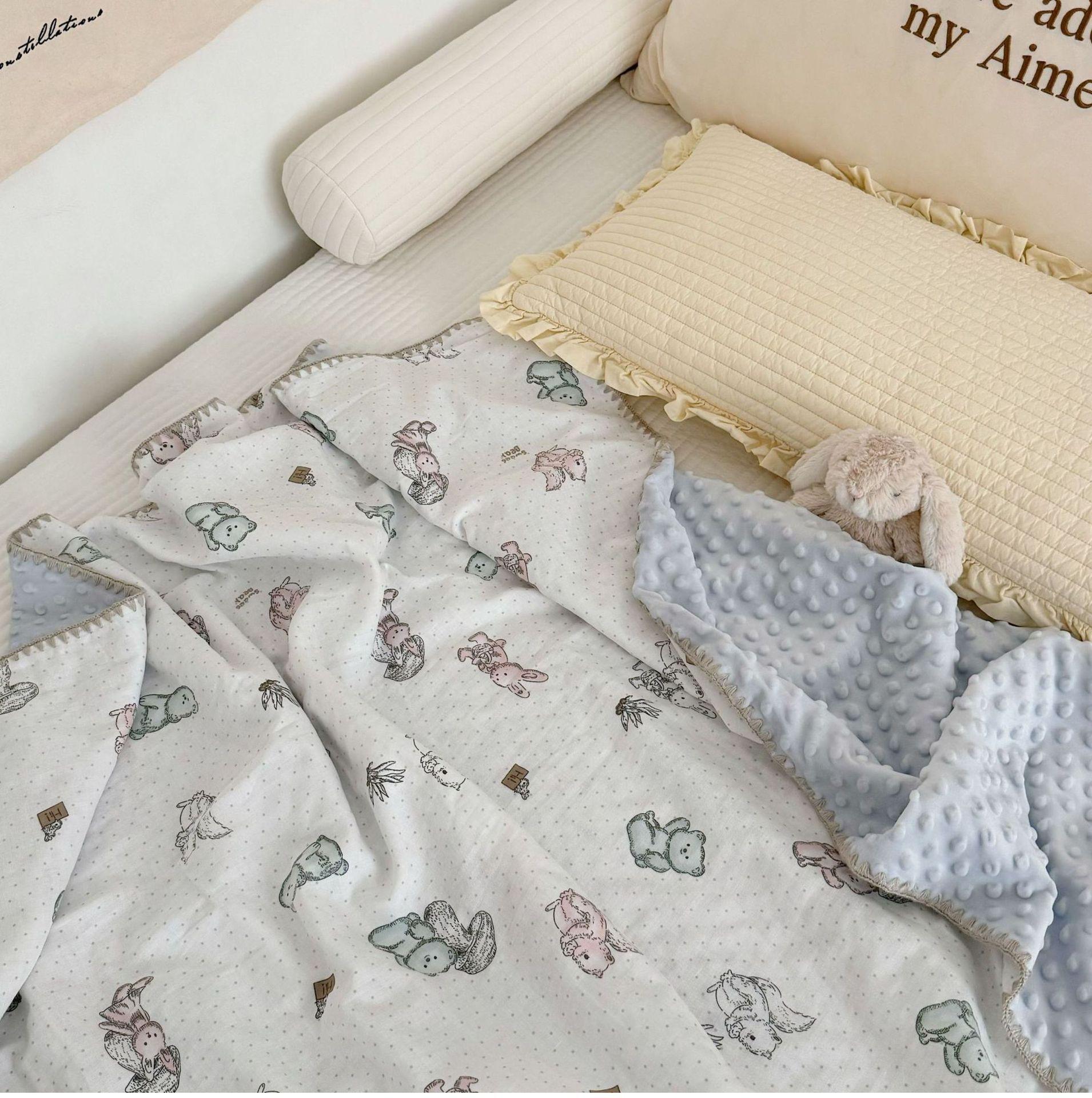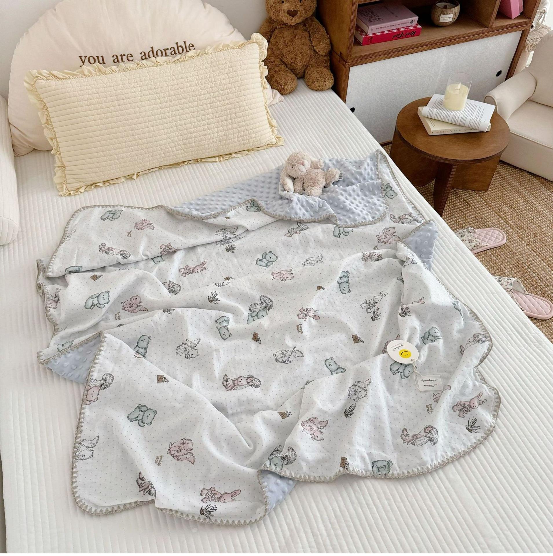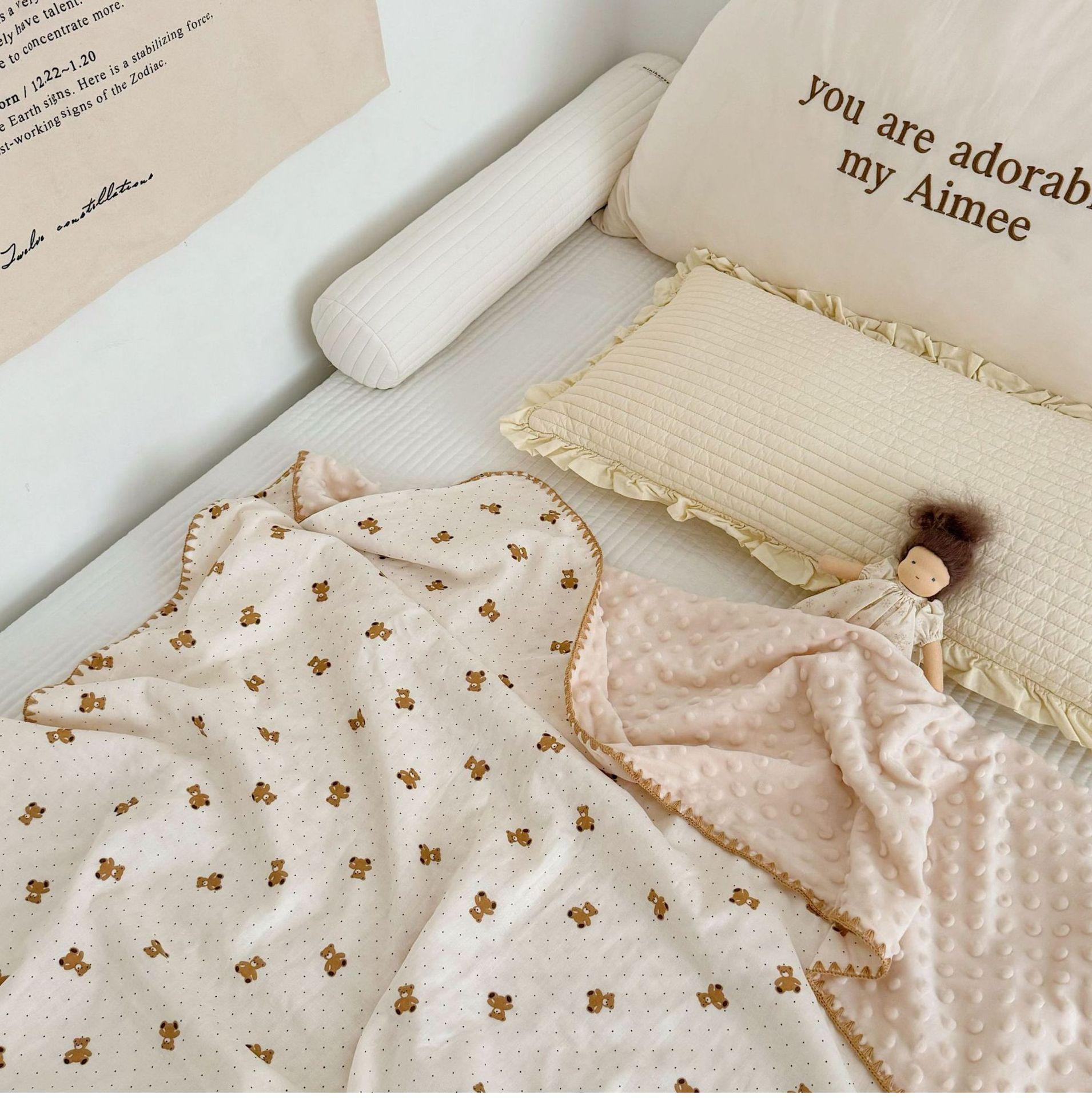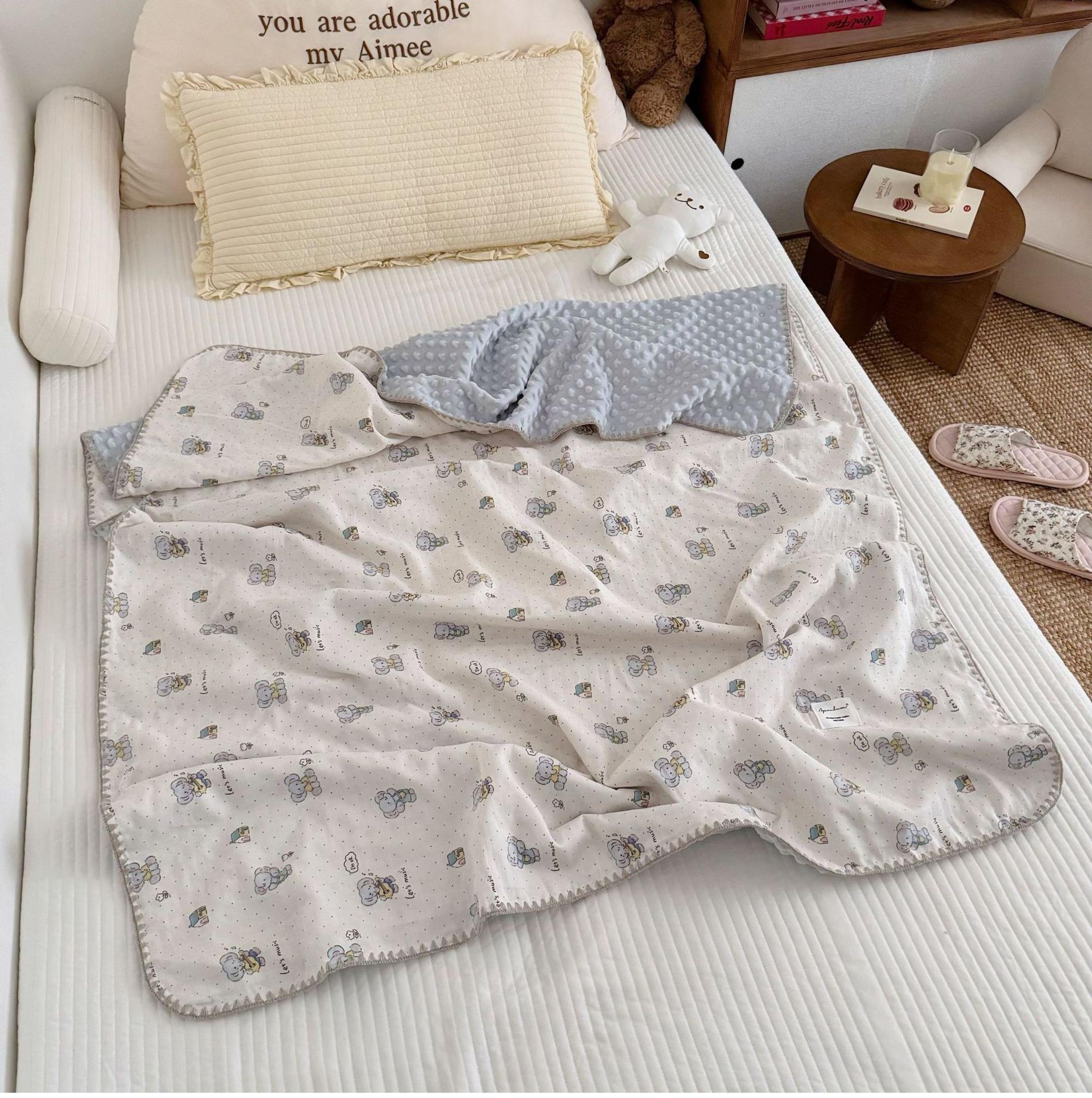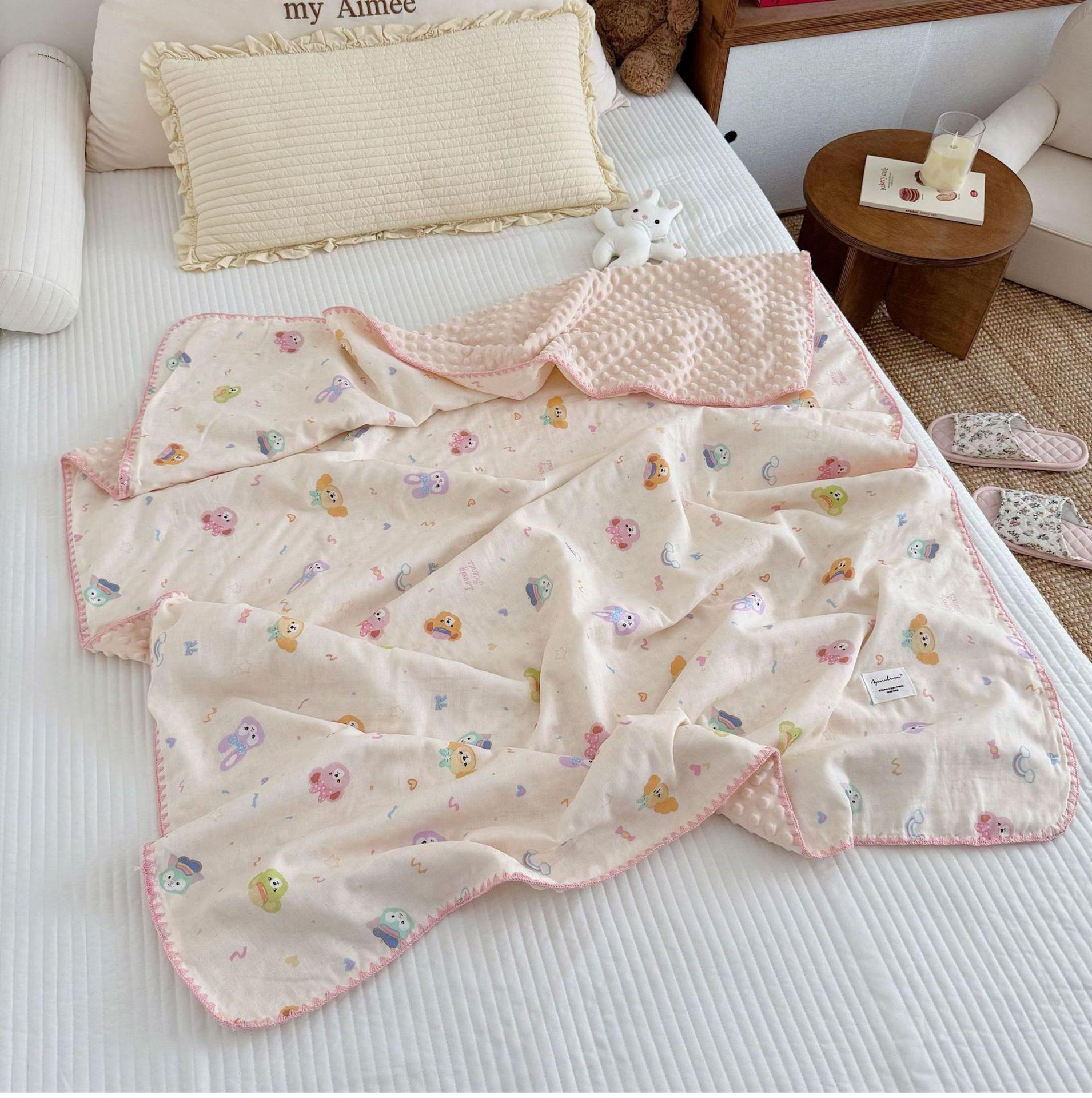 Manta de Frijol de Hilo Doble Capa de Algodón Ins para Niños de Dibujos Animados Manta de Algodón para las Cuatro Estaciones Manta para la Siesta de Oficina