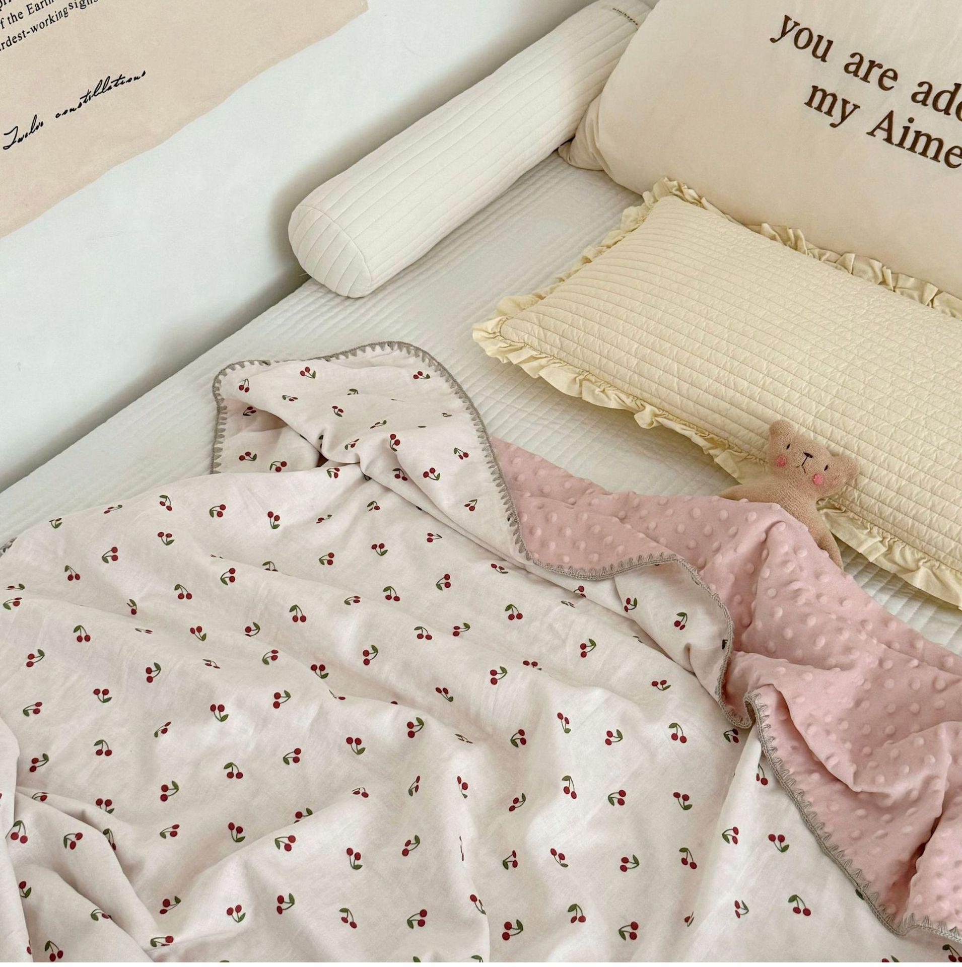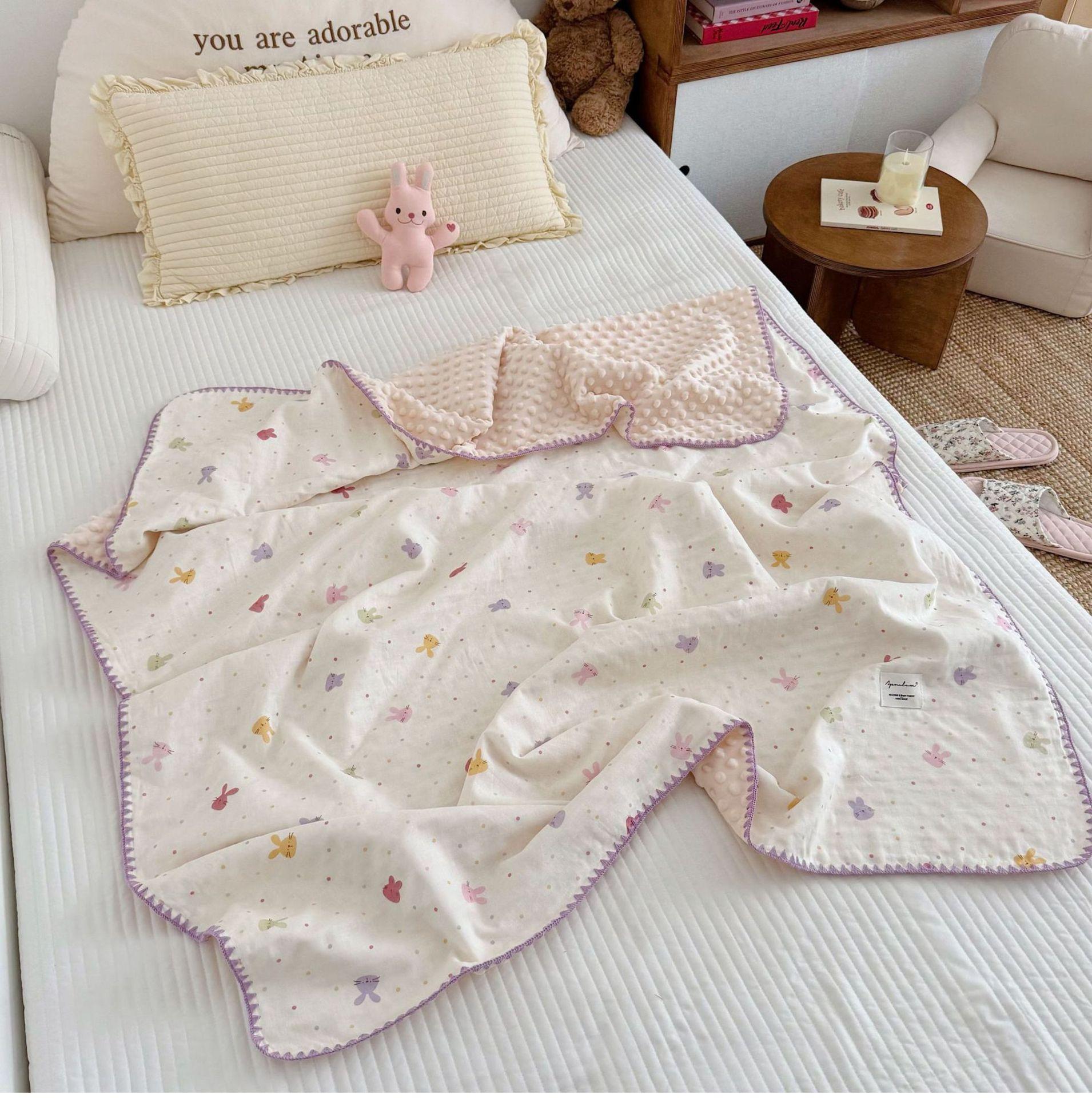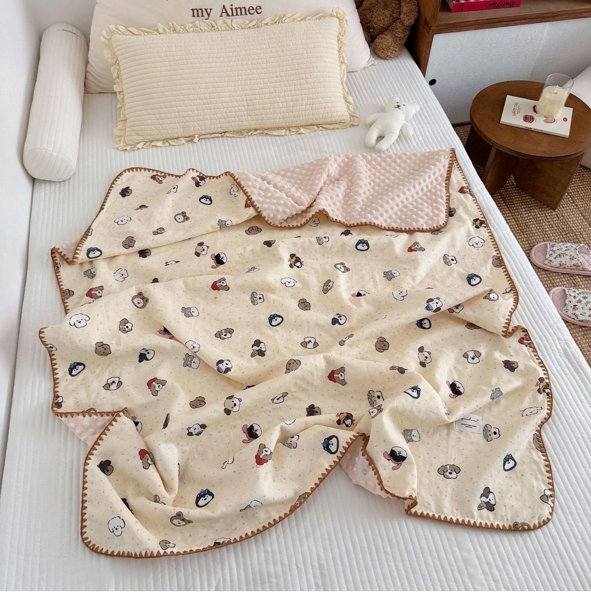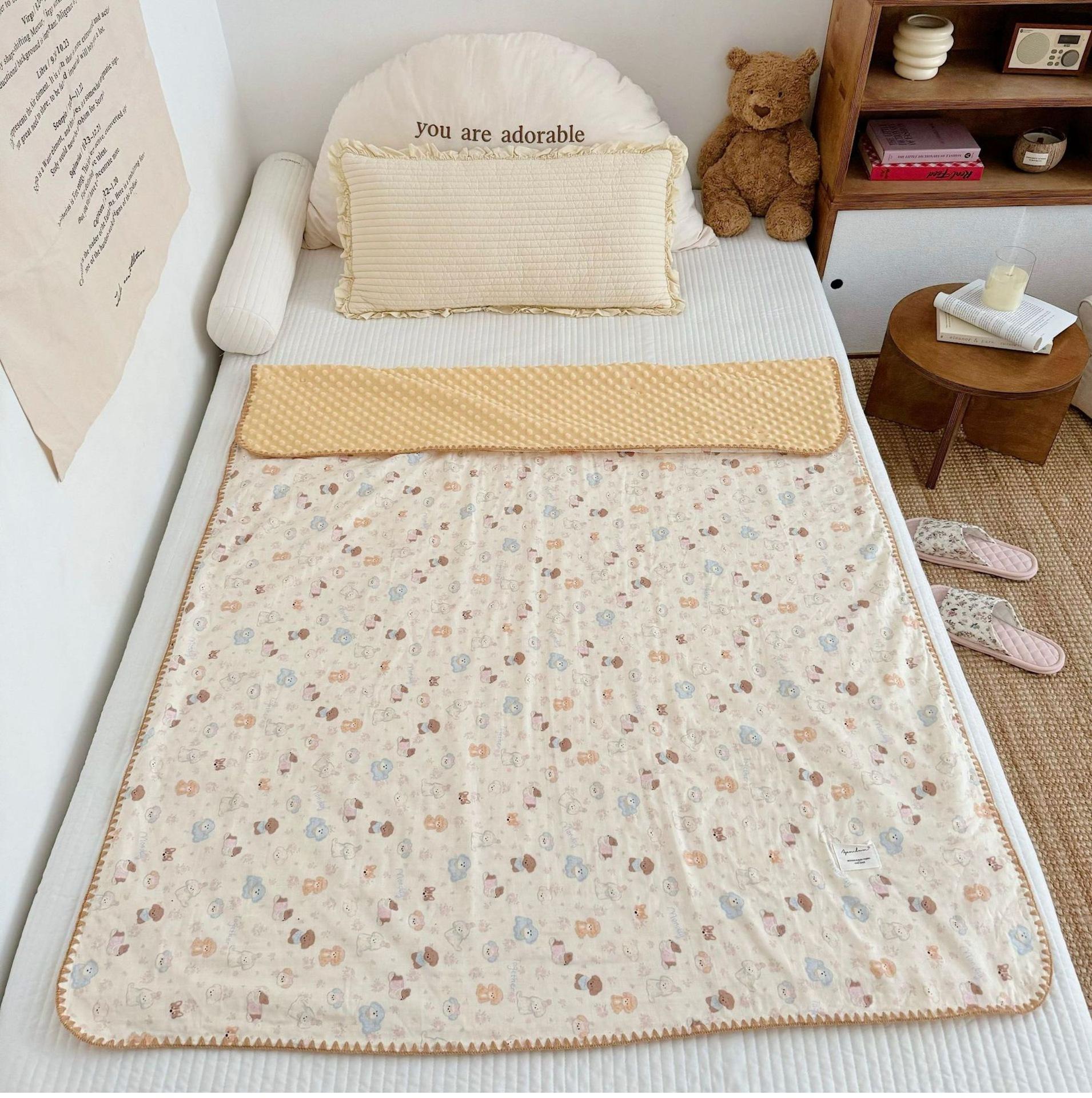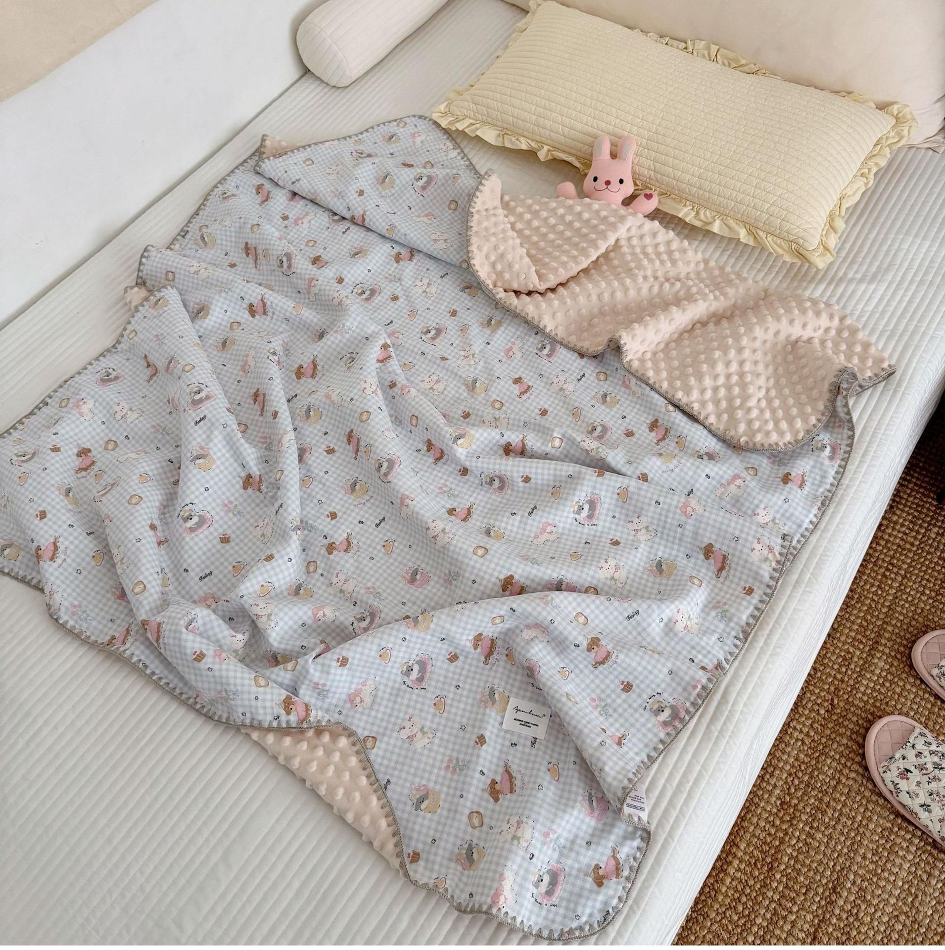 Manta de Frijol de Hilo Doble Capa de Algodón Ins para Niños de Dibujos Animados Manta de Algodón para las Cuatro Estaciones Manta para la Siesta de Oficina