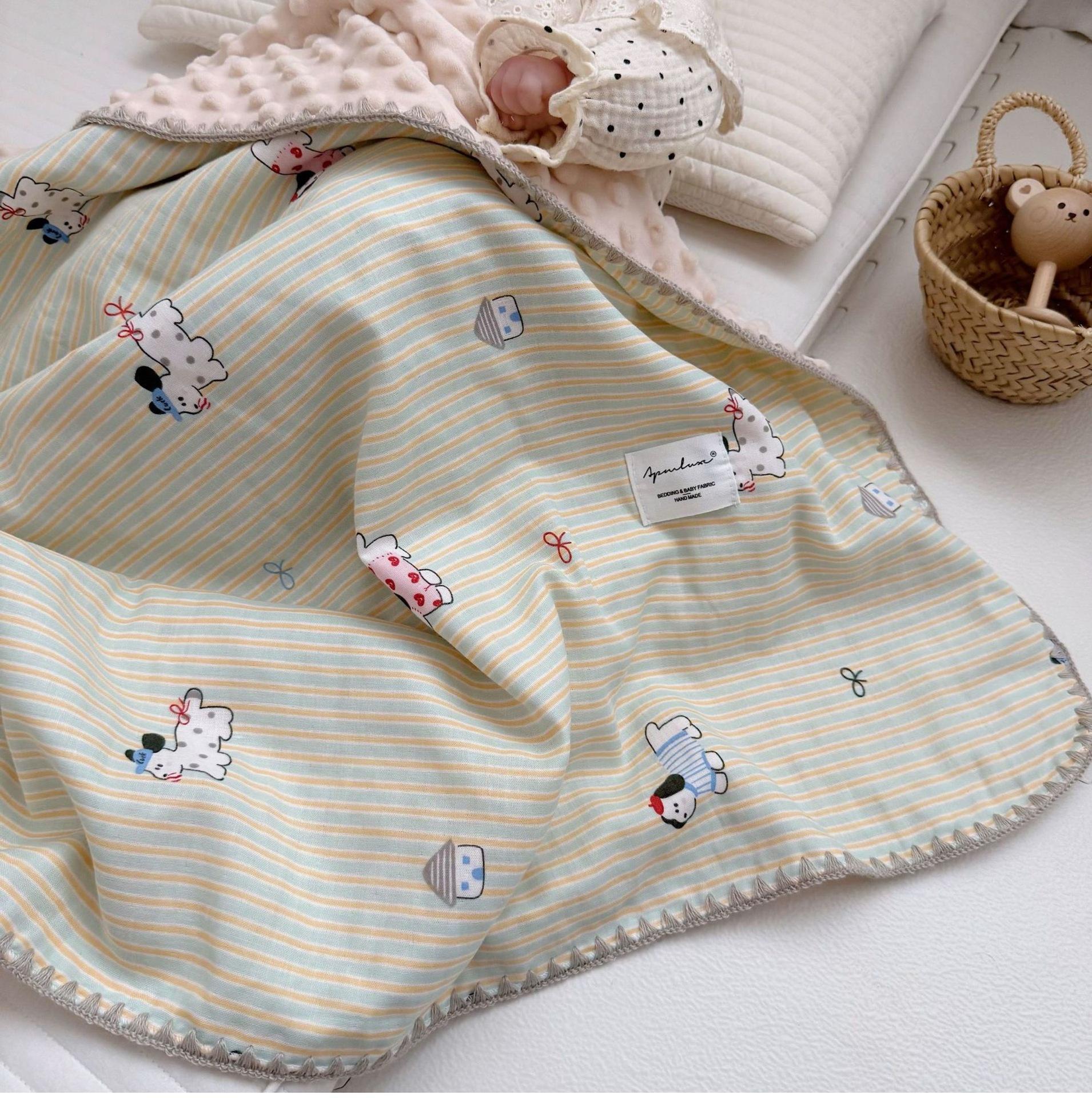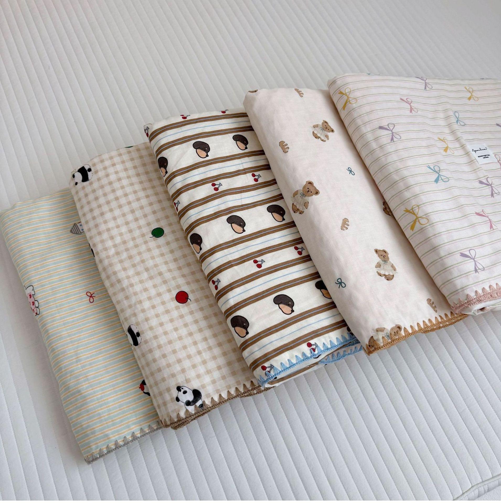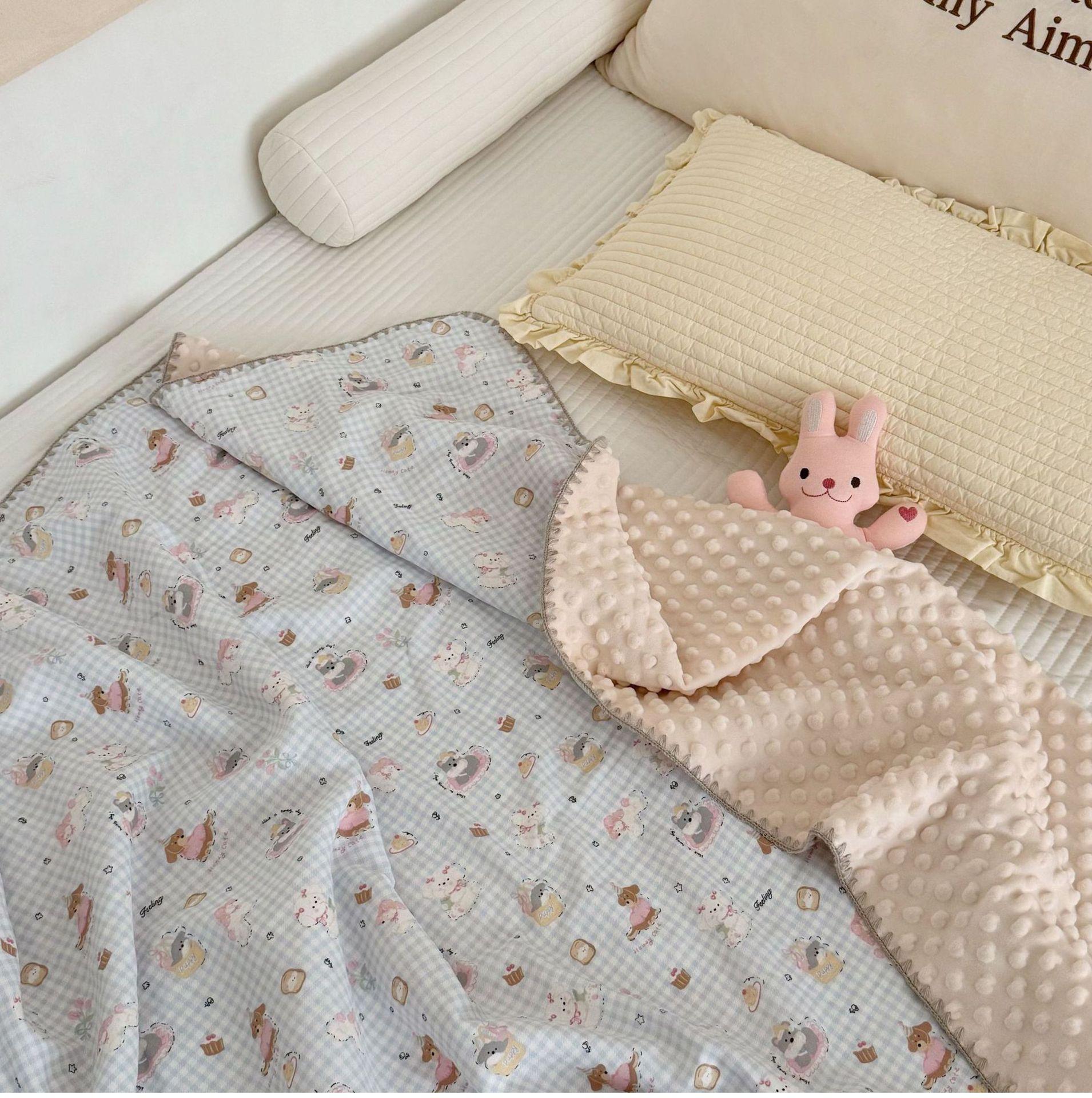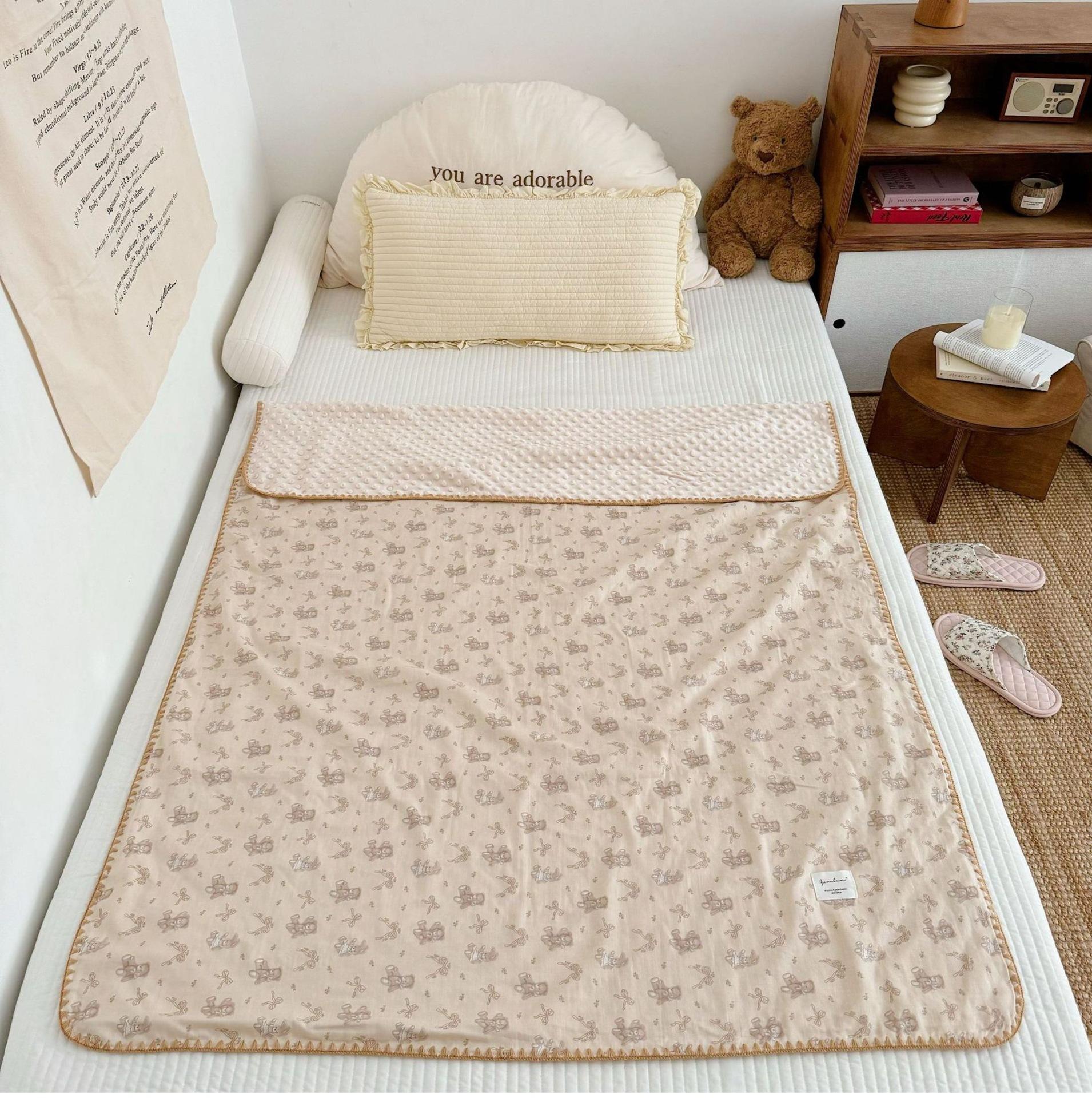 Manta de Frijol de Hilo Doble Capa de Algodón Ins para Niños de Dibujos Animados Manta de Algodón para las Cuatro Estaciones Manta para la Siesta de Oficina