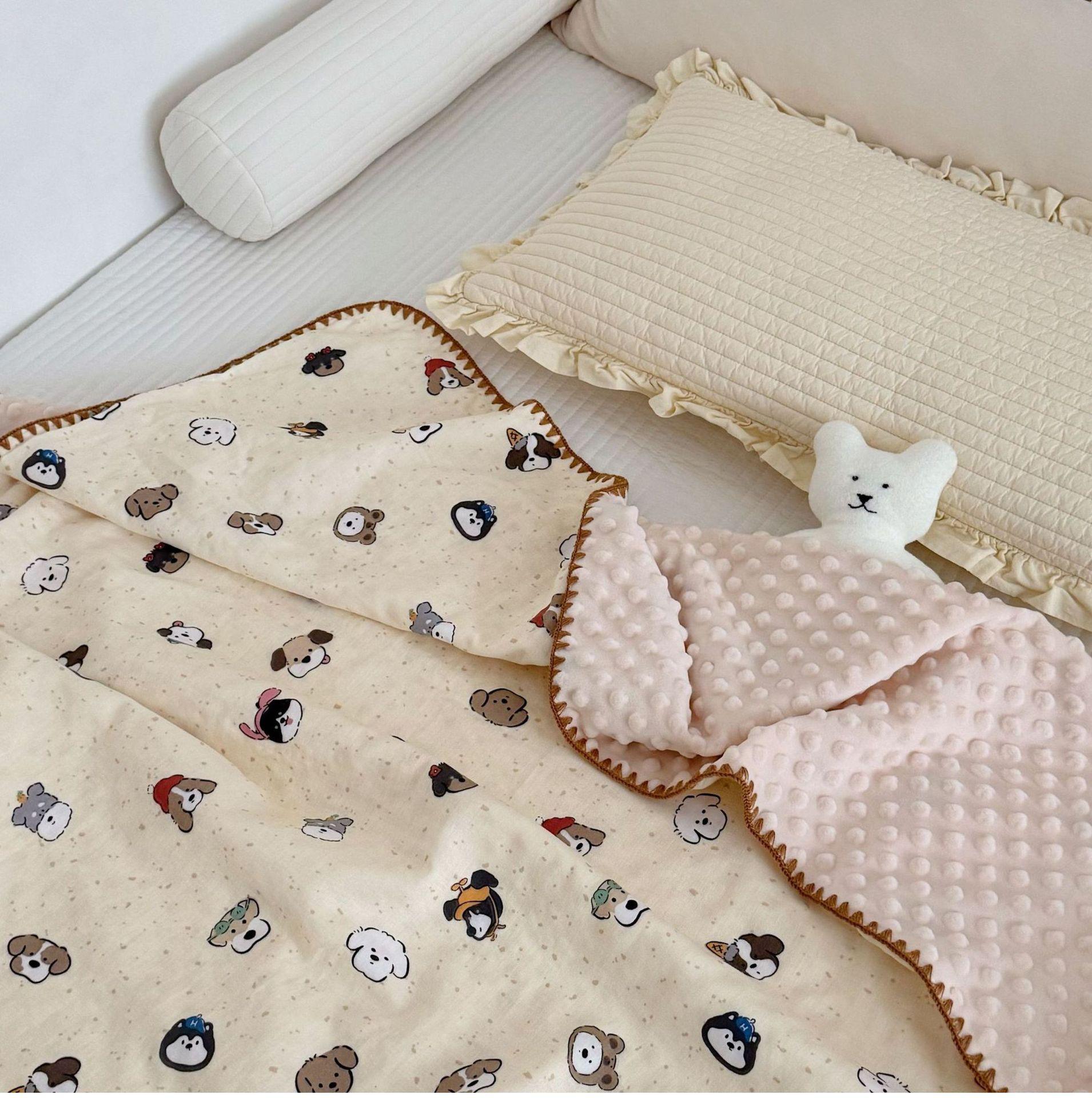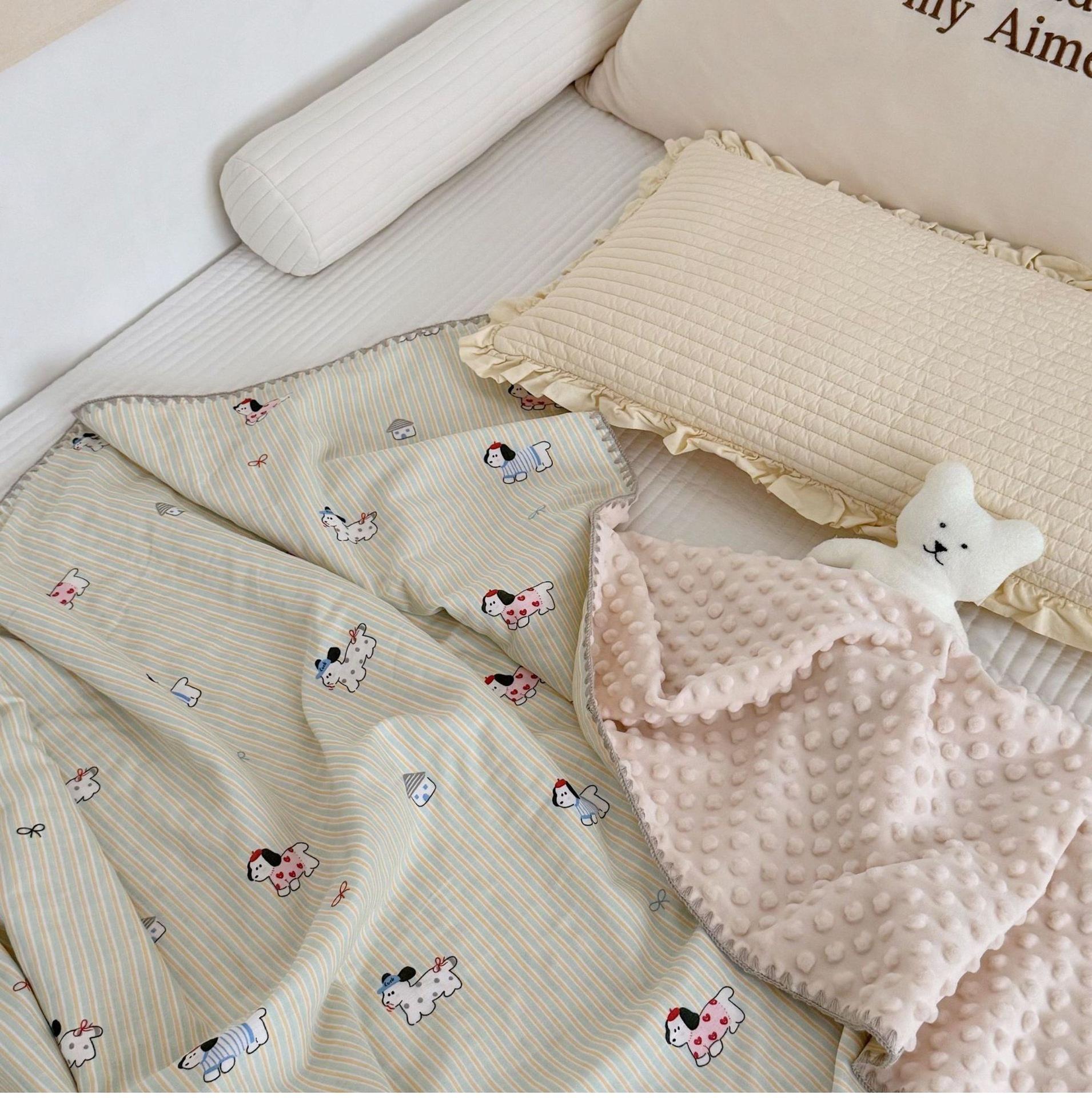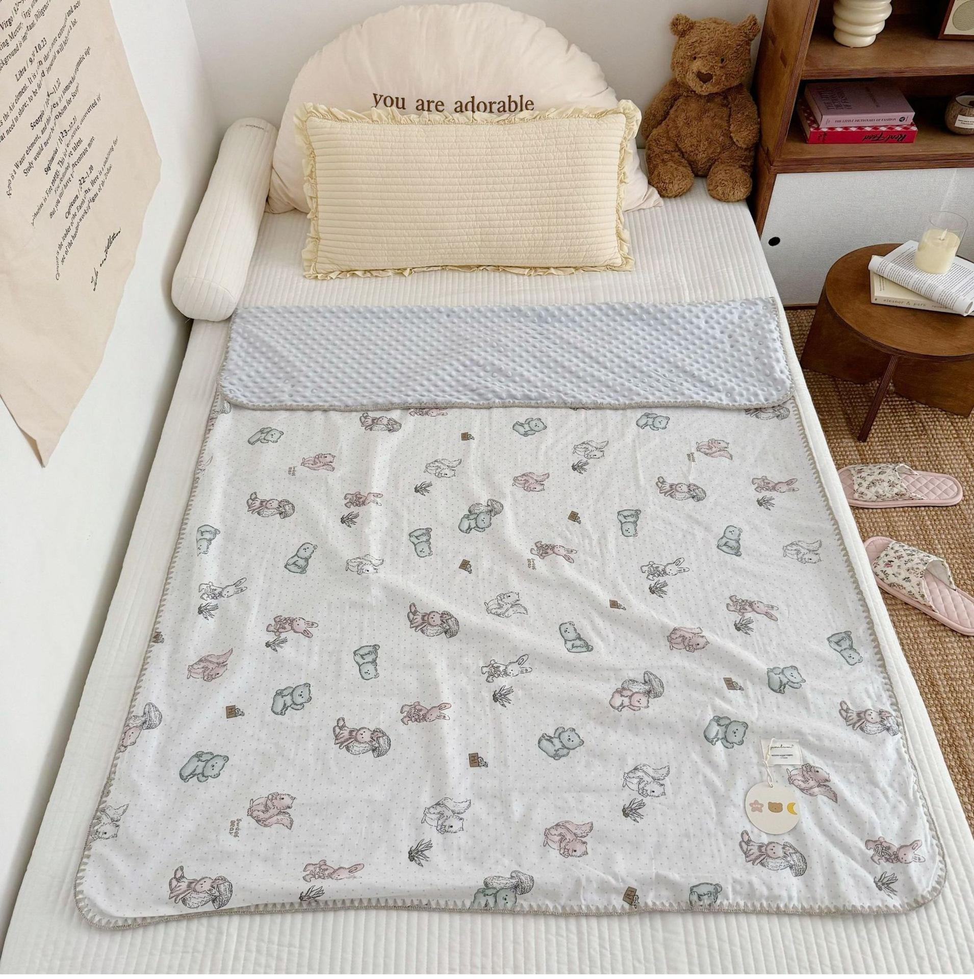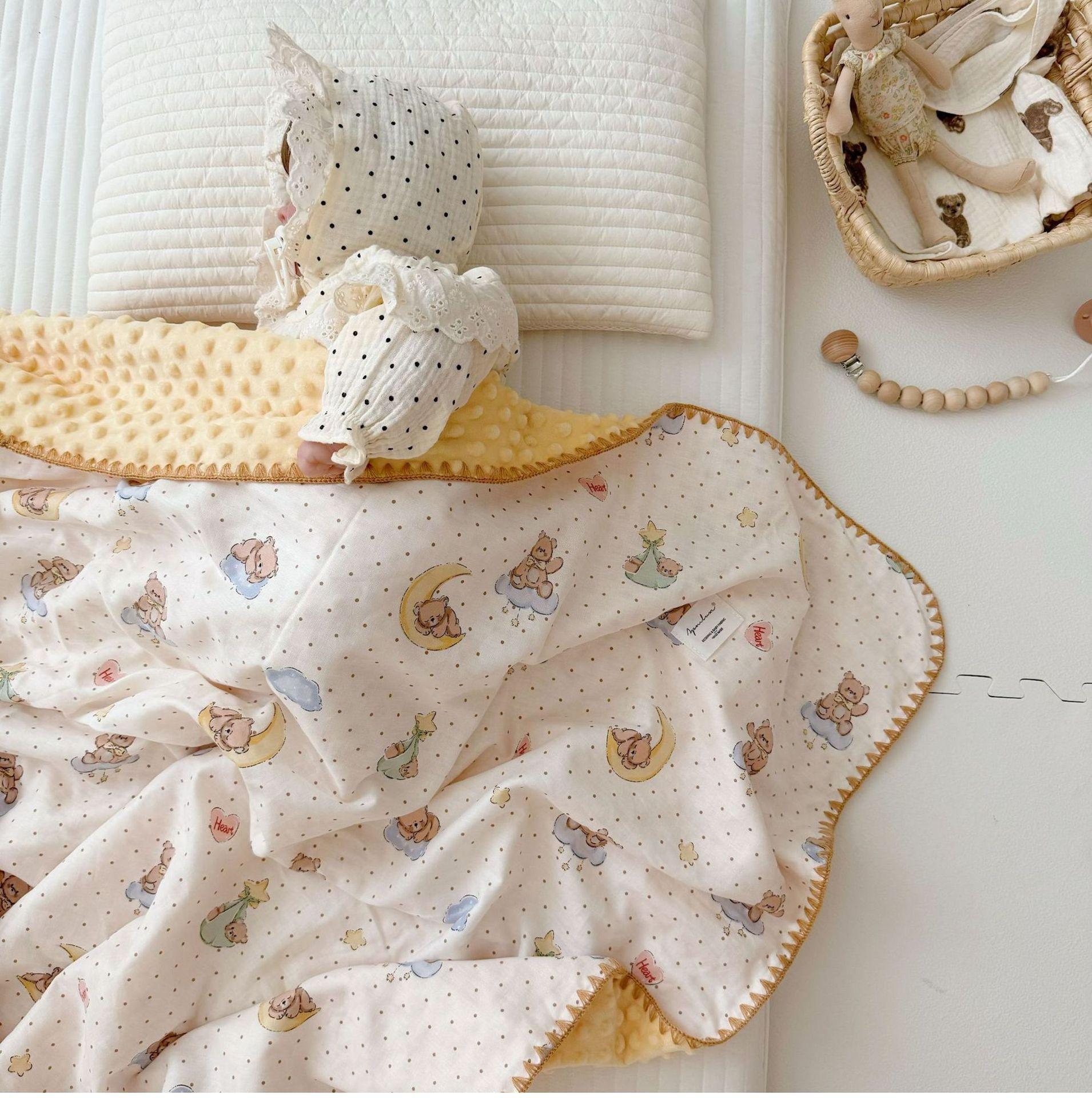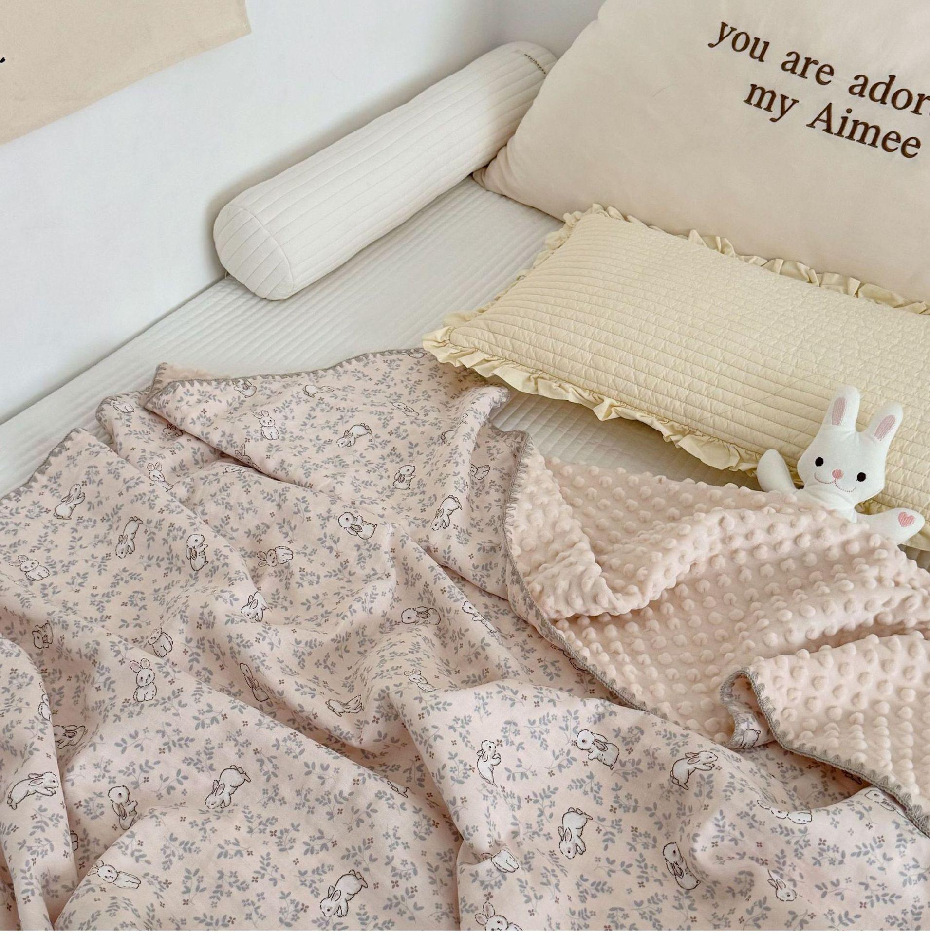 Manta de Frijol de Hilo Doble Capa de Algodón Ins para Niños de Dibujos Animados Manta de Algodón para las Cuatro Estaciones Manta para la Siesta de Oficina