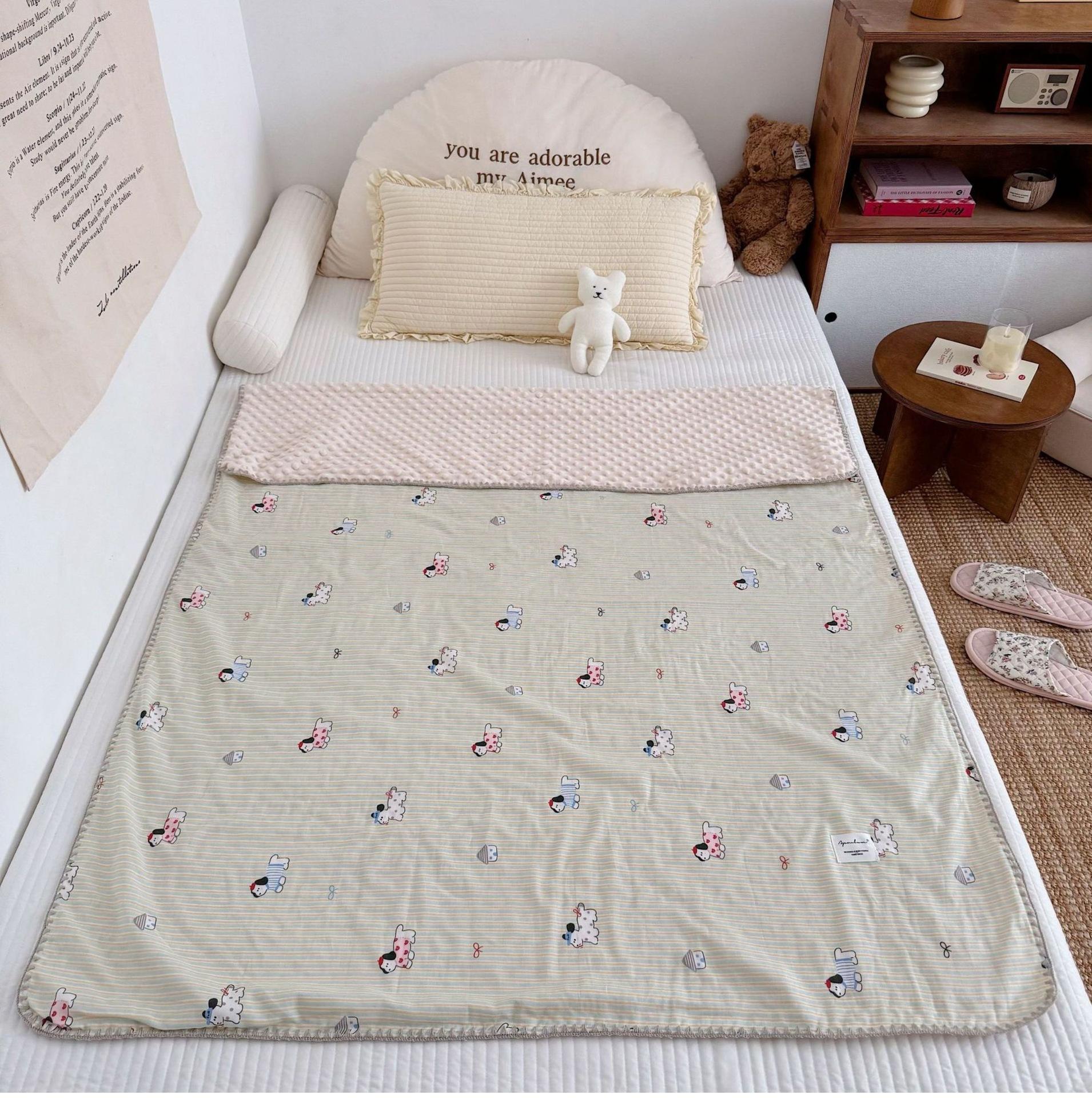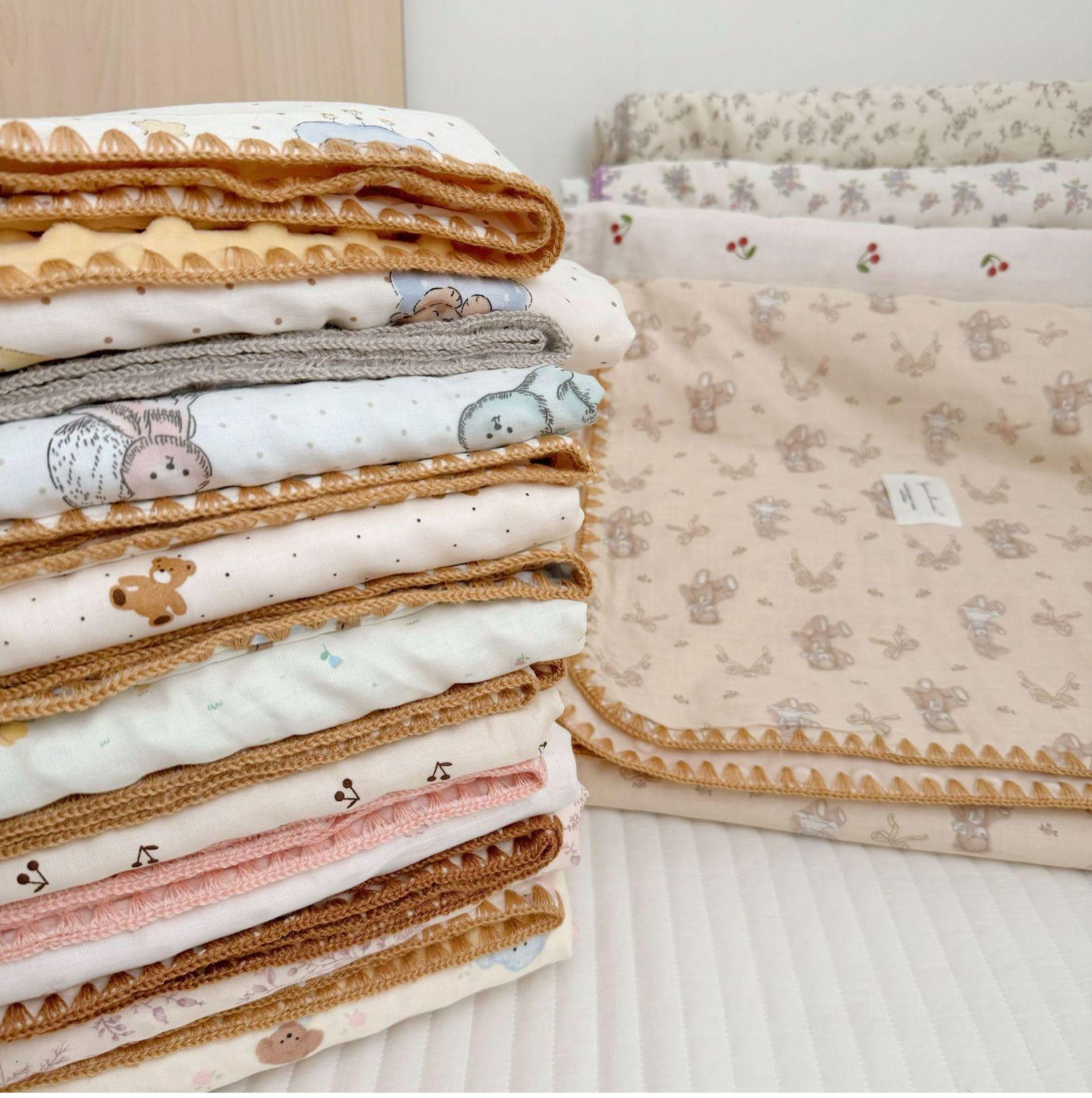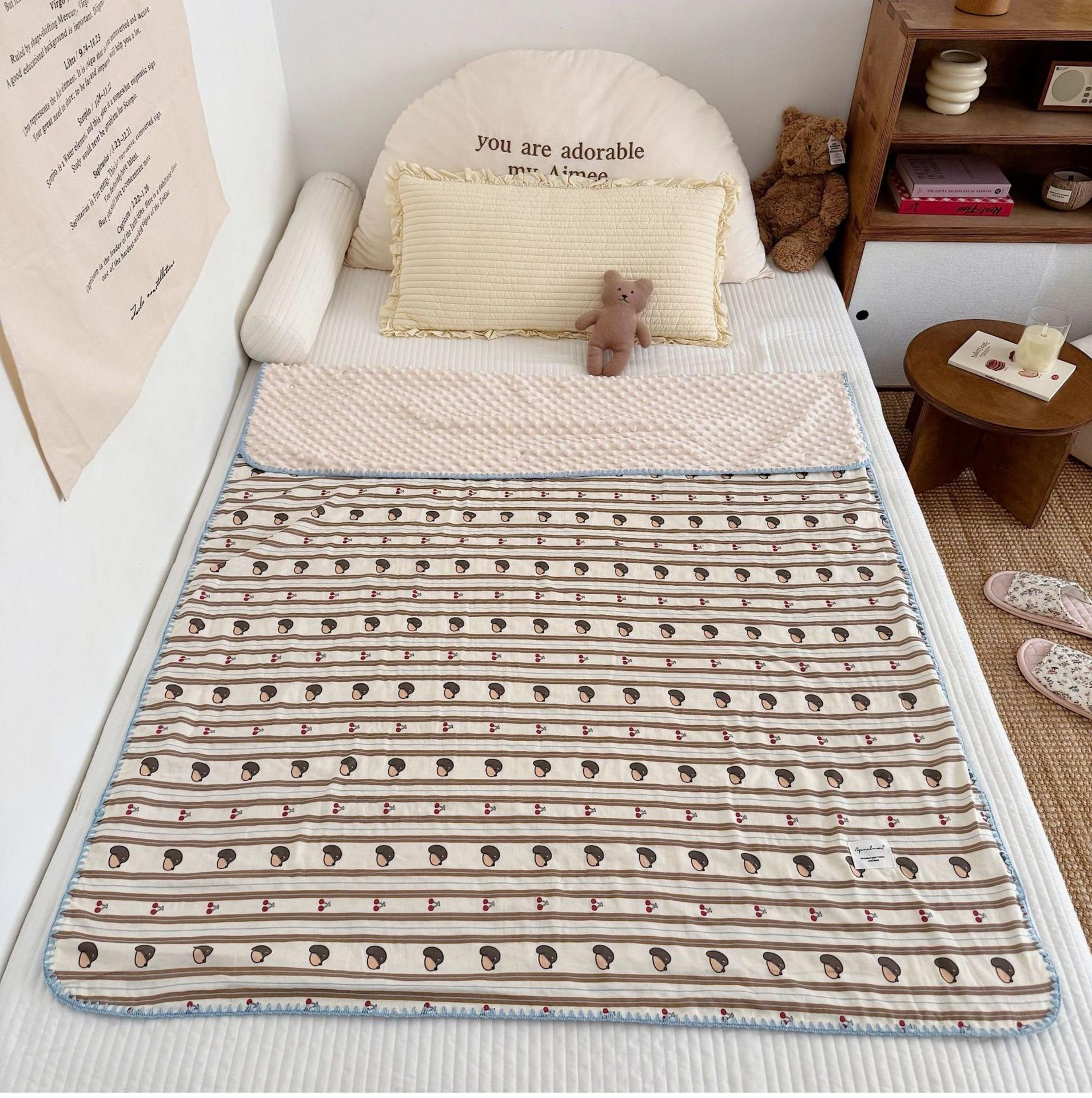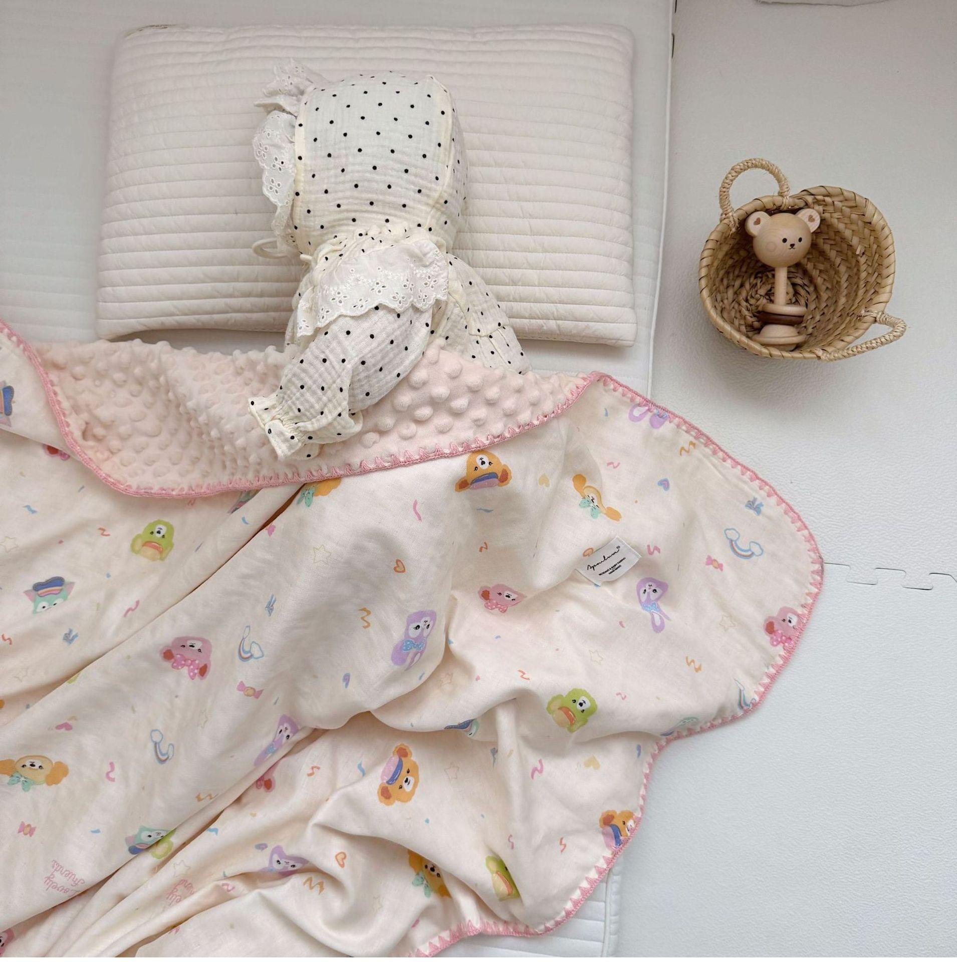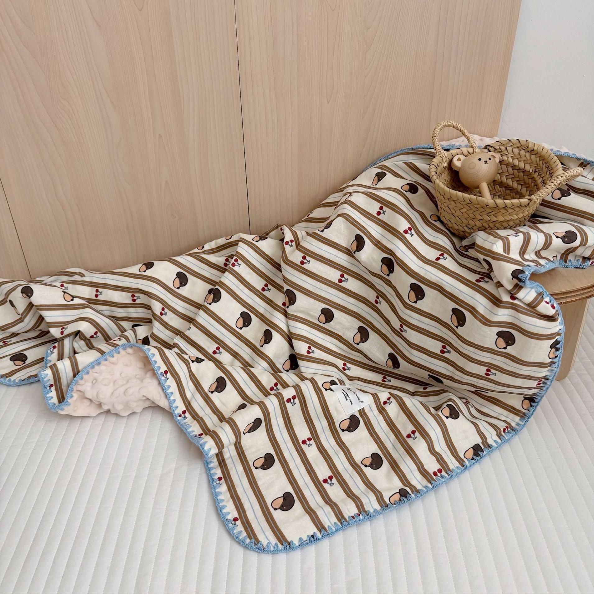 Manta de Frijol de Hilo Doble Capa de Algodón Ins para Niños de Dibujos Animados Manta de Algodón para las Cuatro Estaciones Manta para la Siesta de Oficina
