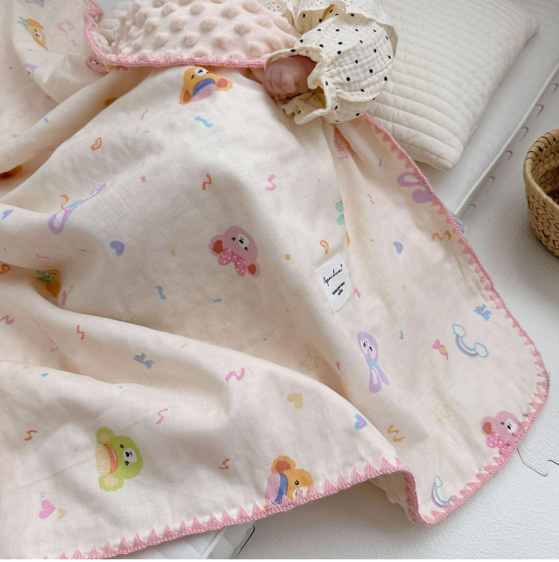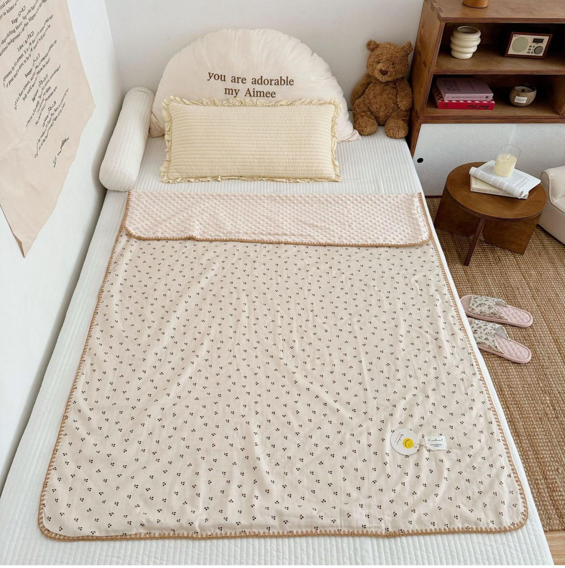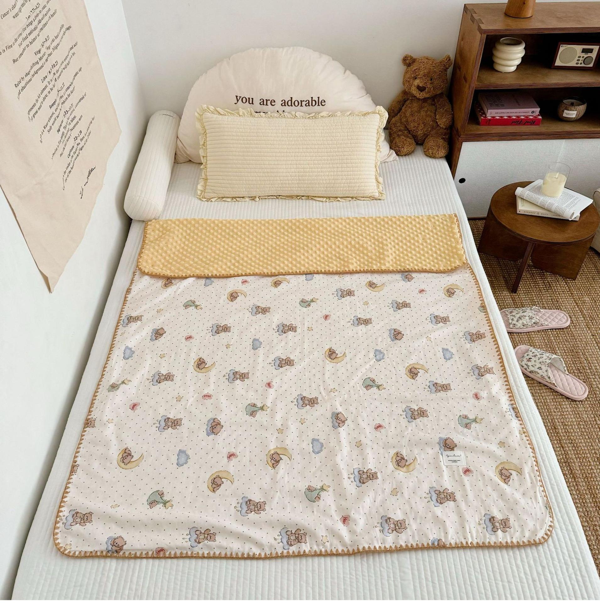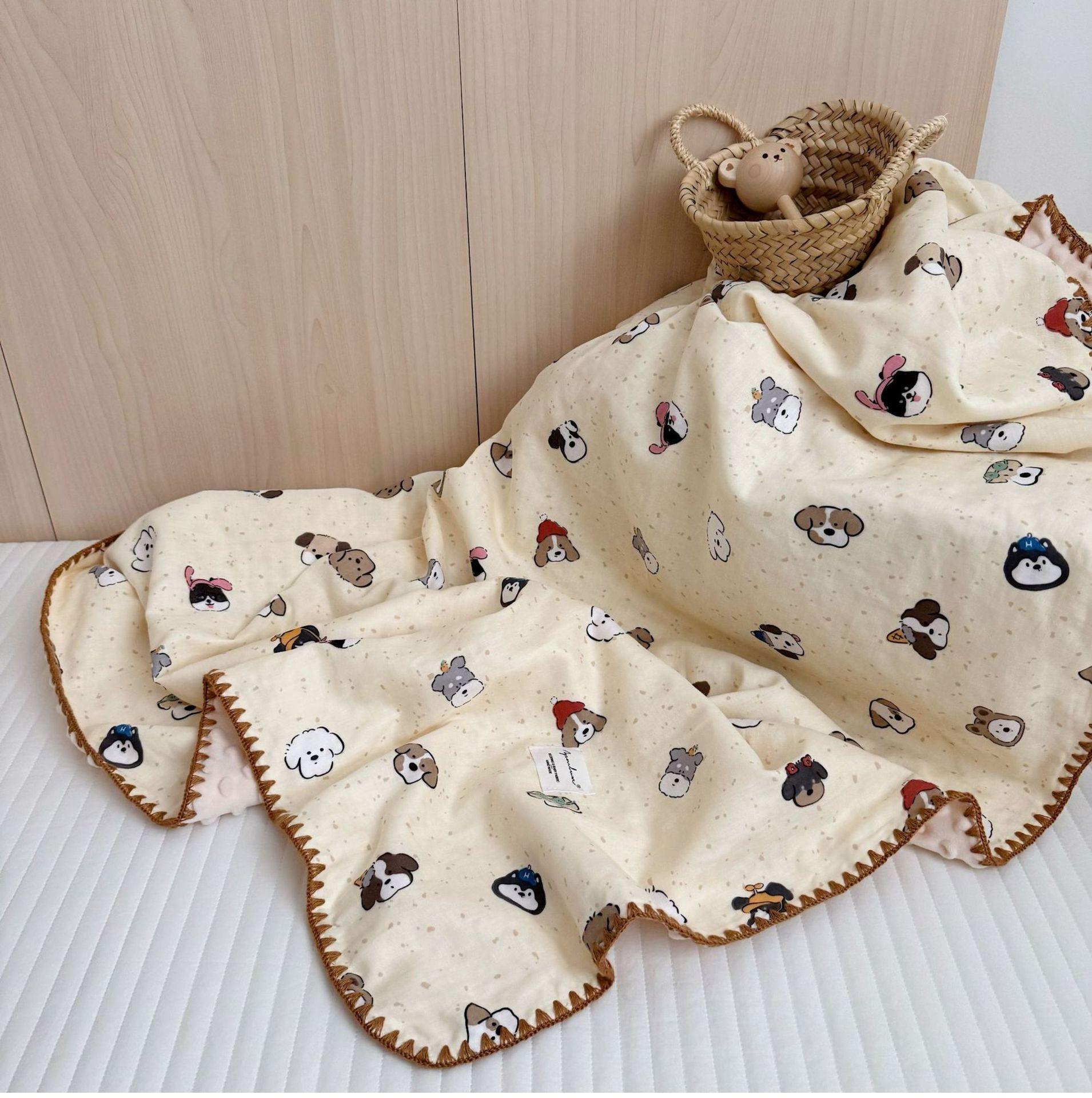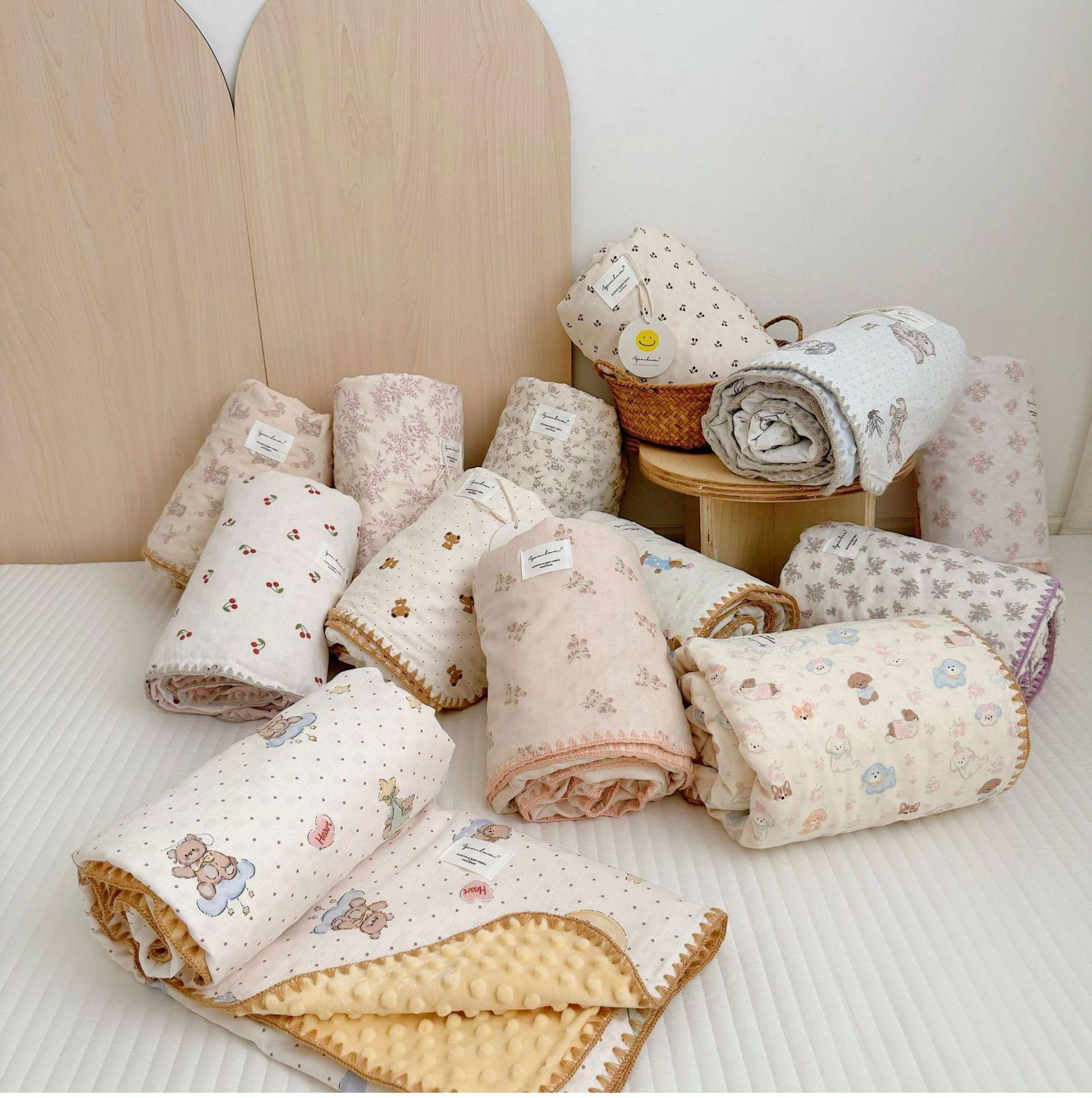 Manta de Frijol de Hilo Doble Capa de Algodón Ins para Niños de Dibujos Animados Manta de Algodón para las Cuatro Estaciones Manta para la Siesta de Oficina