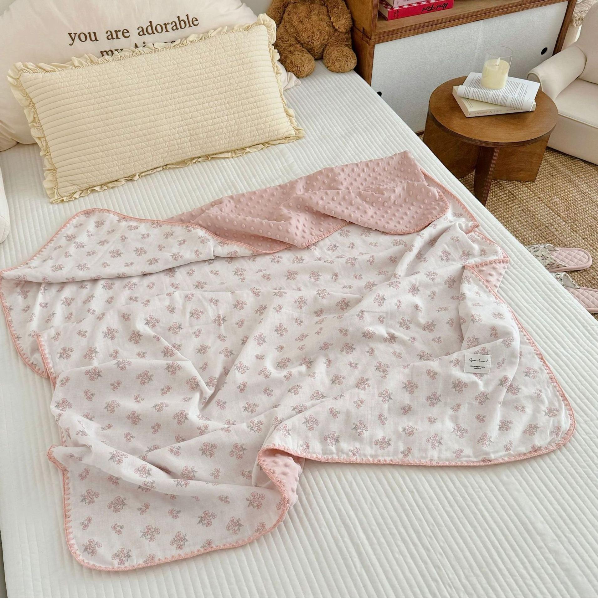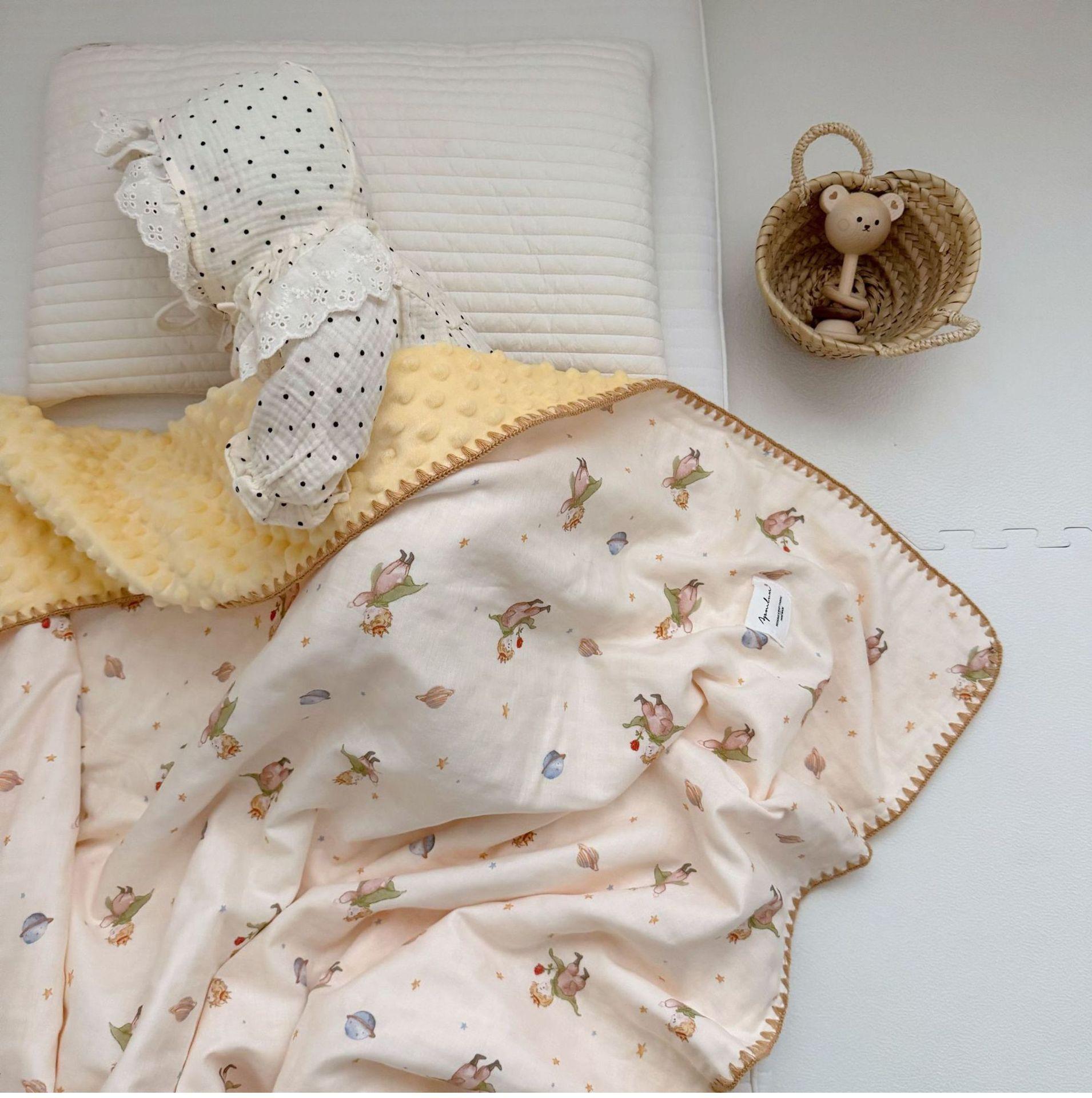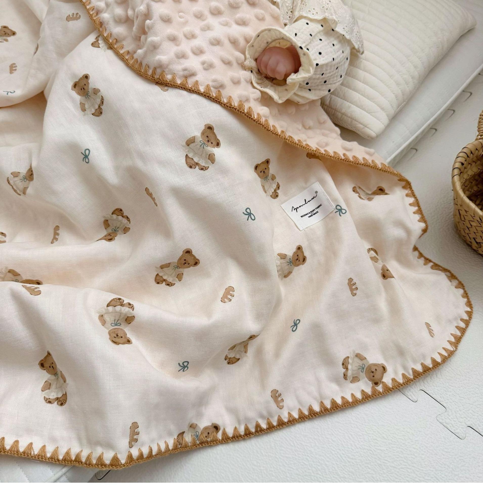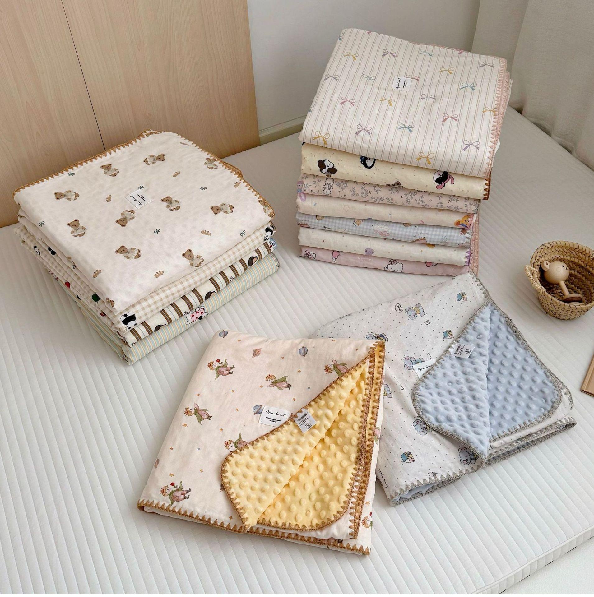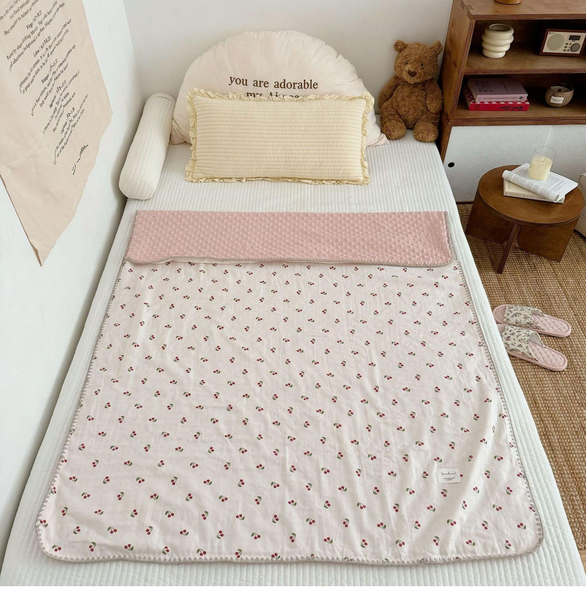 Manta de Frijol de Hilo Doble Capa de Algodón Ins para Niños de Dibujos Animados Manta de Algodón para las Cuatro Estaciones Manta para la Siesta de Oficina