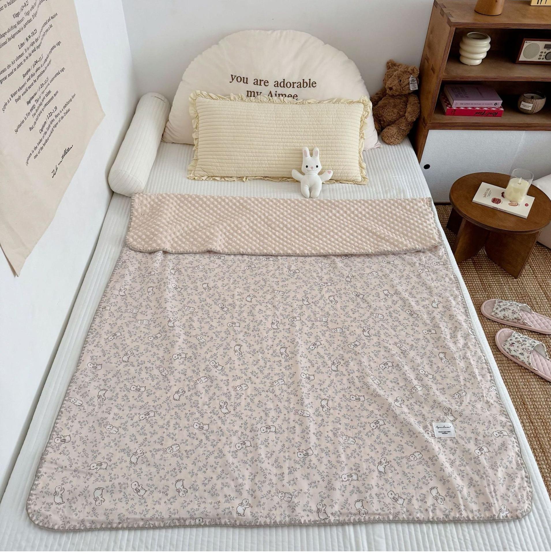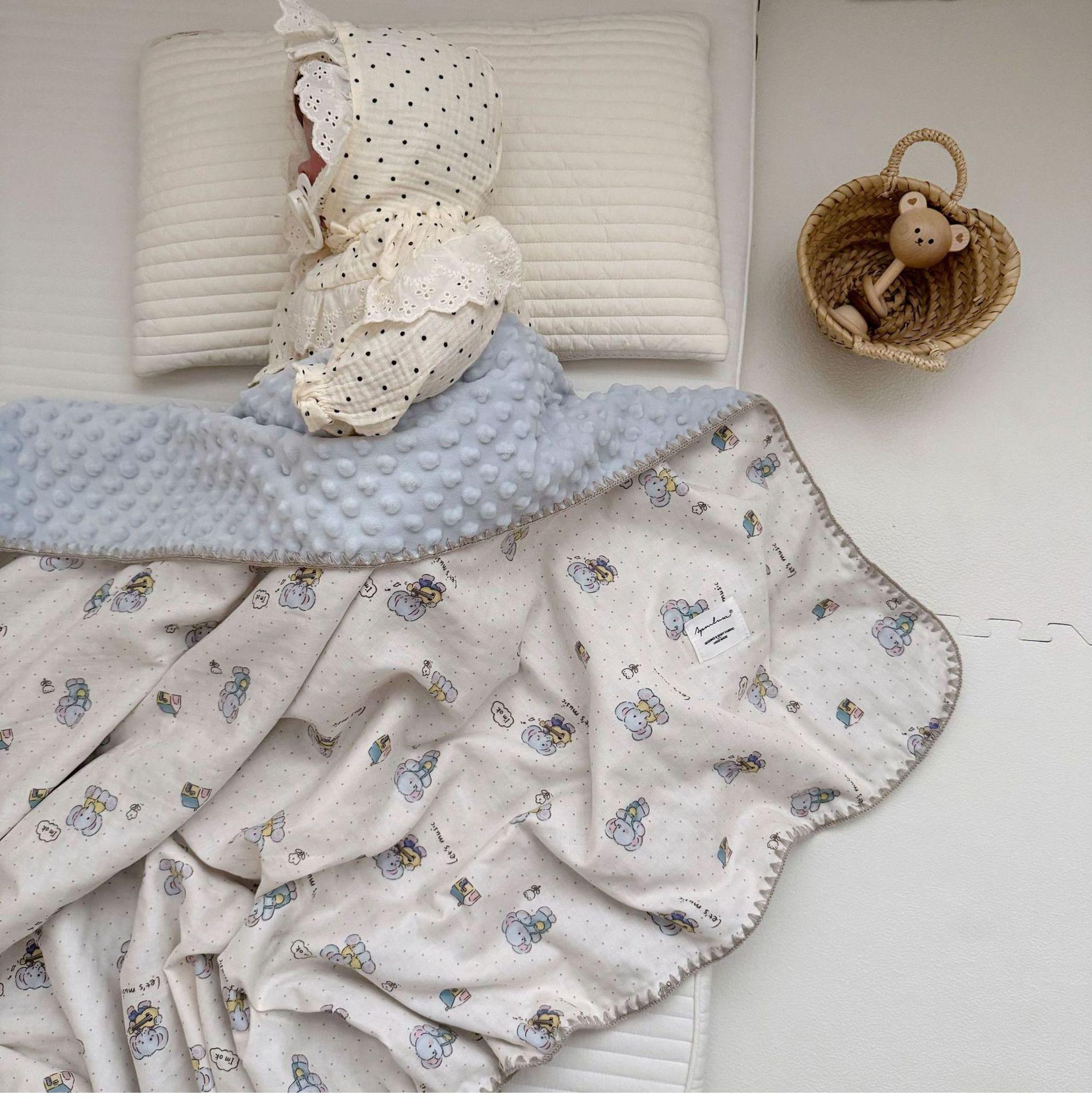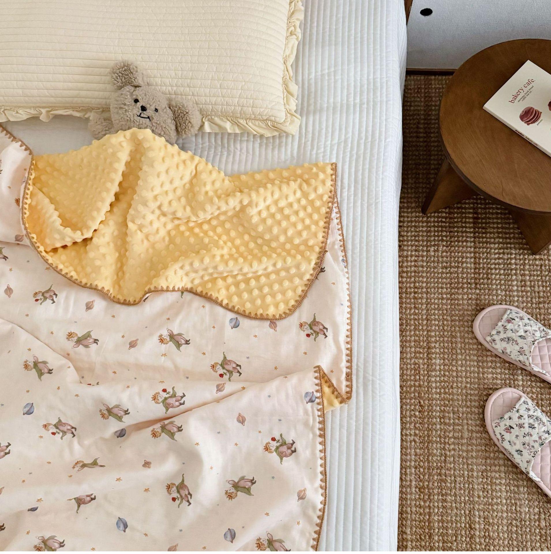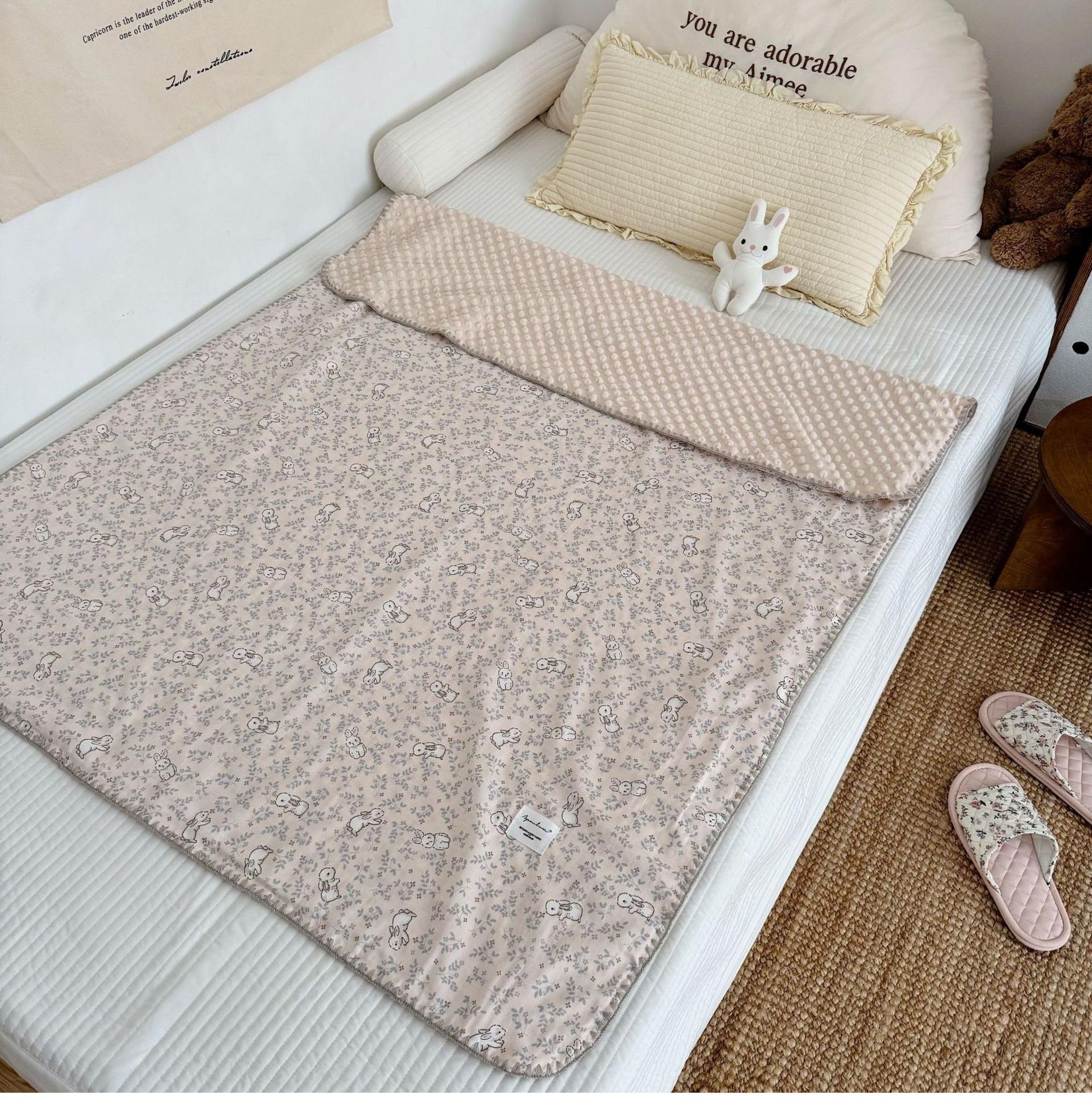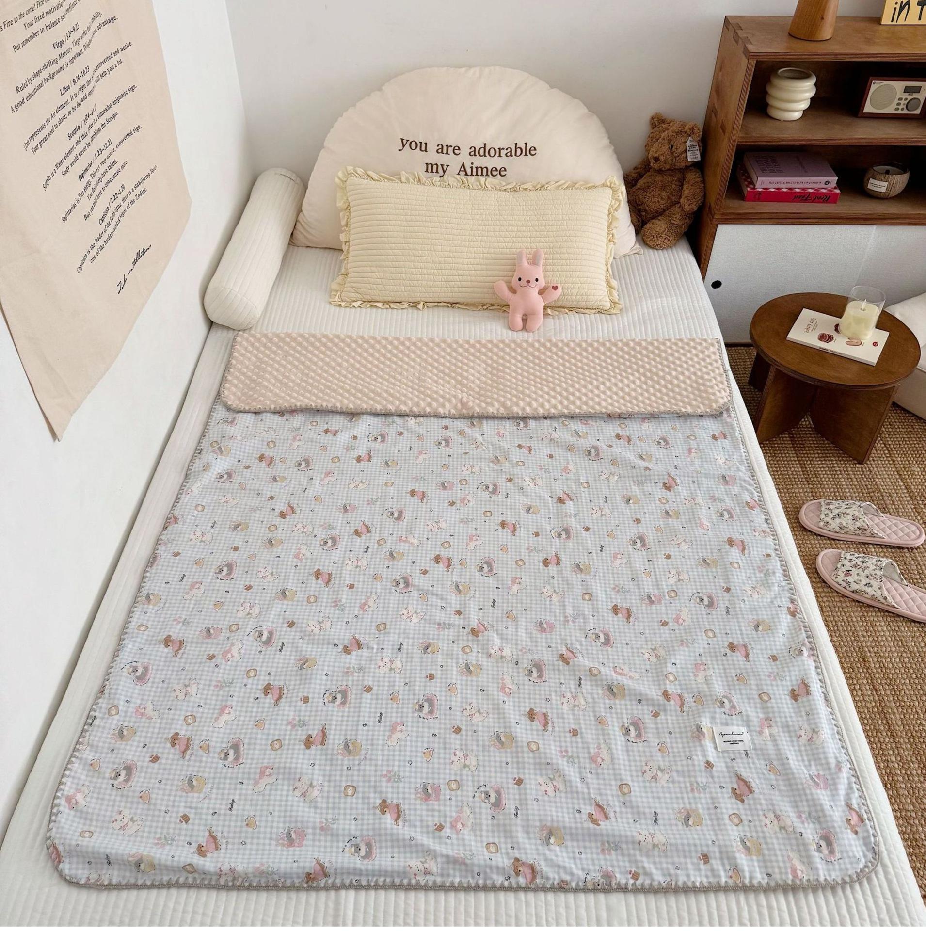 Manta de Frijol de Hilo Doble Capa de Algodón Ins para Niños de Dibujos Animados Manta de Algodón para las Cuatro Estaciones Manta para la Siesta de Oficina