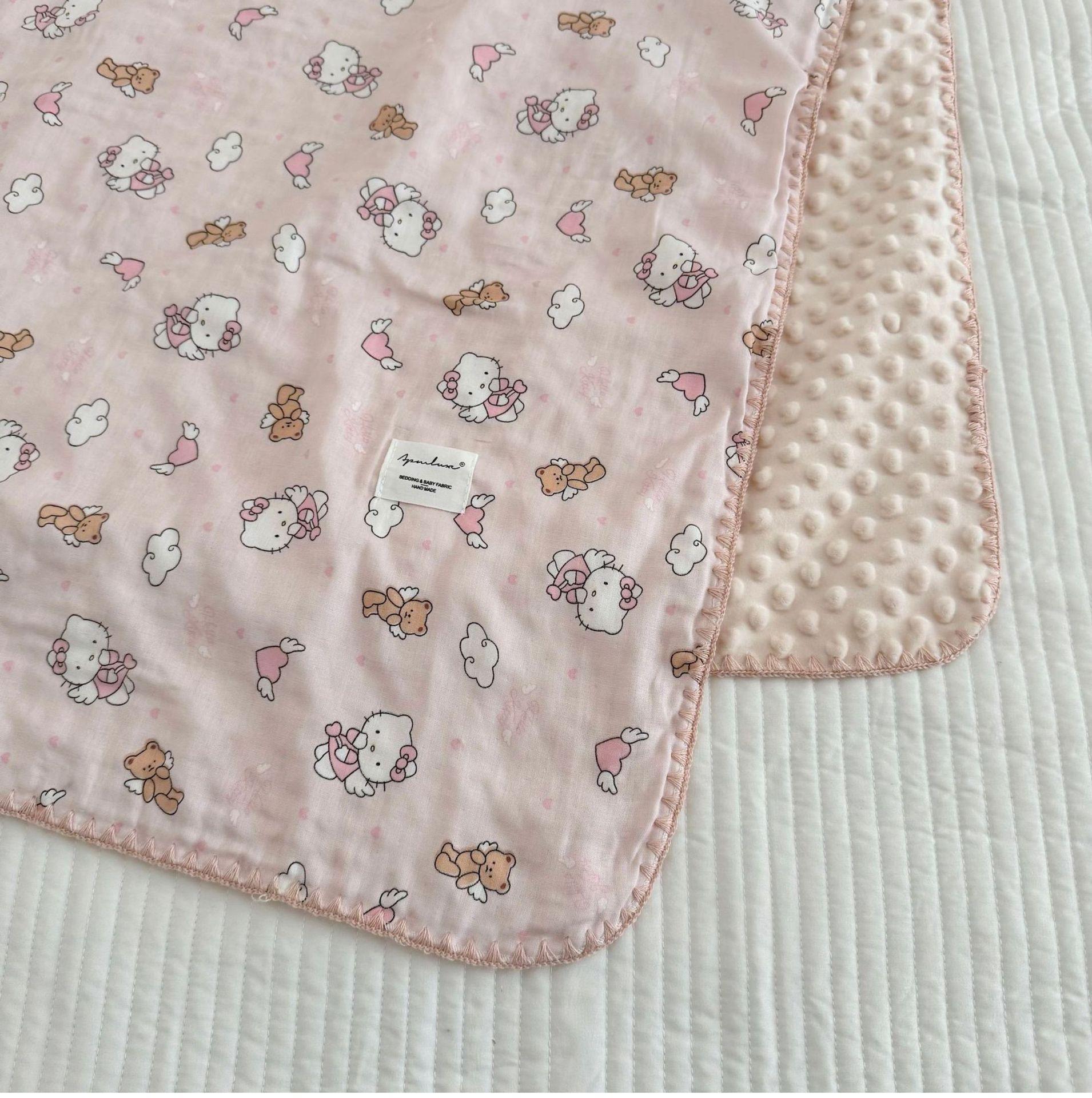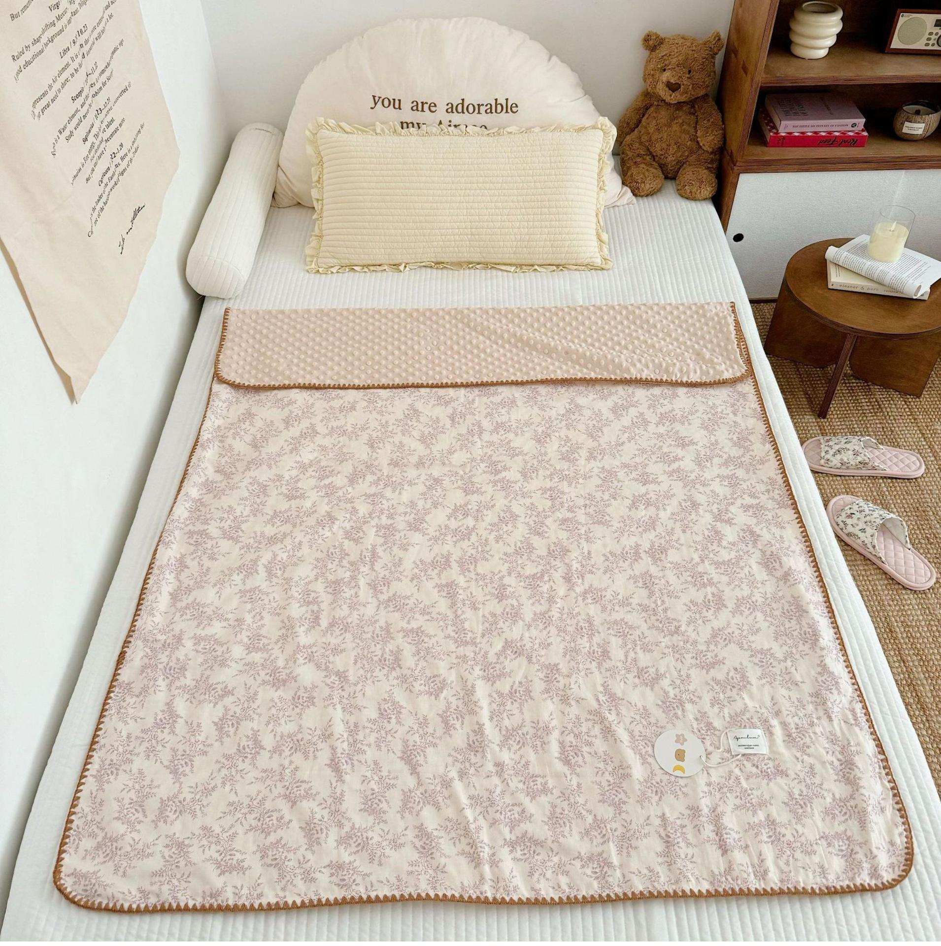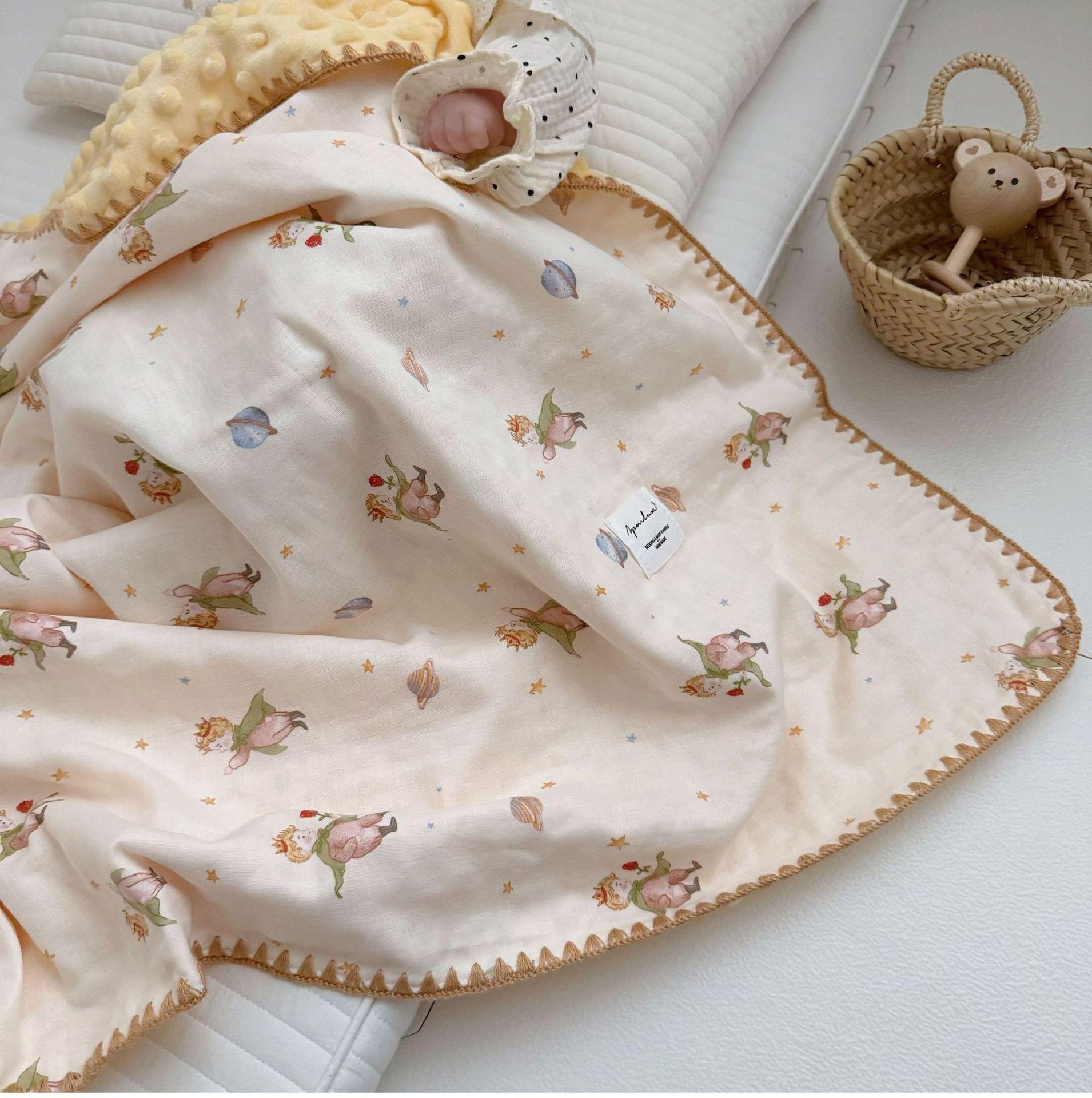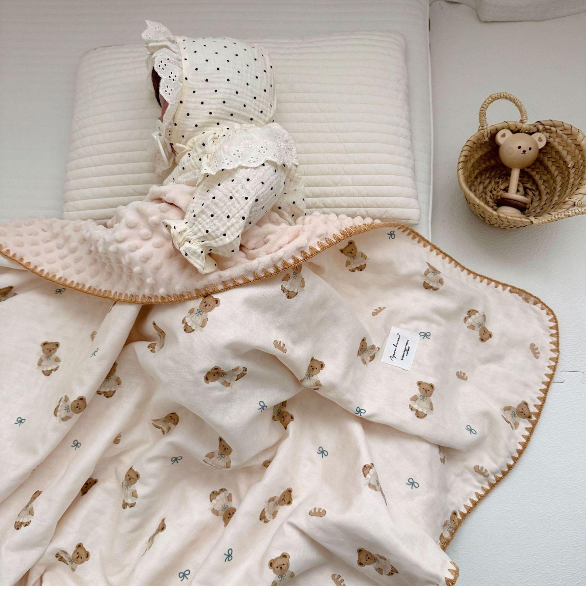 Manta de Frijol de Hilo Doble Capa de Algodón Ins para Niños de Dibujos Animados Manta de Algodón para las Cuatro Estaciones Manta para la Siesta de Oficina