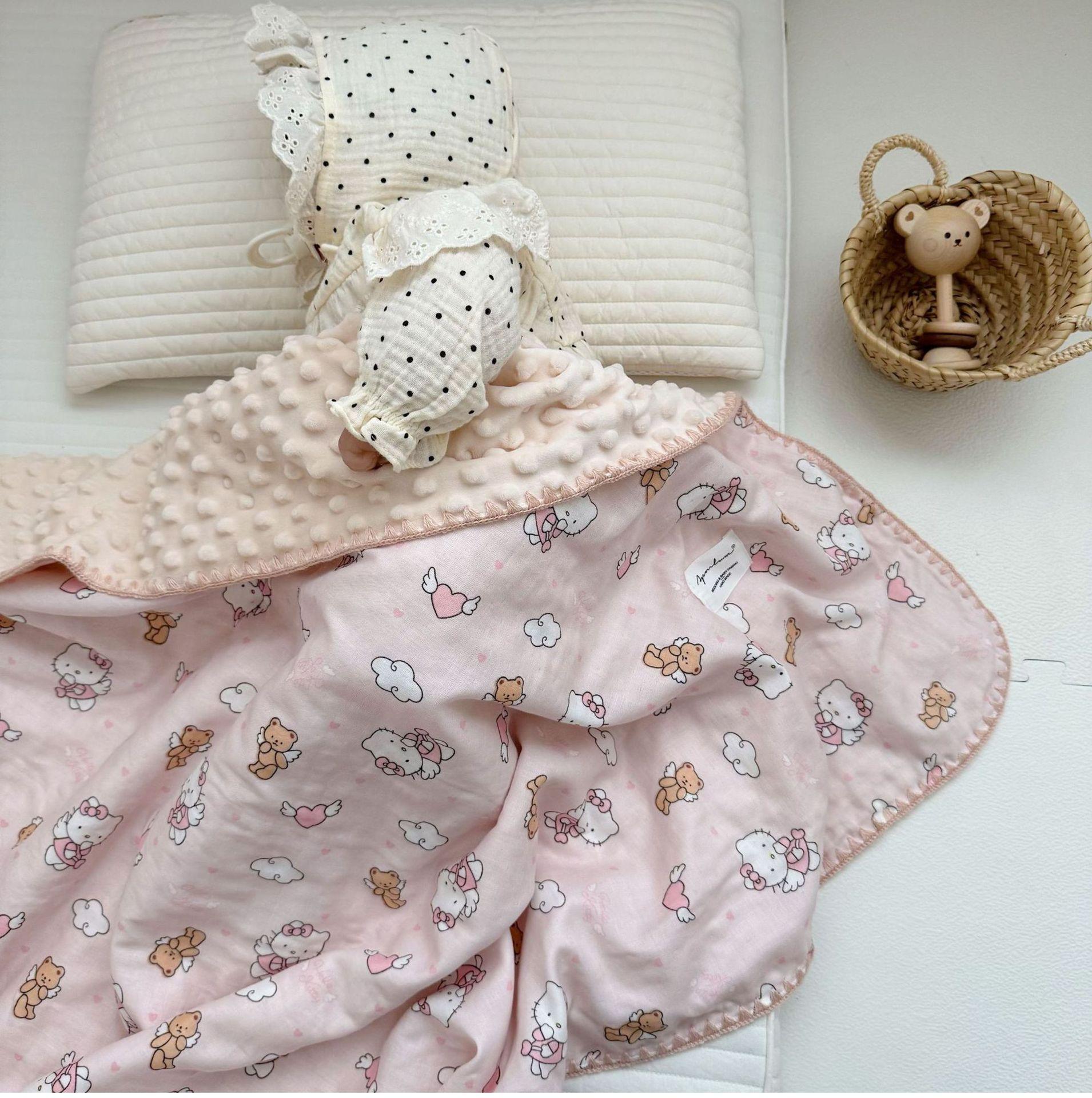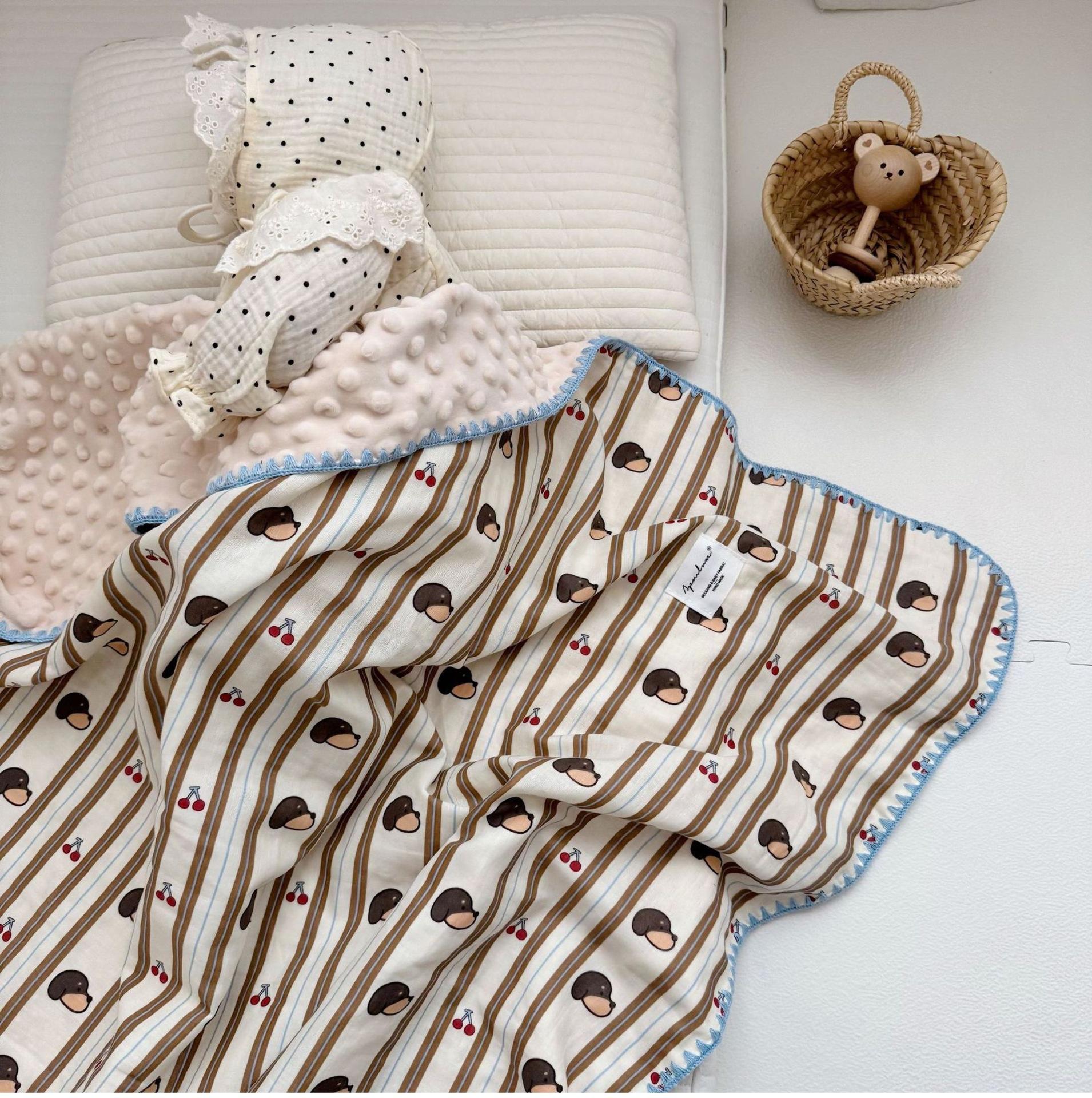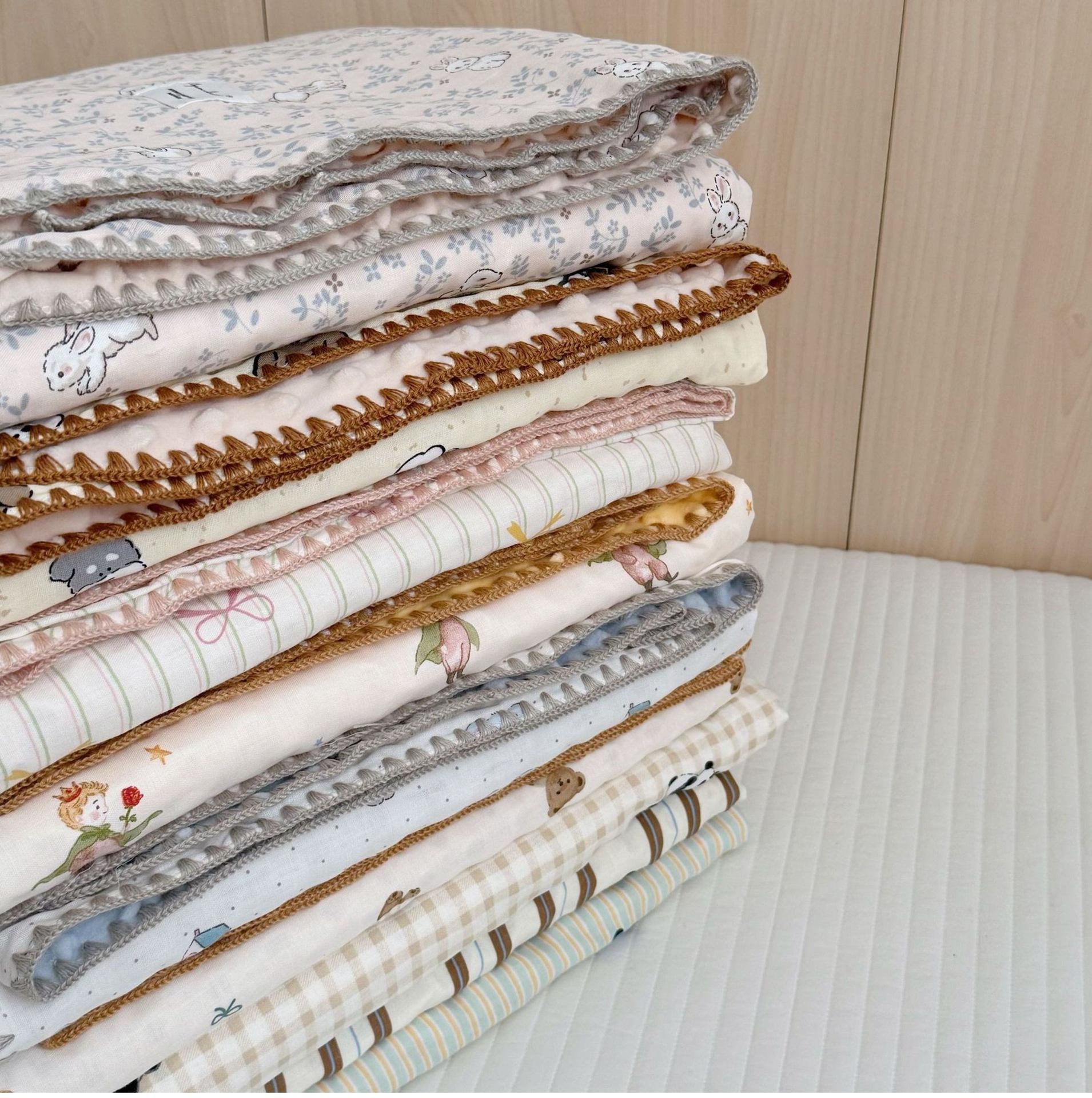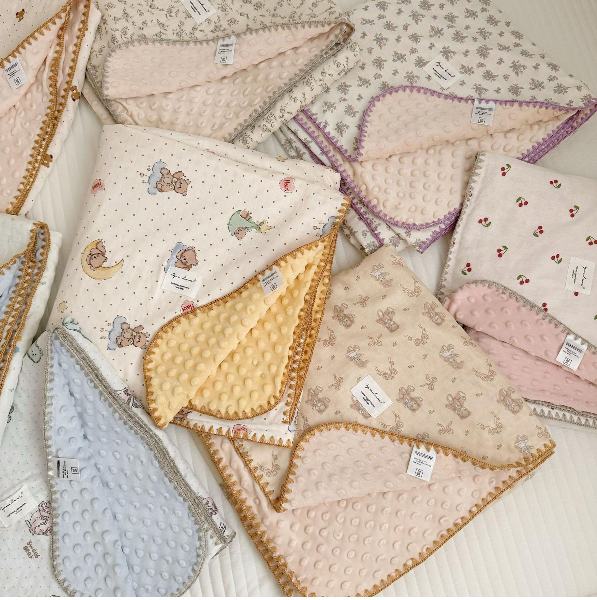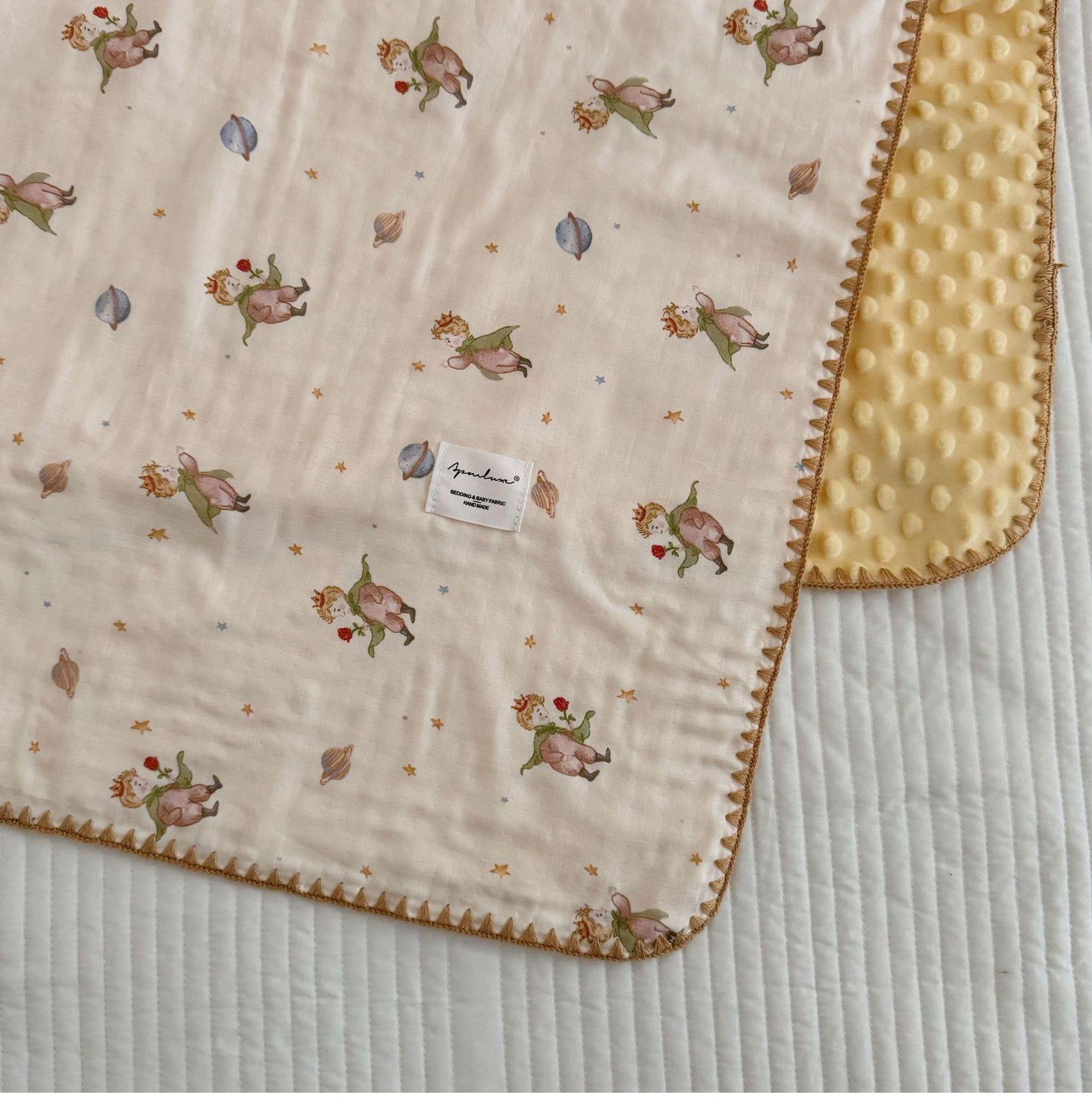Manta de Frijol de Hilo Doble Capa de Algodón Ins para Niños de Dibujos Animados Manta de Algodón para las Cuatro Estaciones Manta para la Siesta de Oficina
