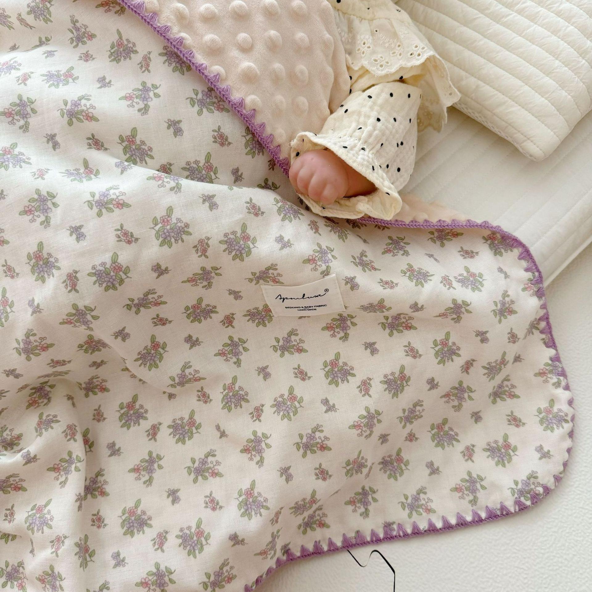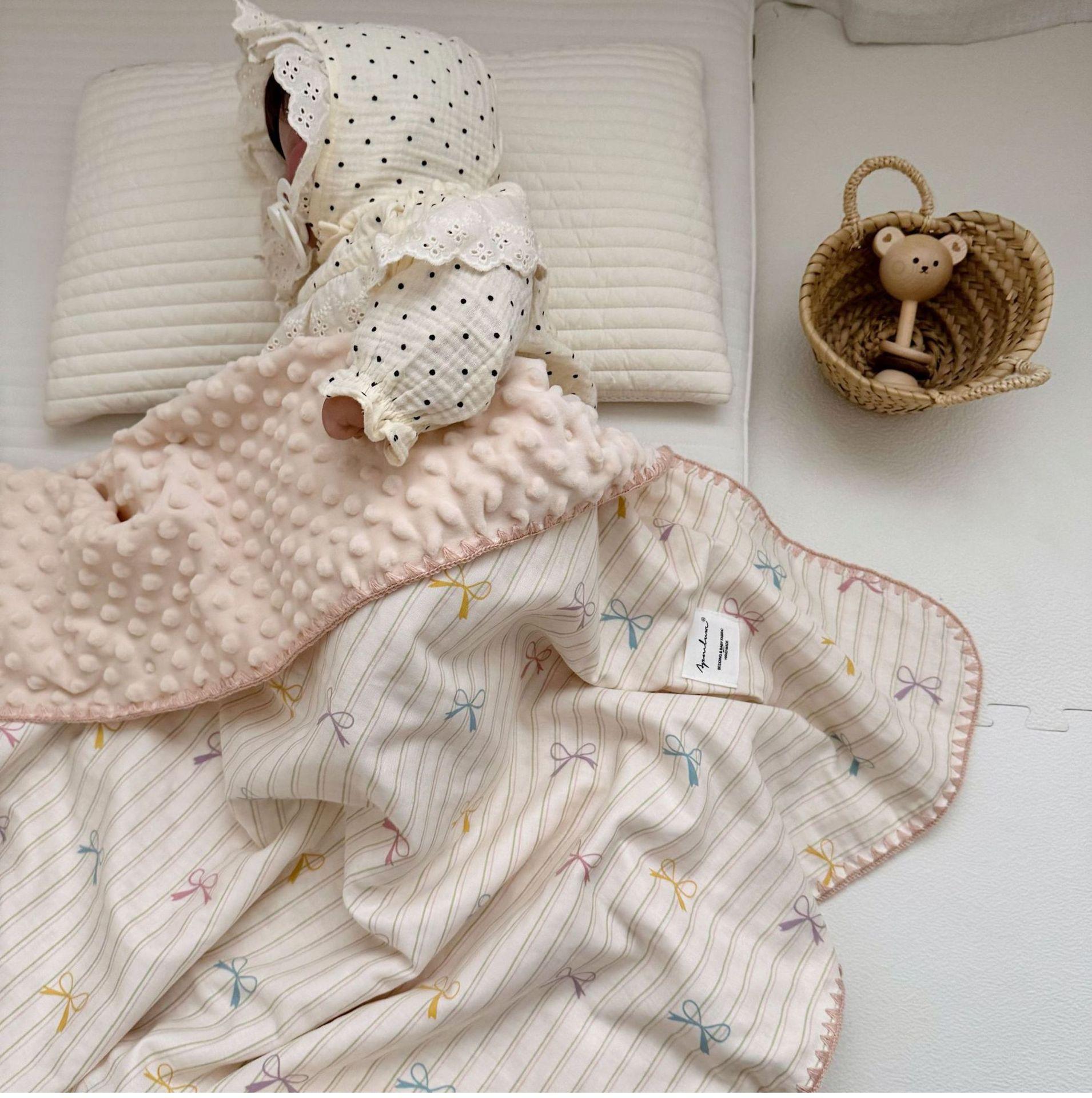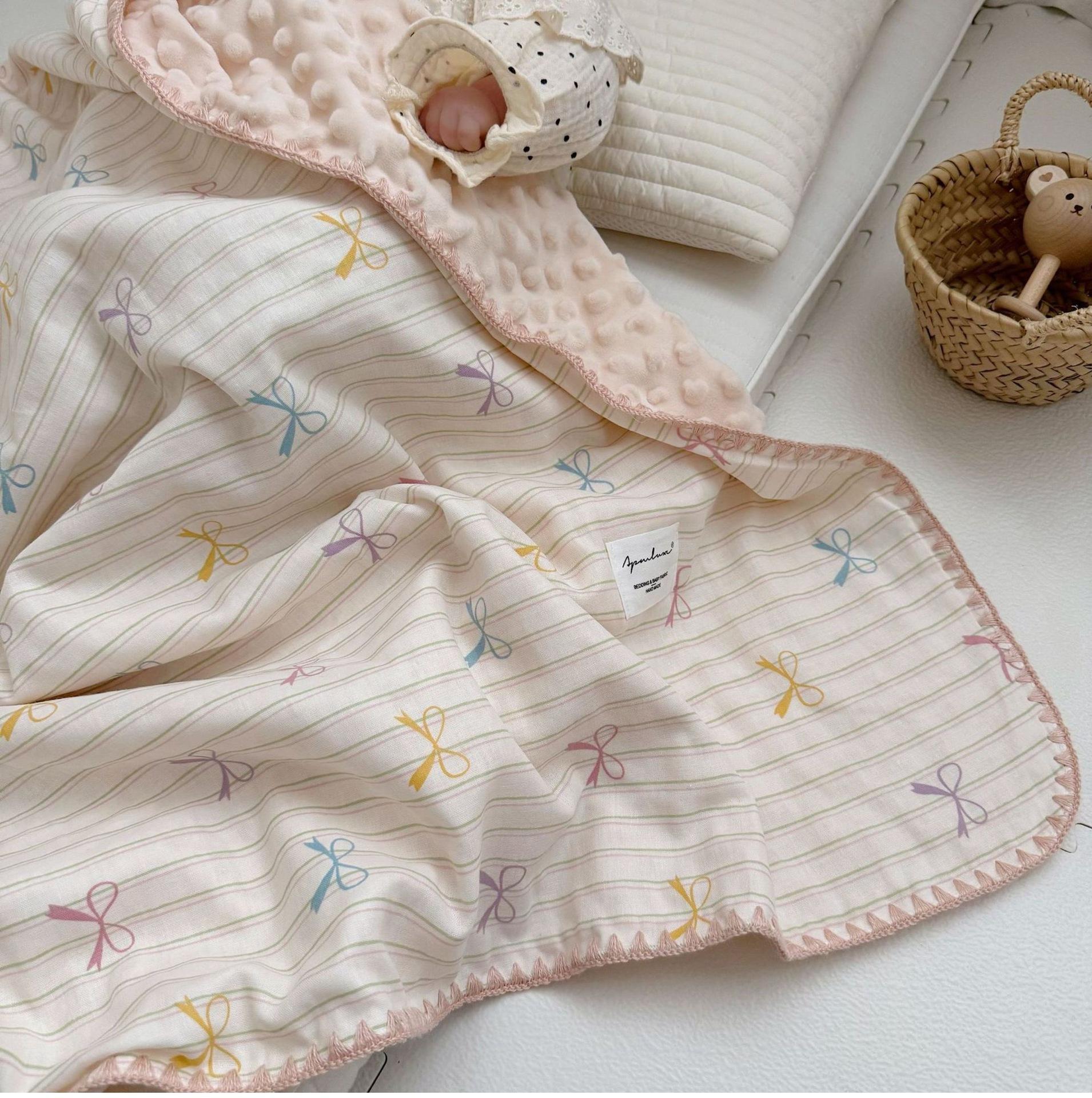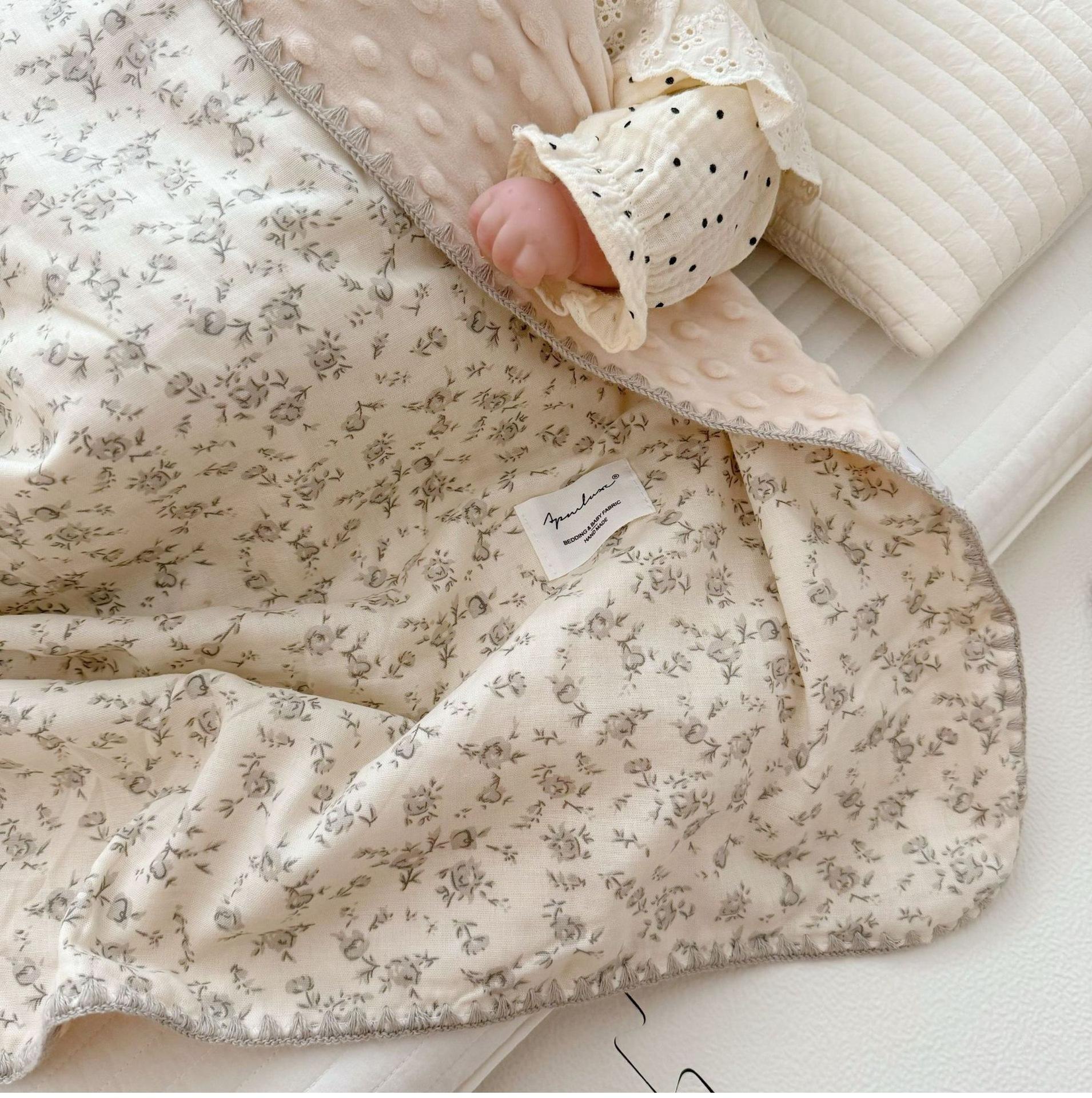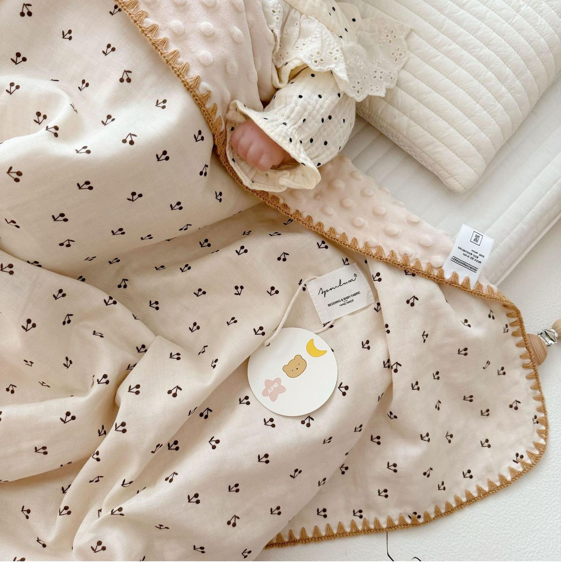 Manta de Frijol de Hilo Doble Capa de Algodón Ins para Niños de Dibujos Animados Manta de Algodón para las Cuatro Estaciones Manta para la Siesta de Oficina