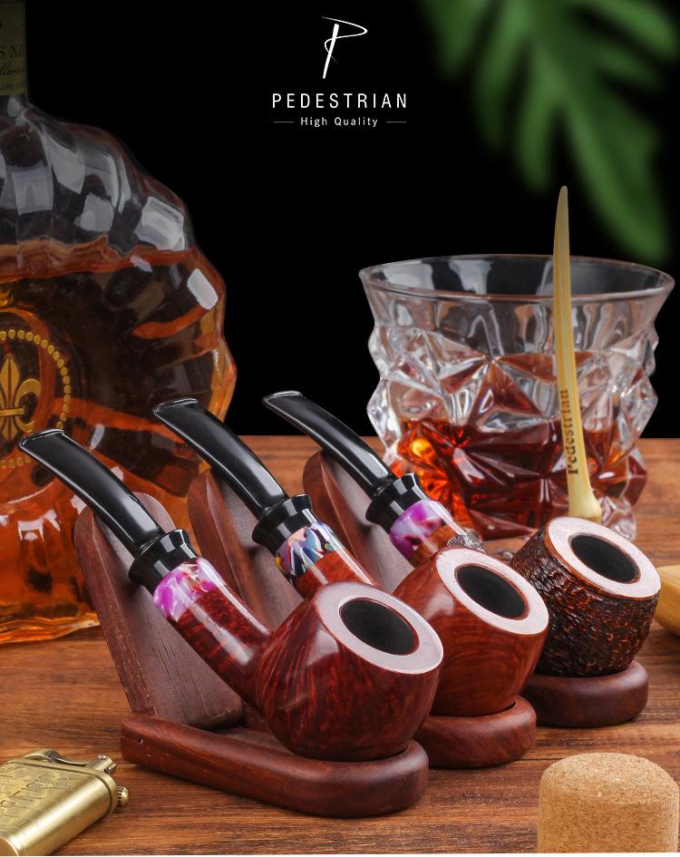 Pipa para hombre de madera de brezo color Cumberland boquilla hecha a mano madera maciza antigua filtro cazoleta para tabaco seco juego para fumar de madera maciza