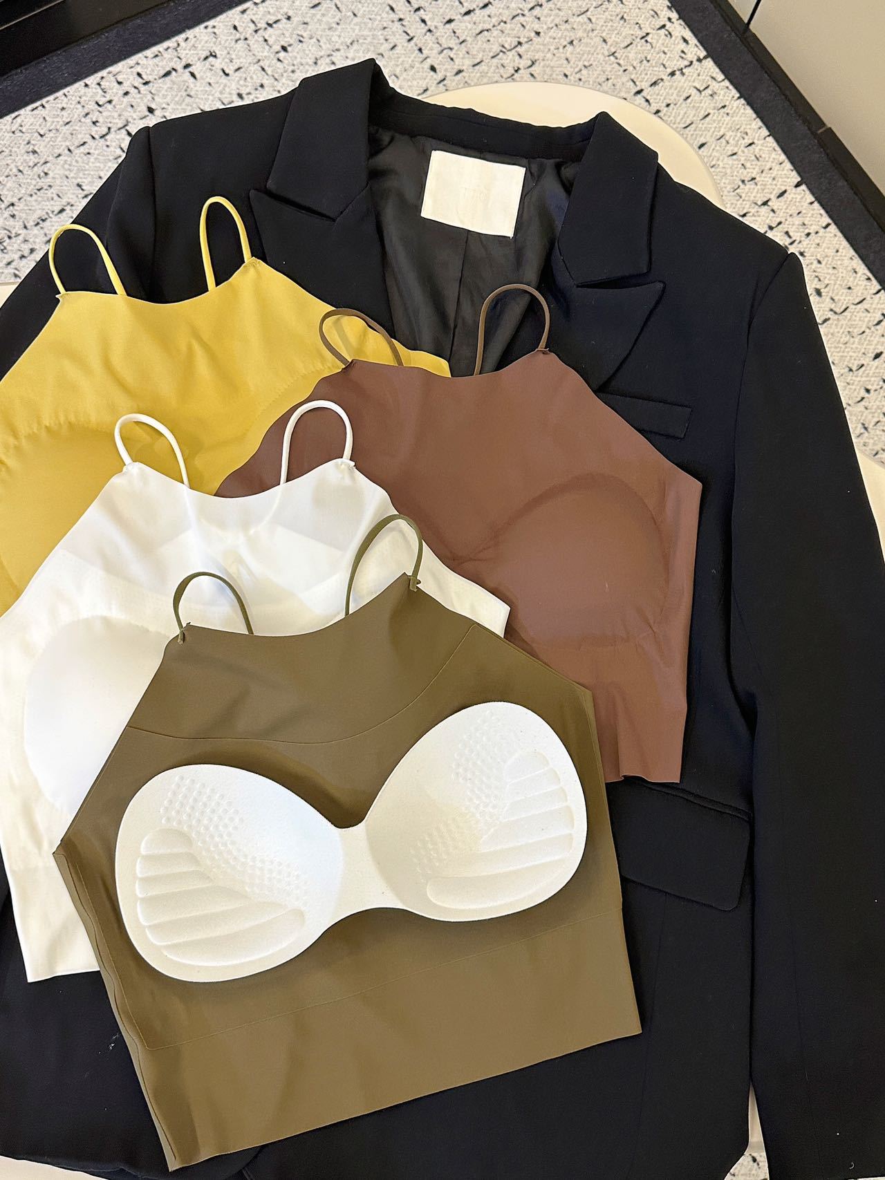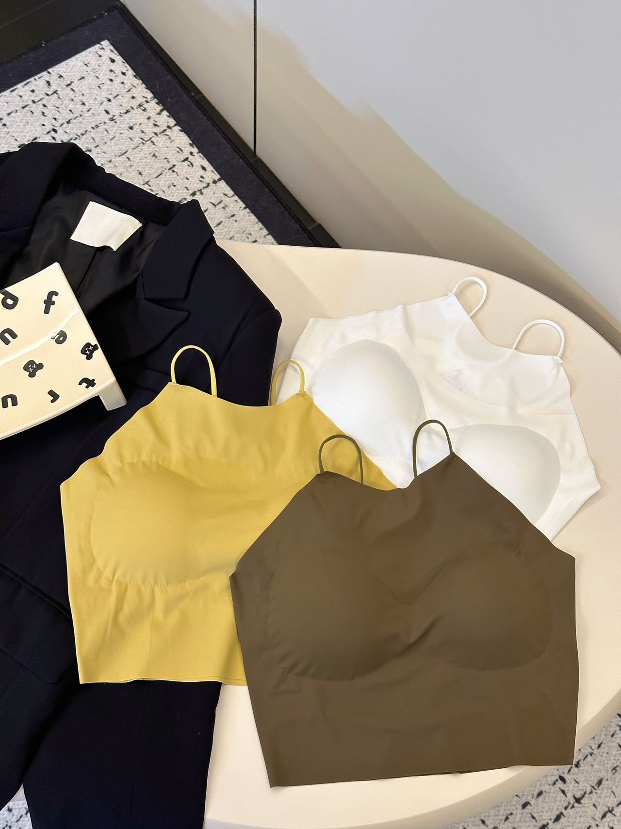 Camisola de seda de hielo para mujer, ropa interior deportiva sin costuras con almohadilla para el pecho, base que combina con todo, pecho envuelto, espalda hermosa, top de tubo antiexposición de verano