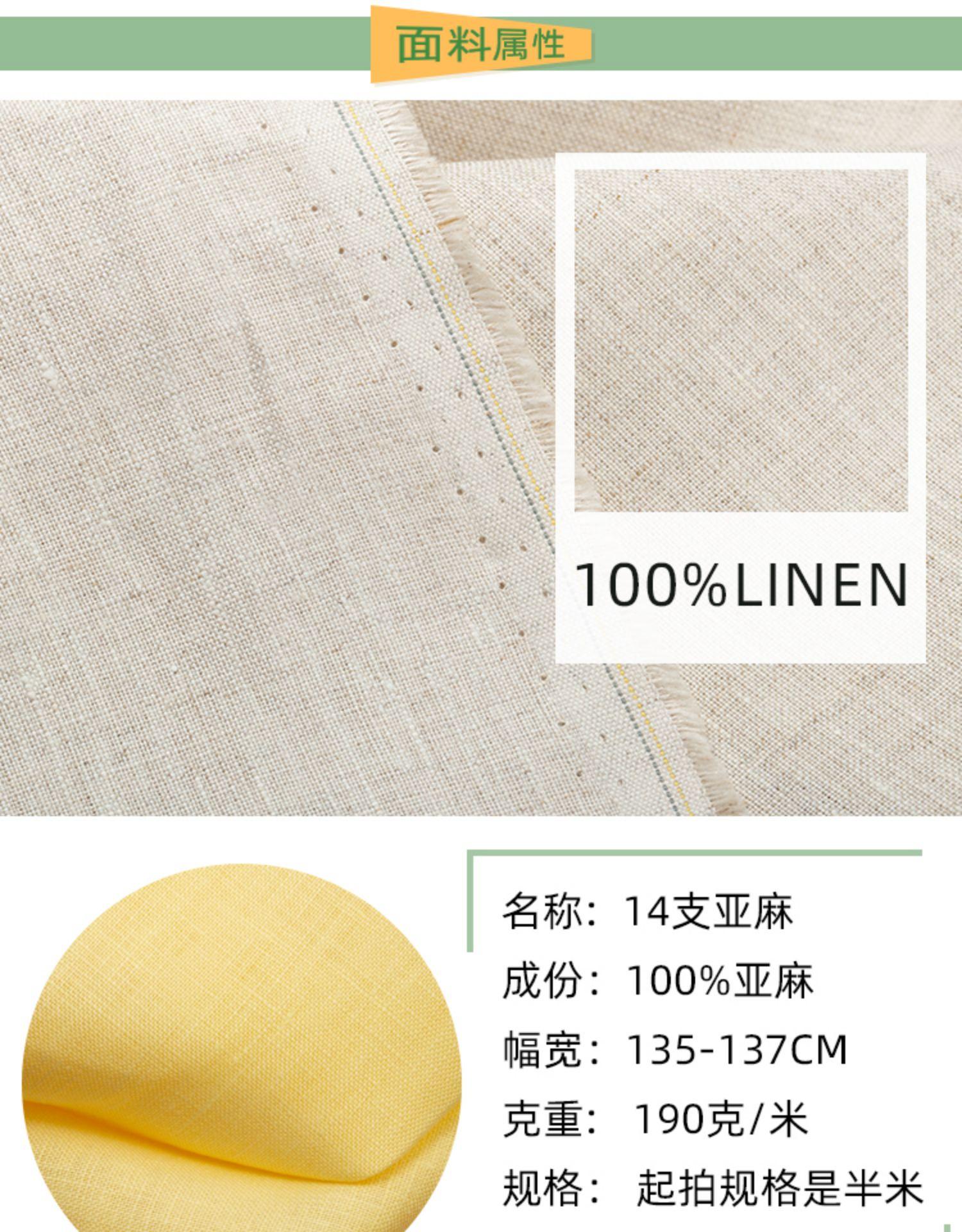 Hd14 Tela de Lino Puro Primavera y Verano Ropa de Lino Puro Tela para Camisa Vestido de Estudio Personalizado Huidianxin