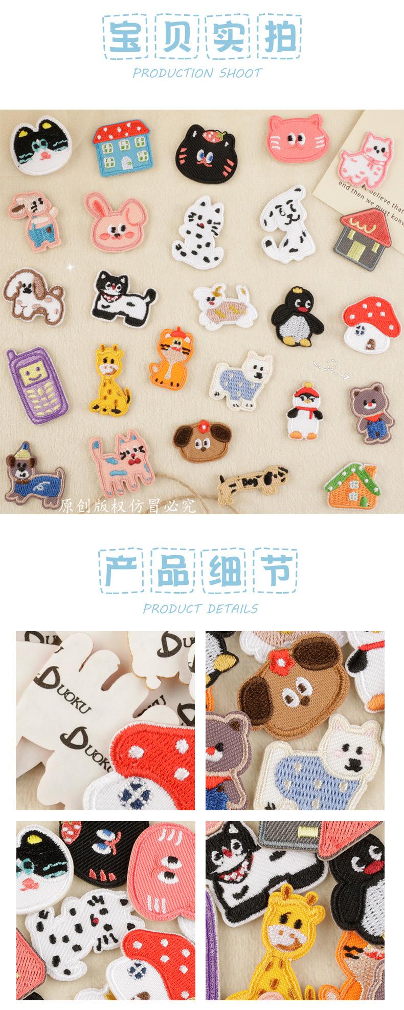 Etiqueta Original Bordada a Computadora Mini tamaño pequeño Autoadhesiva Dibujos Animados Lindo Animal Casa Parche Bordado Adhesivo Decorativo de Tela