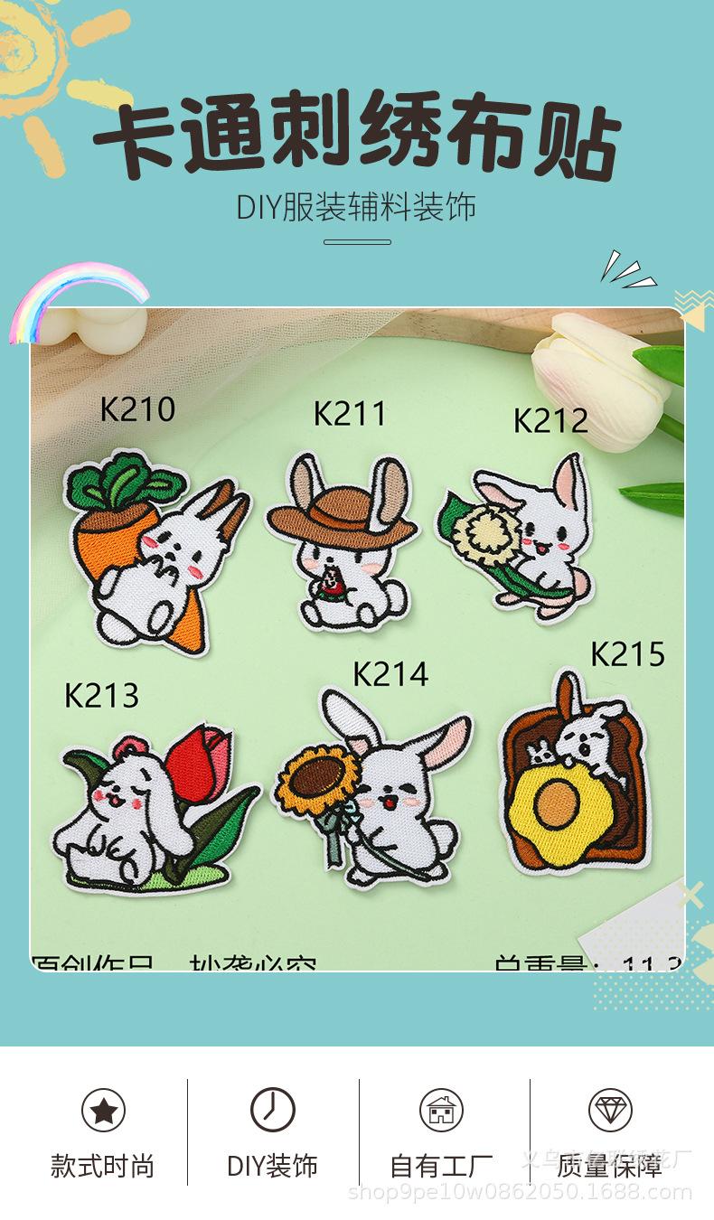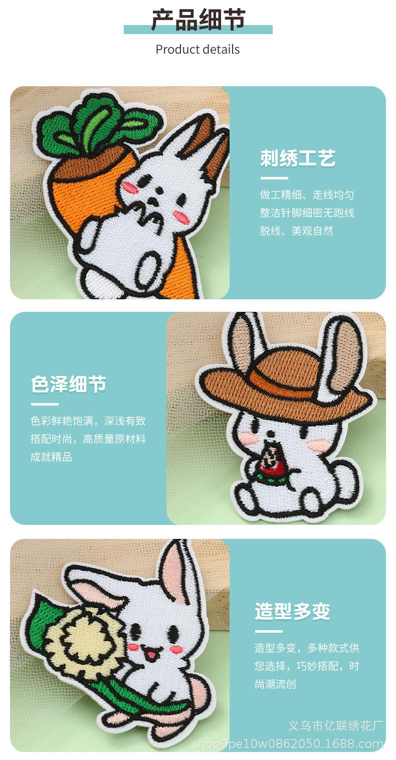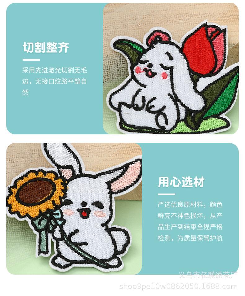 Parches Bordados de Dibujos Animados Lindo Conejo Bordado de Tela Adhesivos Accesorios de Ropa Hecho a Mano DIY Decorativos Parches Adhesivos Adhesivos de Tela Bordados