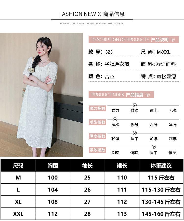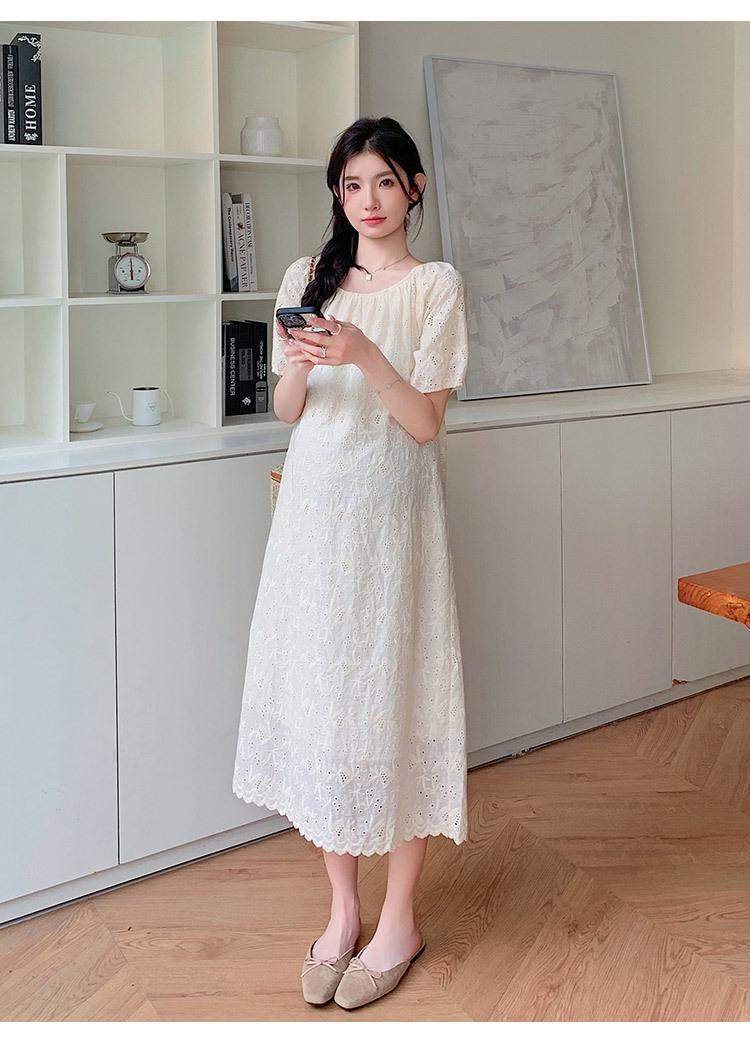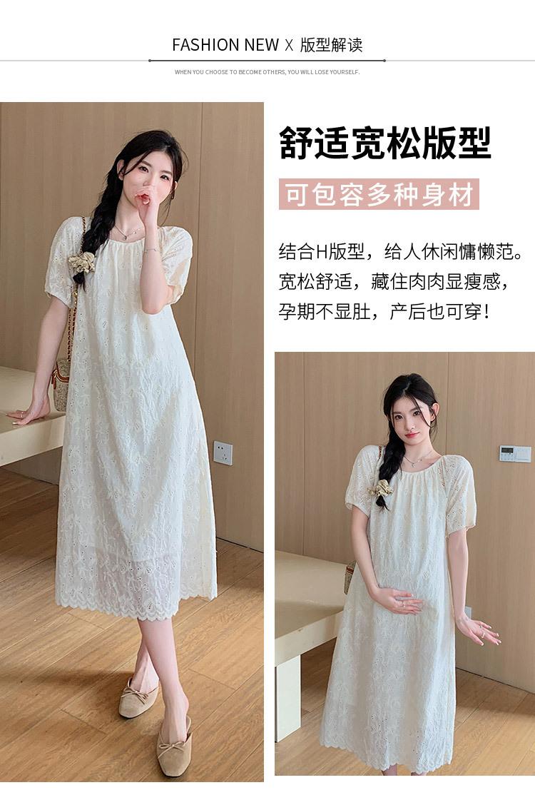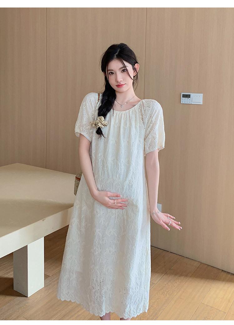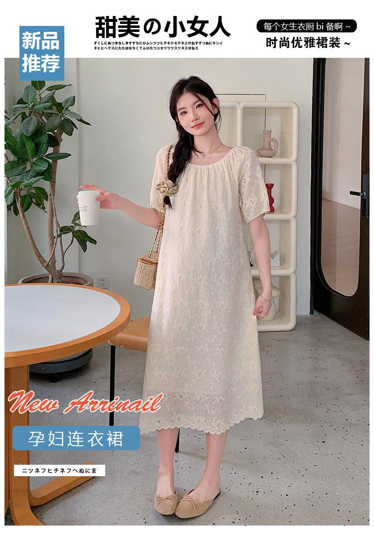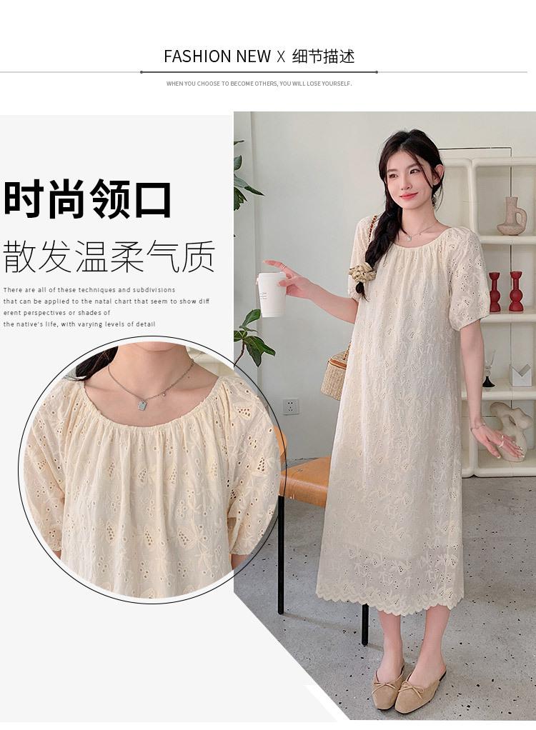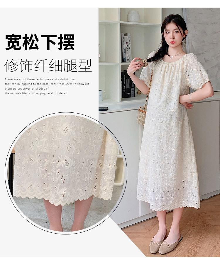 Vestido de Maternidad Verano Nuevo Dulce y a la Moda Reductor de Edad Crochet Bordado Elegante Versátil Holgado Talla Grande Vestido de Maternidad