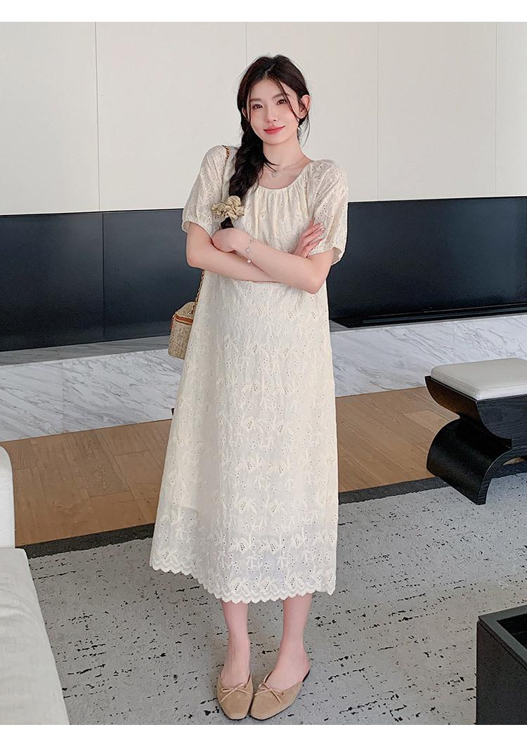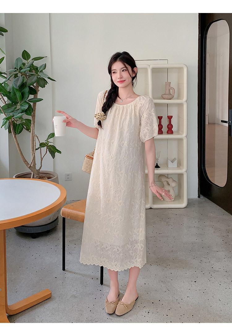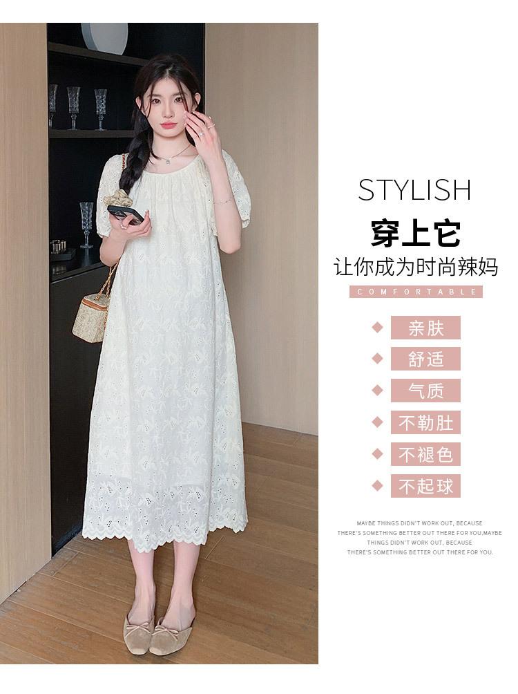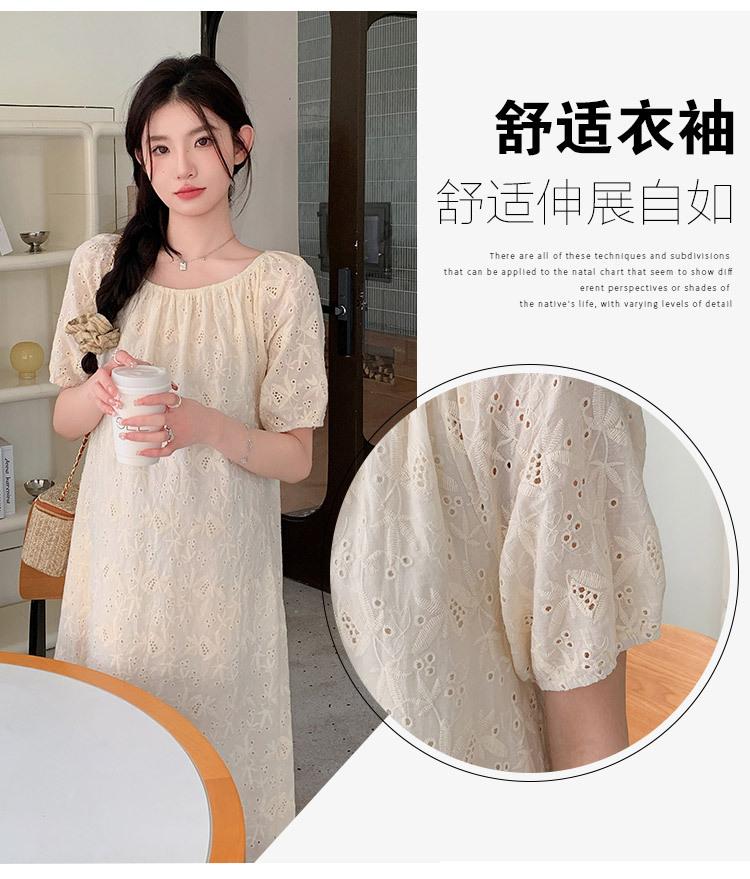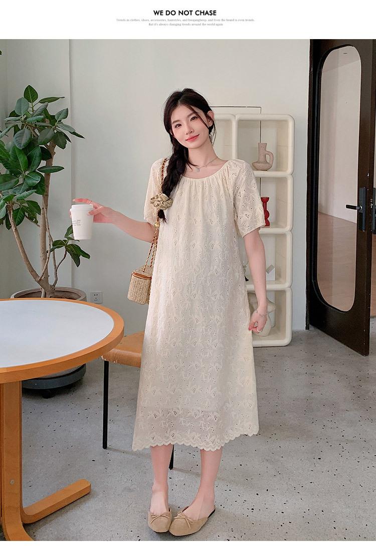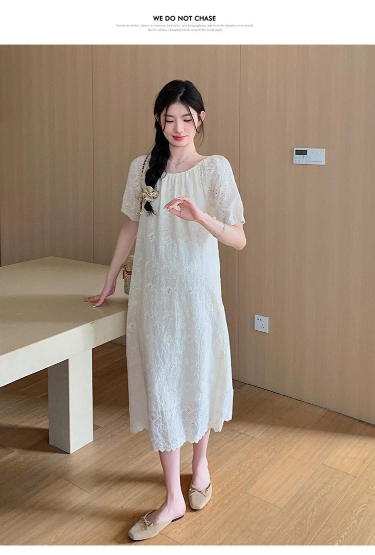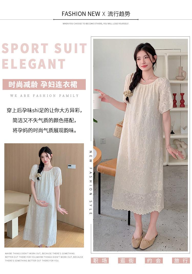 Vestido de Maternidad Verano Nuevo Dulce y a la Moda Reductor de Edad Crochet Bordado Elegante Versátil Holgado Talla Grande Vestido de Maternidad