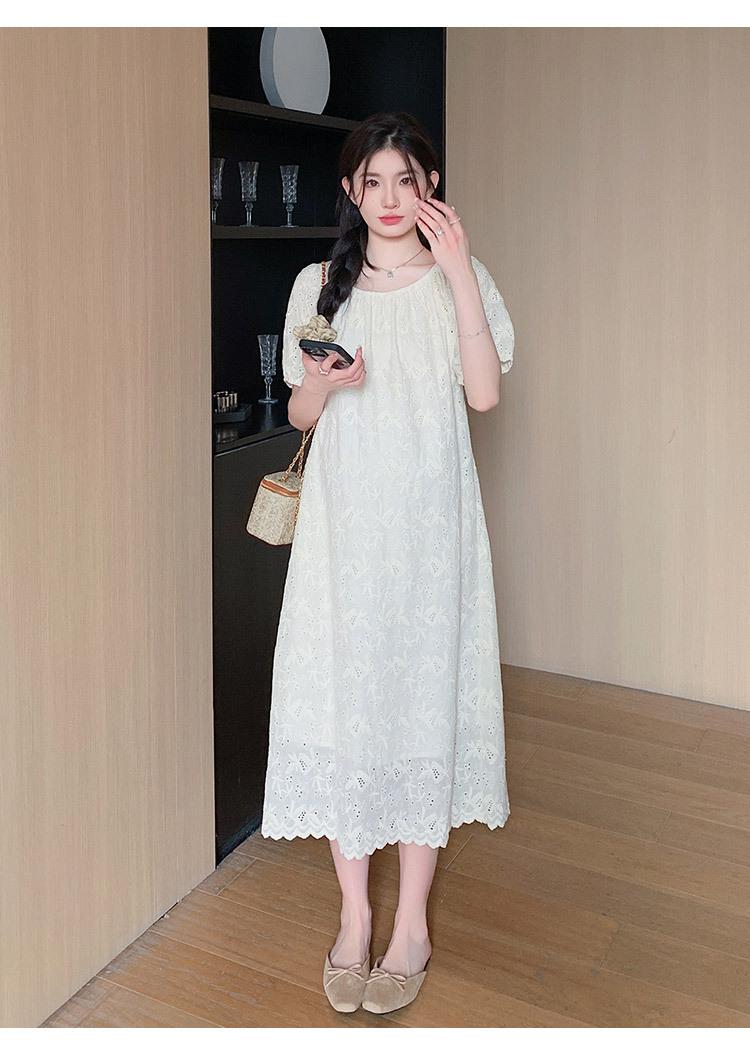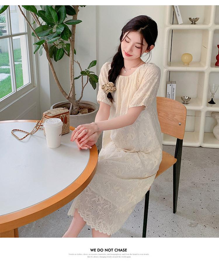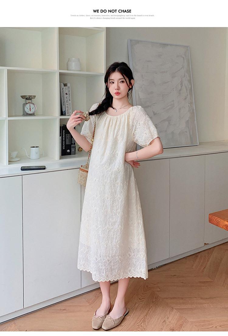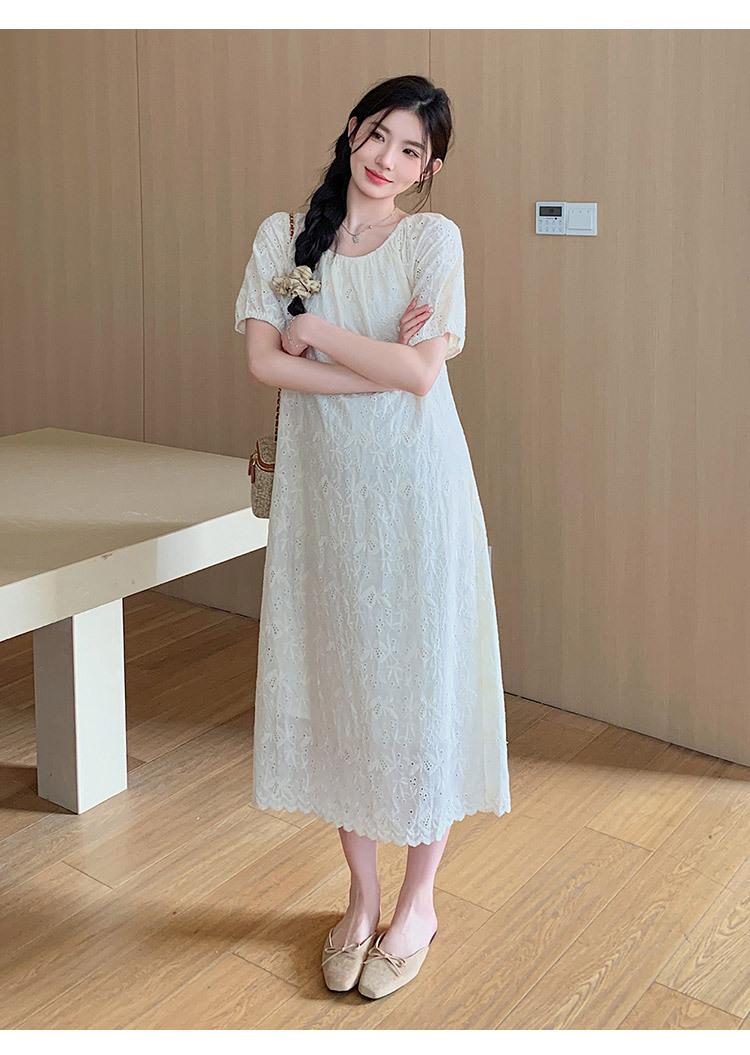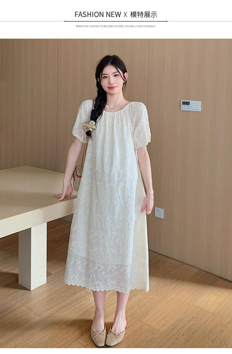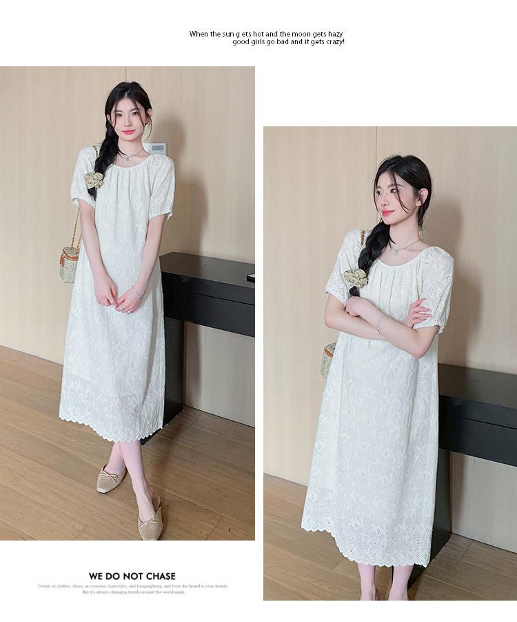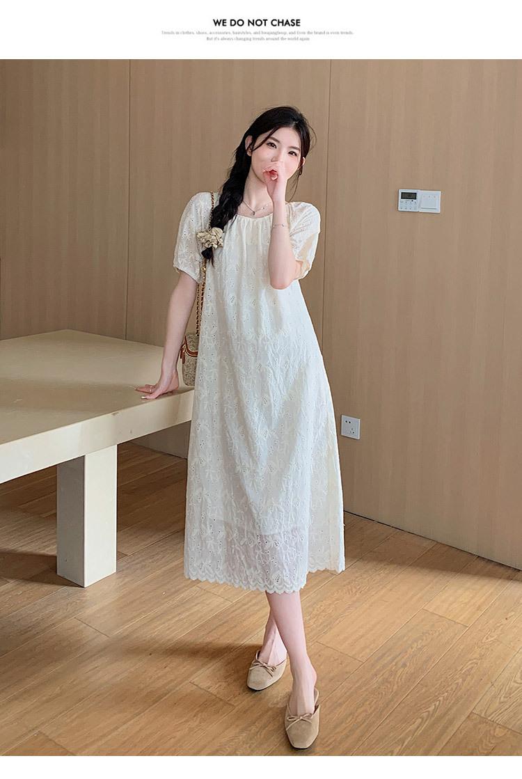 Vestido de Maternidad Verano Nuevo Dulce y a la Moda Reductor de Edad Crochet Bordado Elegante Versátil Holgado Talla Grande Vestido de Maternidad