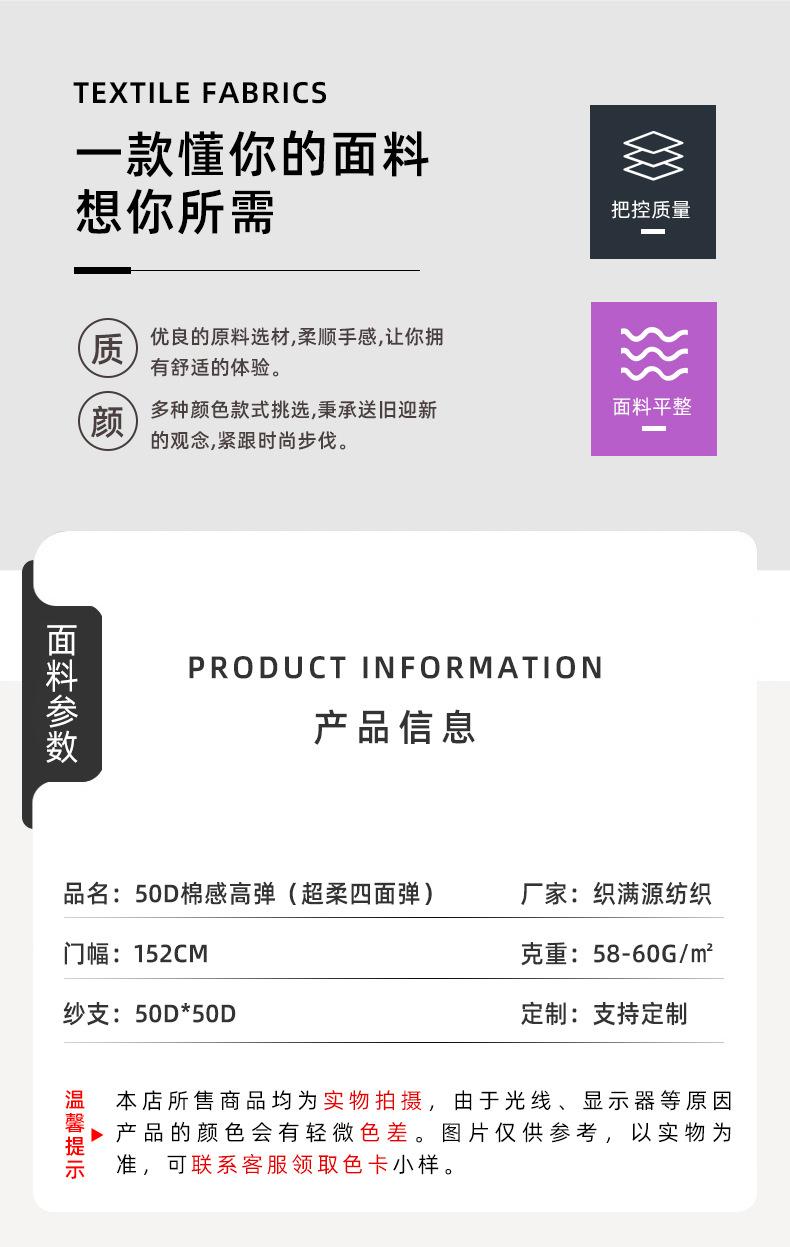 Suministro Listo Ventas Directas en Stock 50D Tacto Algodón Alta Elasticidad (Súper Suave Elástico en Cuatro Direcciones) Forro de Tela Hilada Chunya Tela de Color Puro
