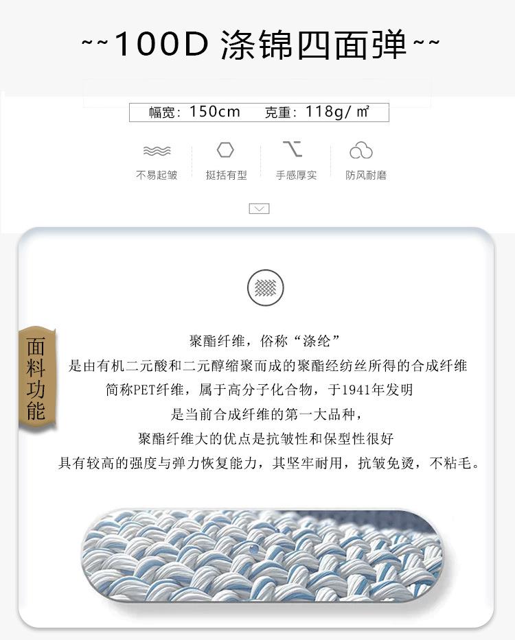 Tejido de poliéster de baja elasticidad para pantalones deportivos, tejido de poliéster brocado 100D, tejido elástico para abrigos, pantalones y faldas informales.