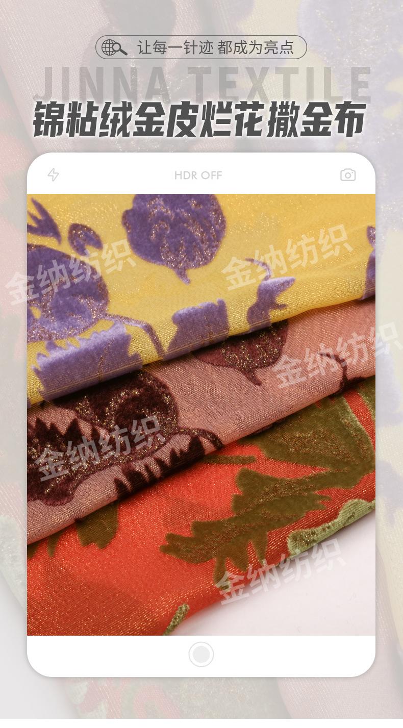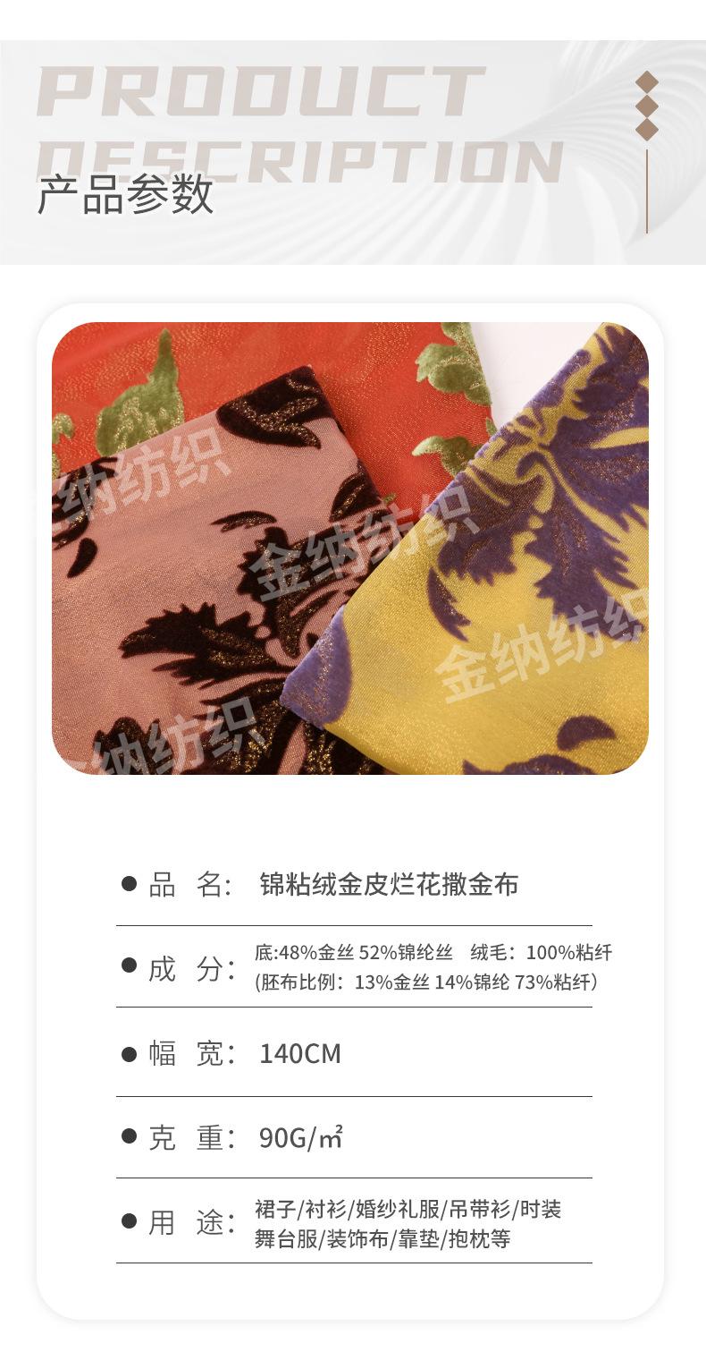 Bottom: 48% gold silk, 52% nylon silk pile: 100% viscose (fabric ratio: 13% gold silk, 14% nylon, 73% viscose)