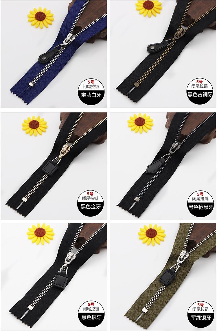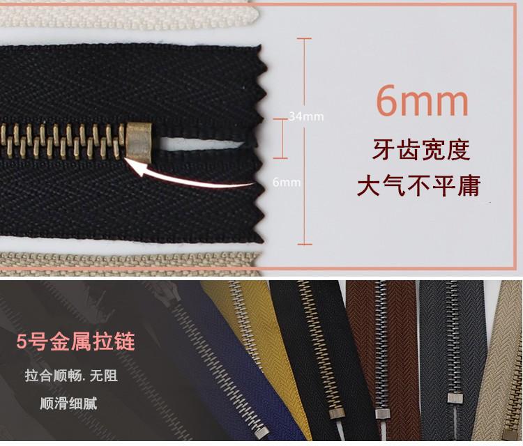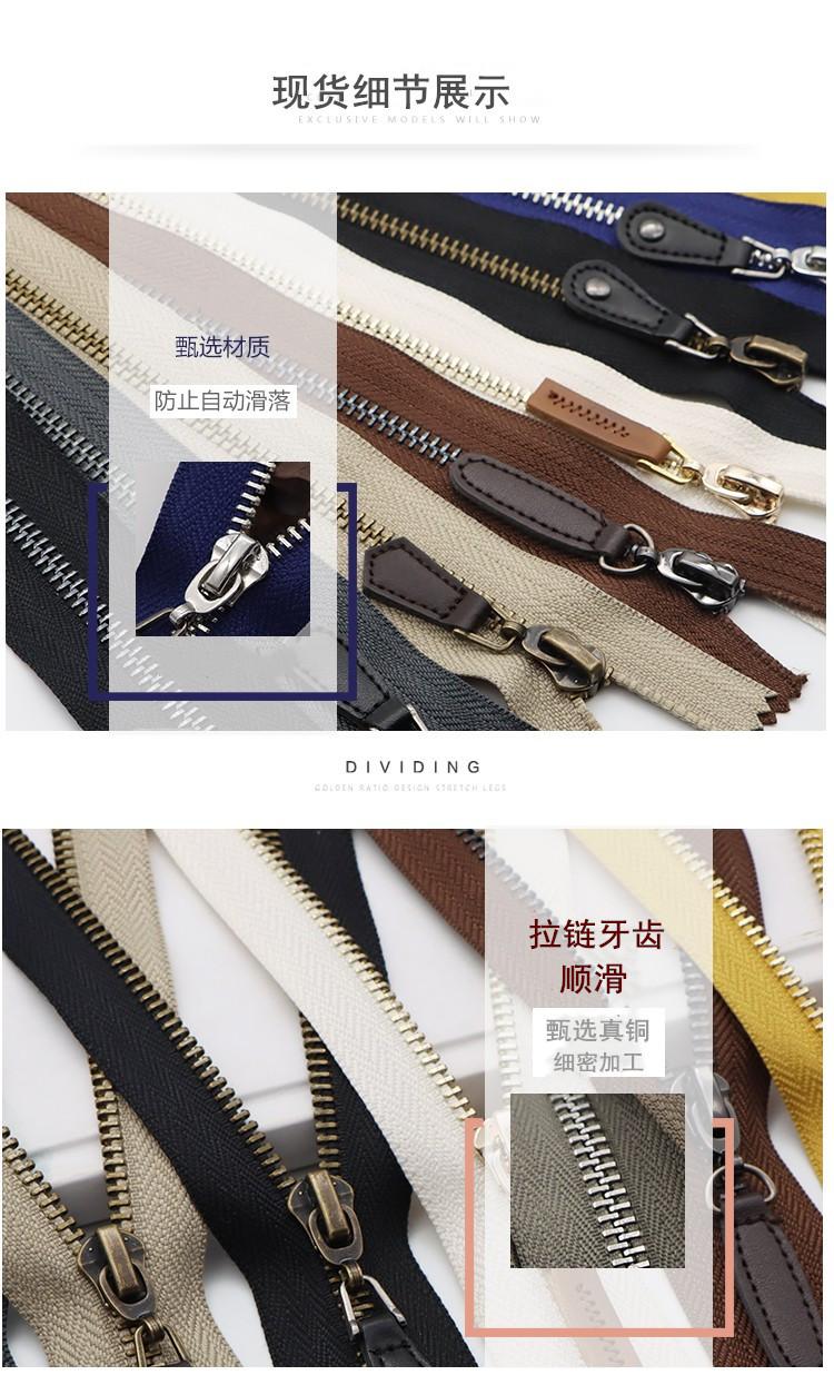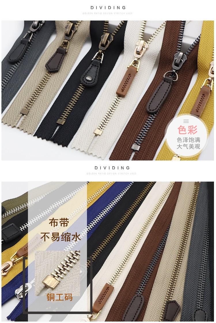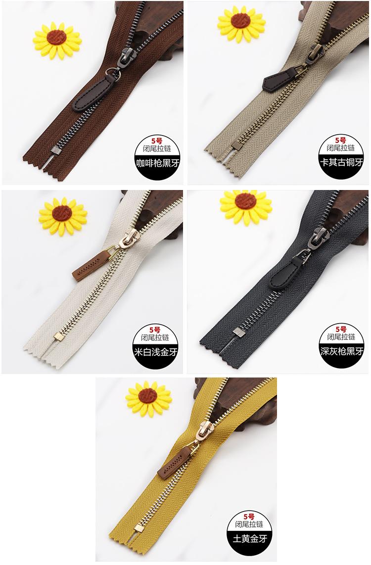 No. 5 Cierre Metálico Todo Cobre Extremo Cerrado DIY Cierre para Bolsa Suéter Jersey Bolsillo Pantalón Café Retro Cuero Cierre