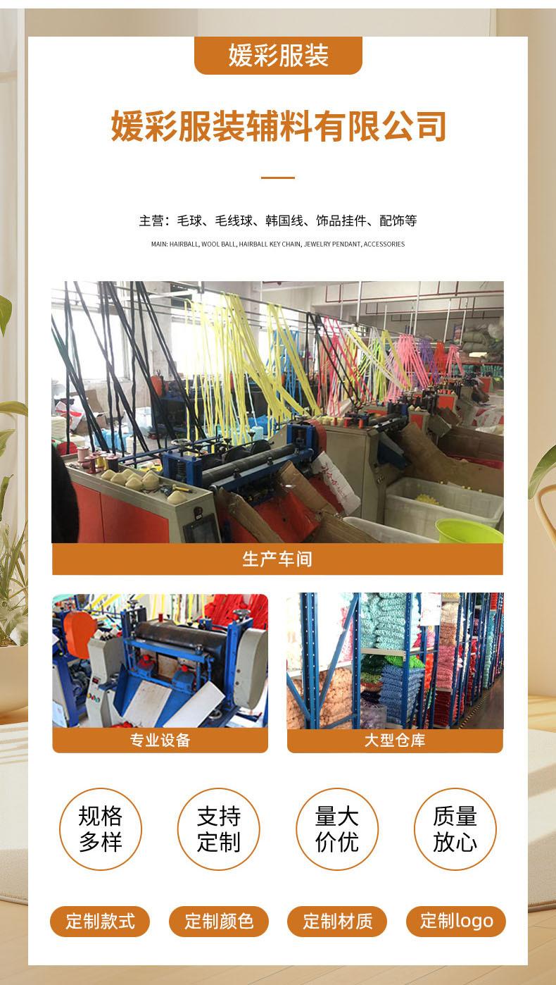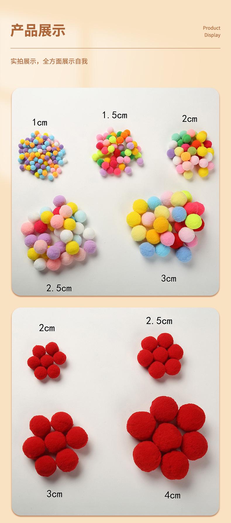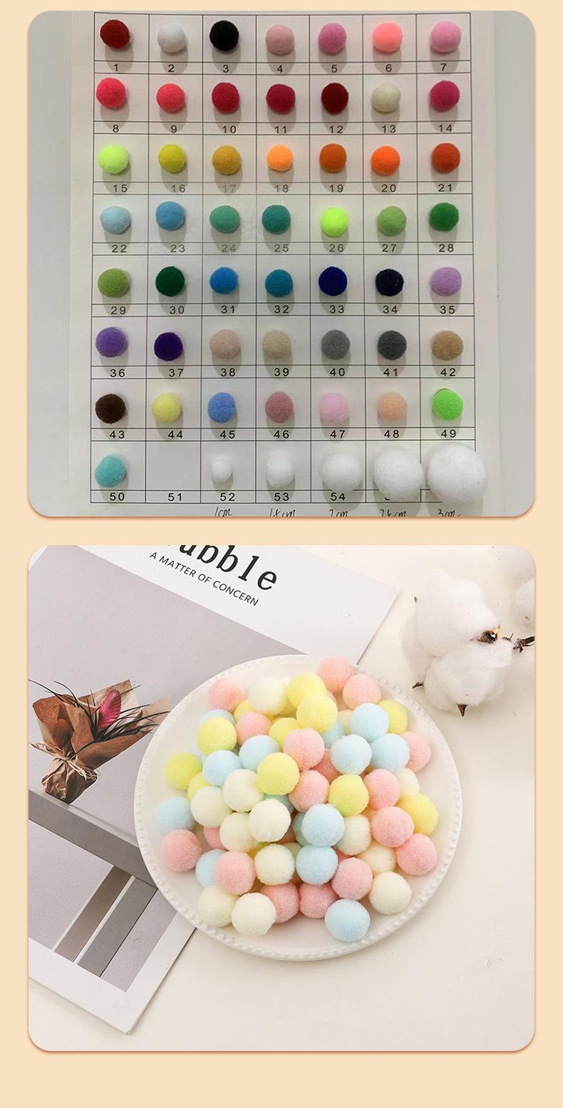 Tenemos nuestra propia fábrica y producimos bolas de lana de diversas especificaciones, que van desde 0,5 a 12 cm.Hay muchos colores en stock y se pueden personalizar varios colores según la paleta de colores si se alcanza la cantidad mínima de pedido.