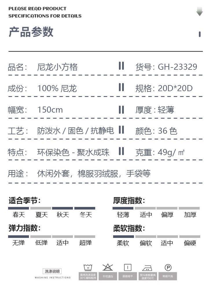 Sombrero, bolso, tela de nailon 380T, impermeable, nailon a cuadros, abrigo informal, chaqueta de algodón, chaqueta de plumas, tela